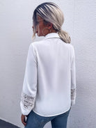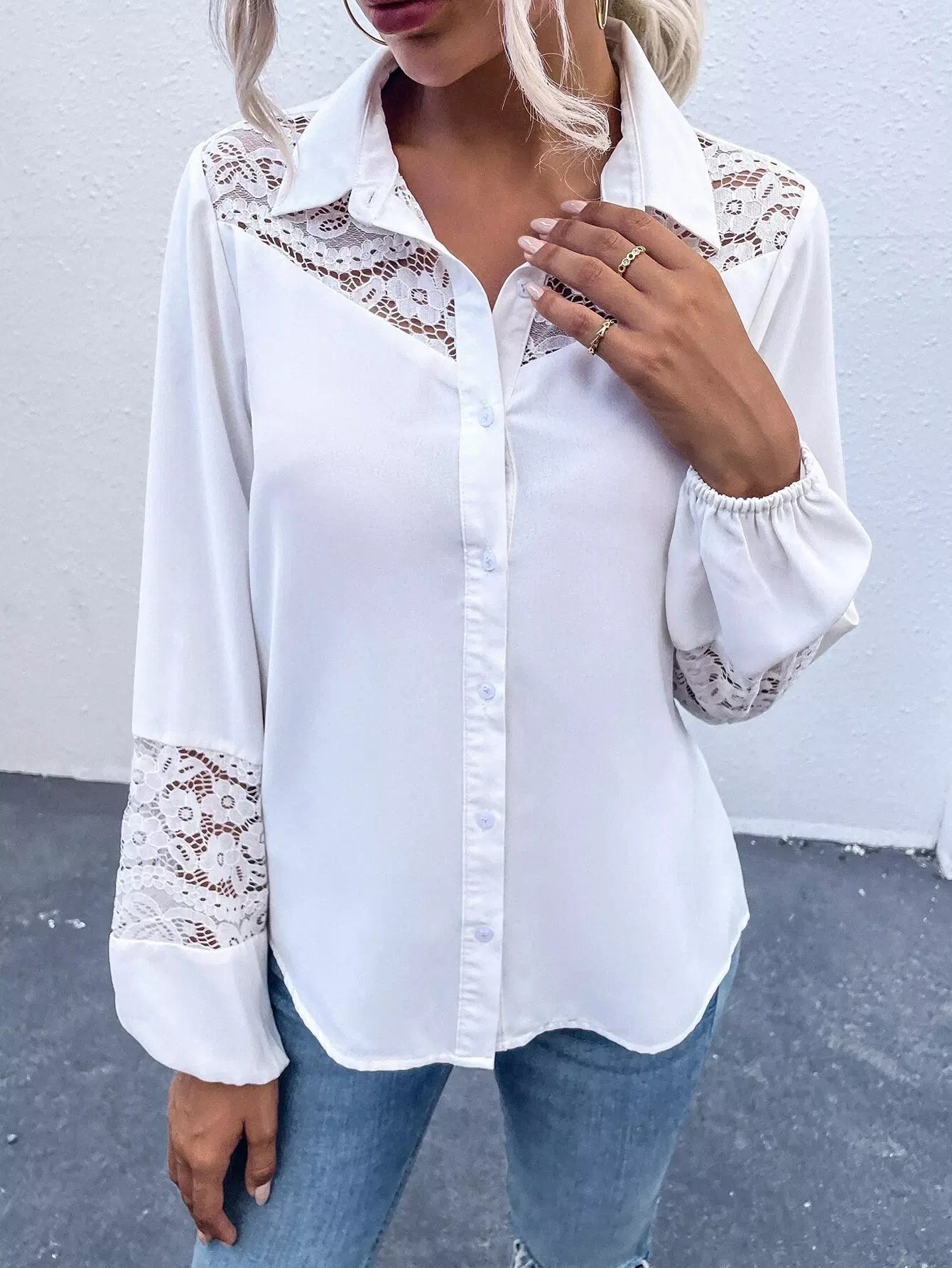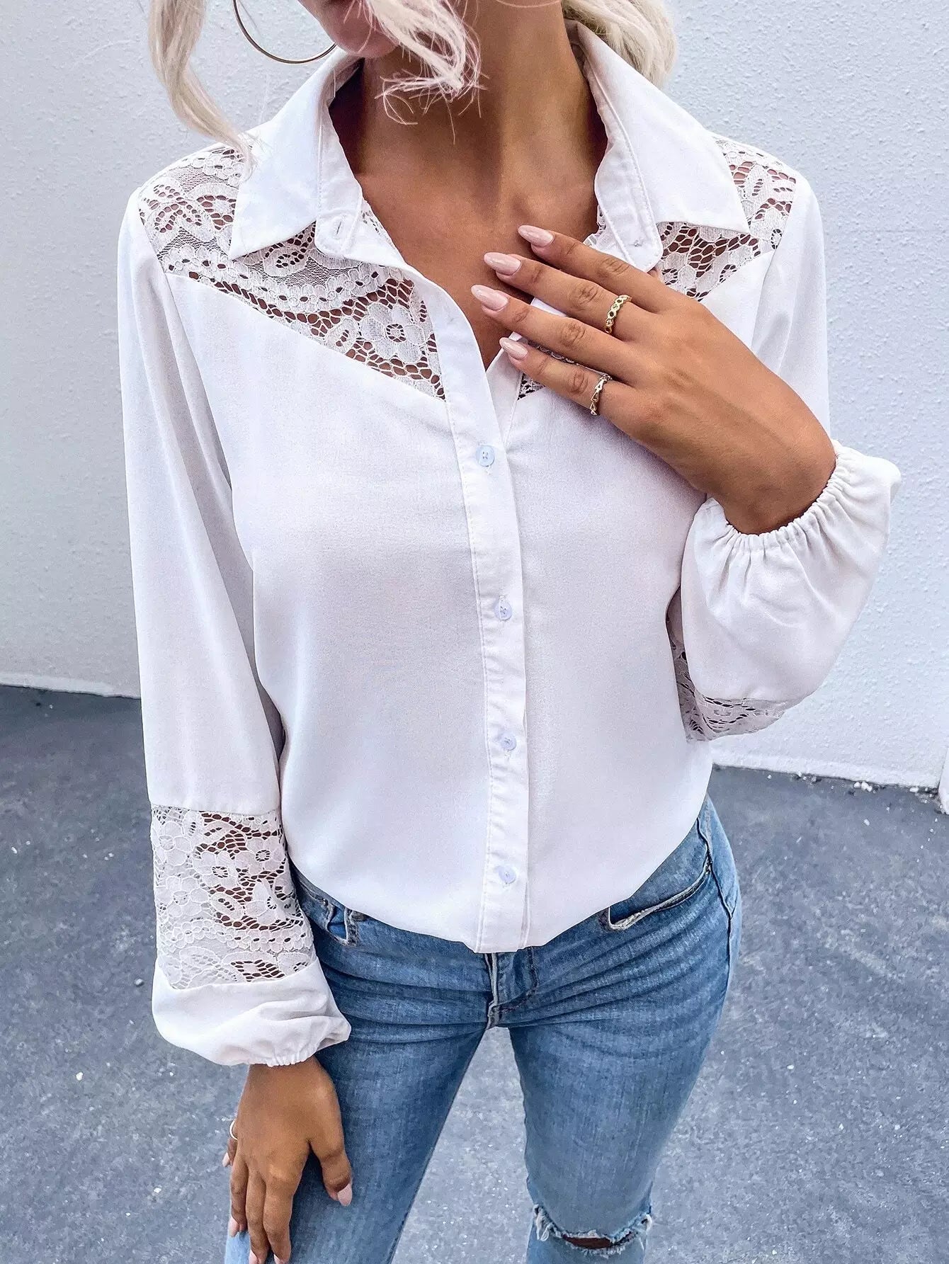للنساء - قميص بأزرار من الدانتيل بلون متباين
