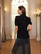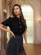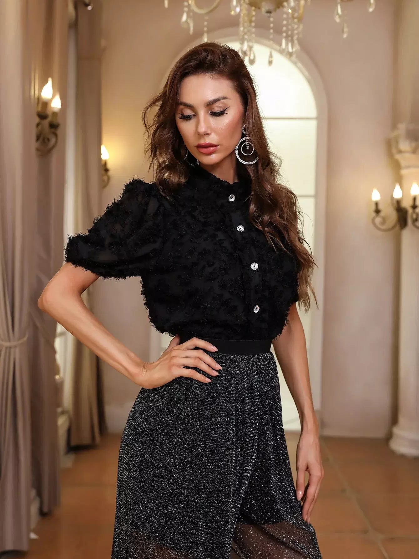 بلوزة بحواف كشكش سادة بأزرار من الكشكش