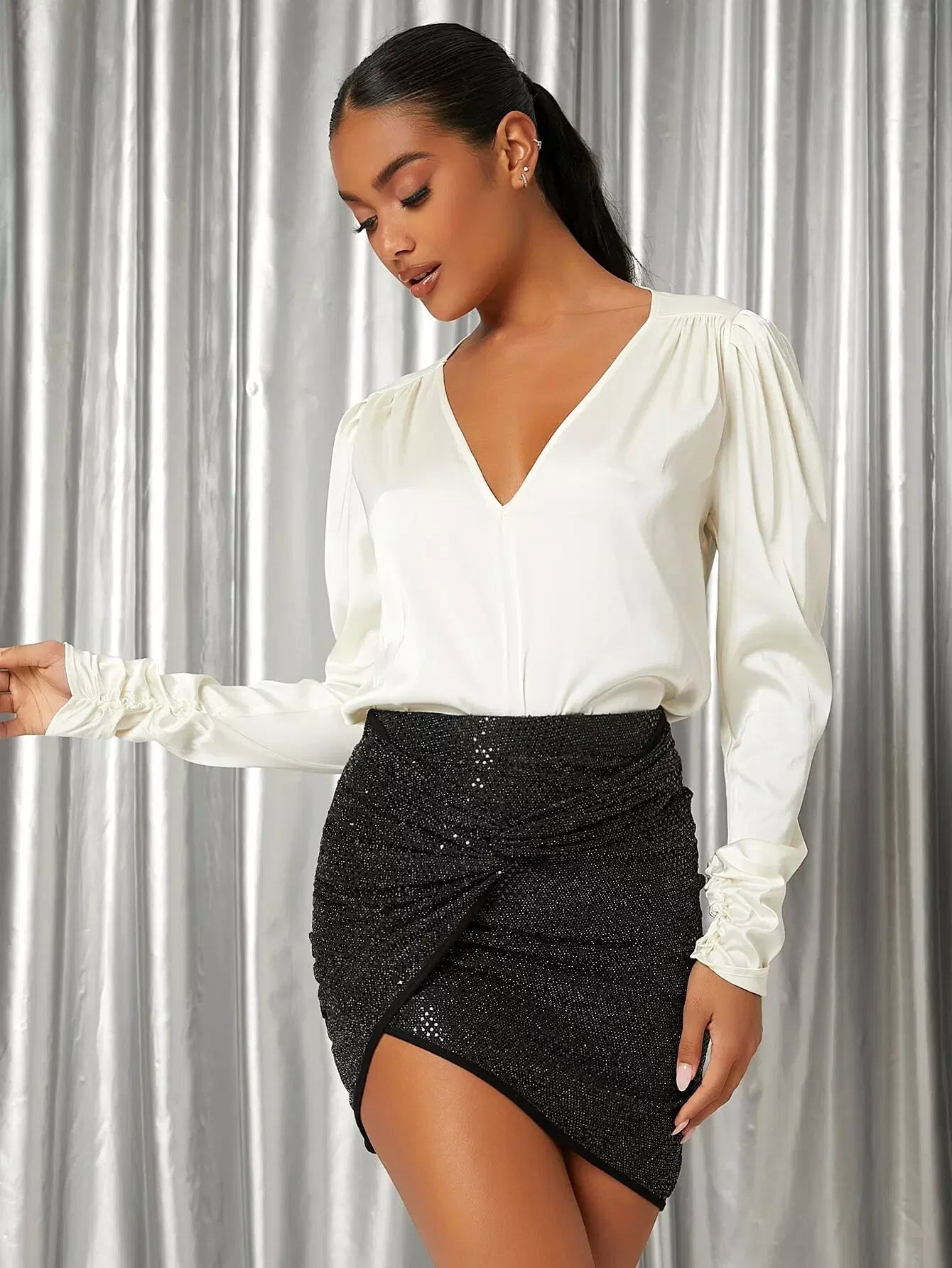 بلوزة سادة بأكمام سادة جيجوت ساتان