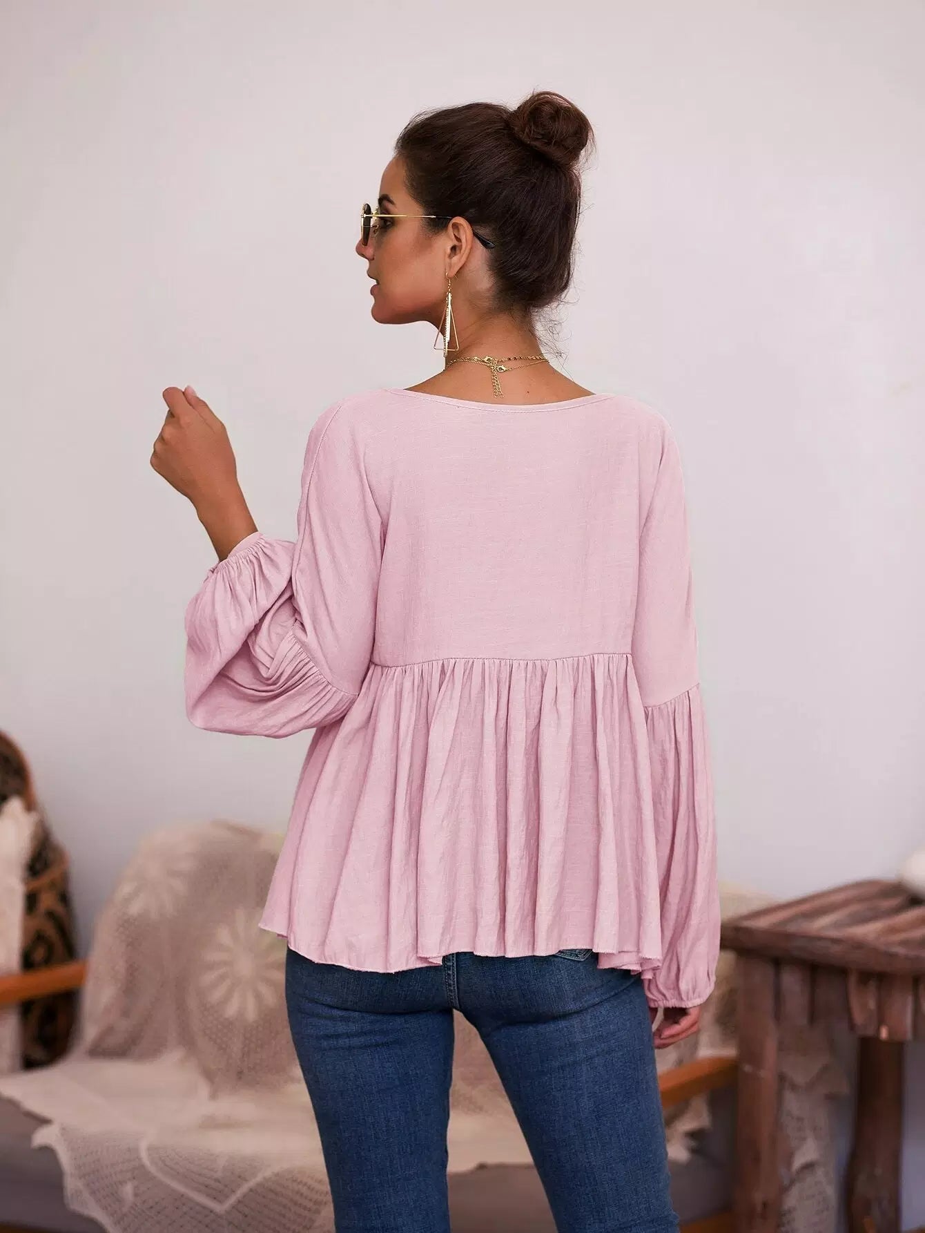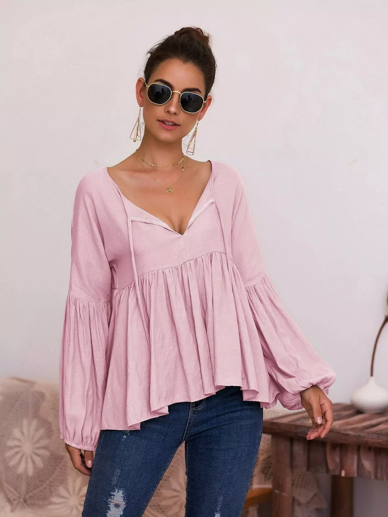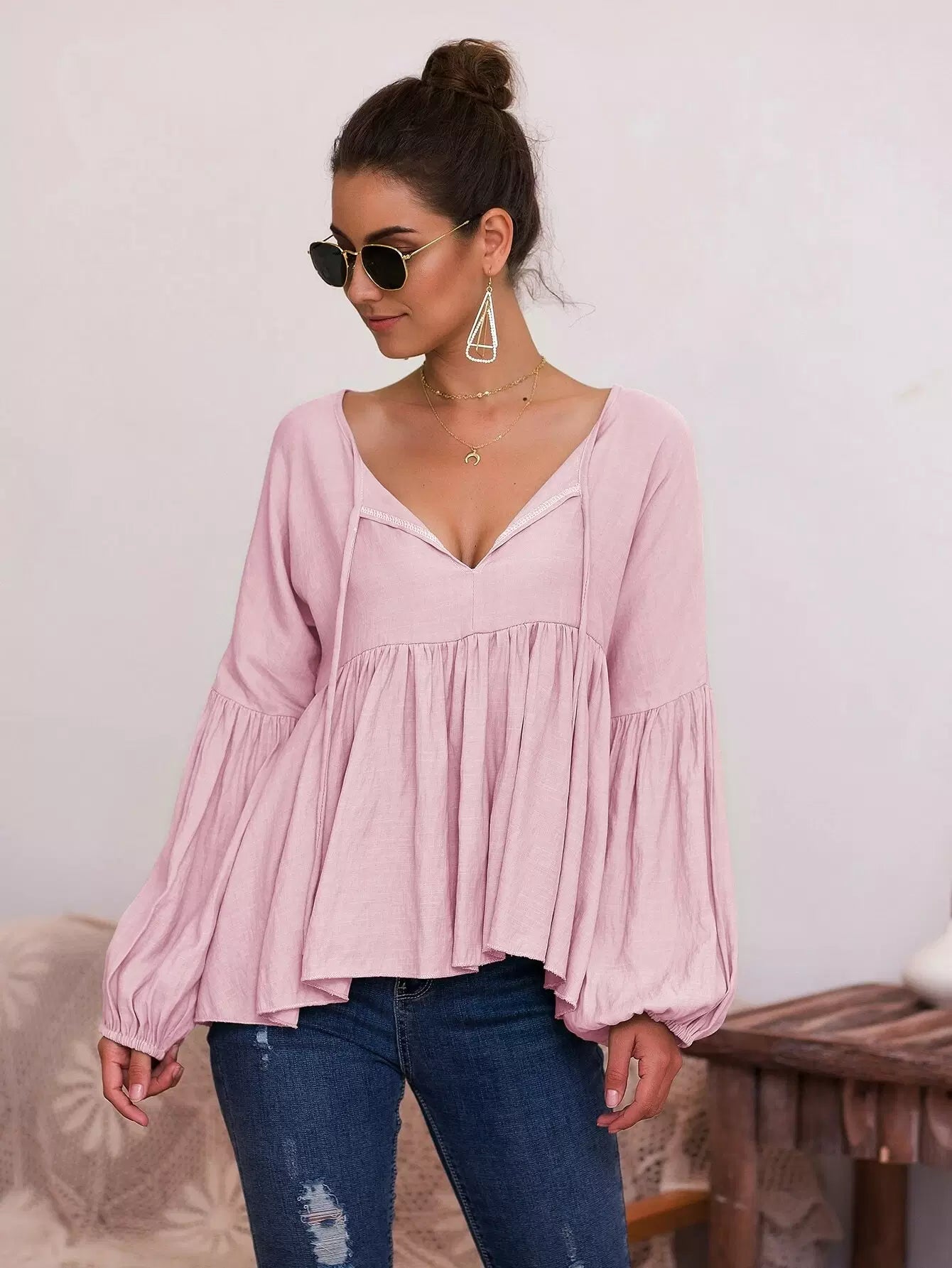 بلوزة بيبلوم سادة بربطة عنق بربطة عنق سادة