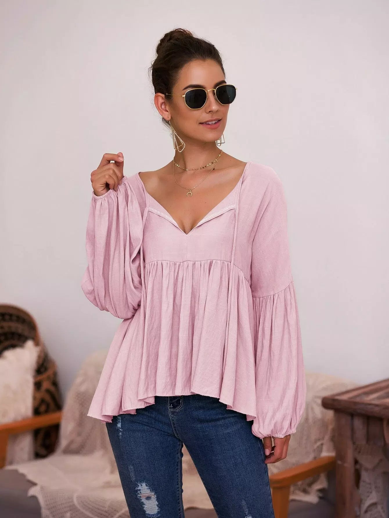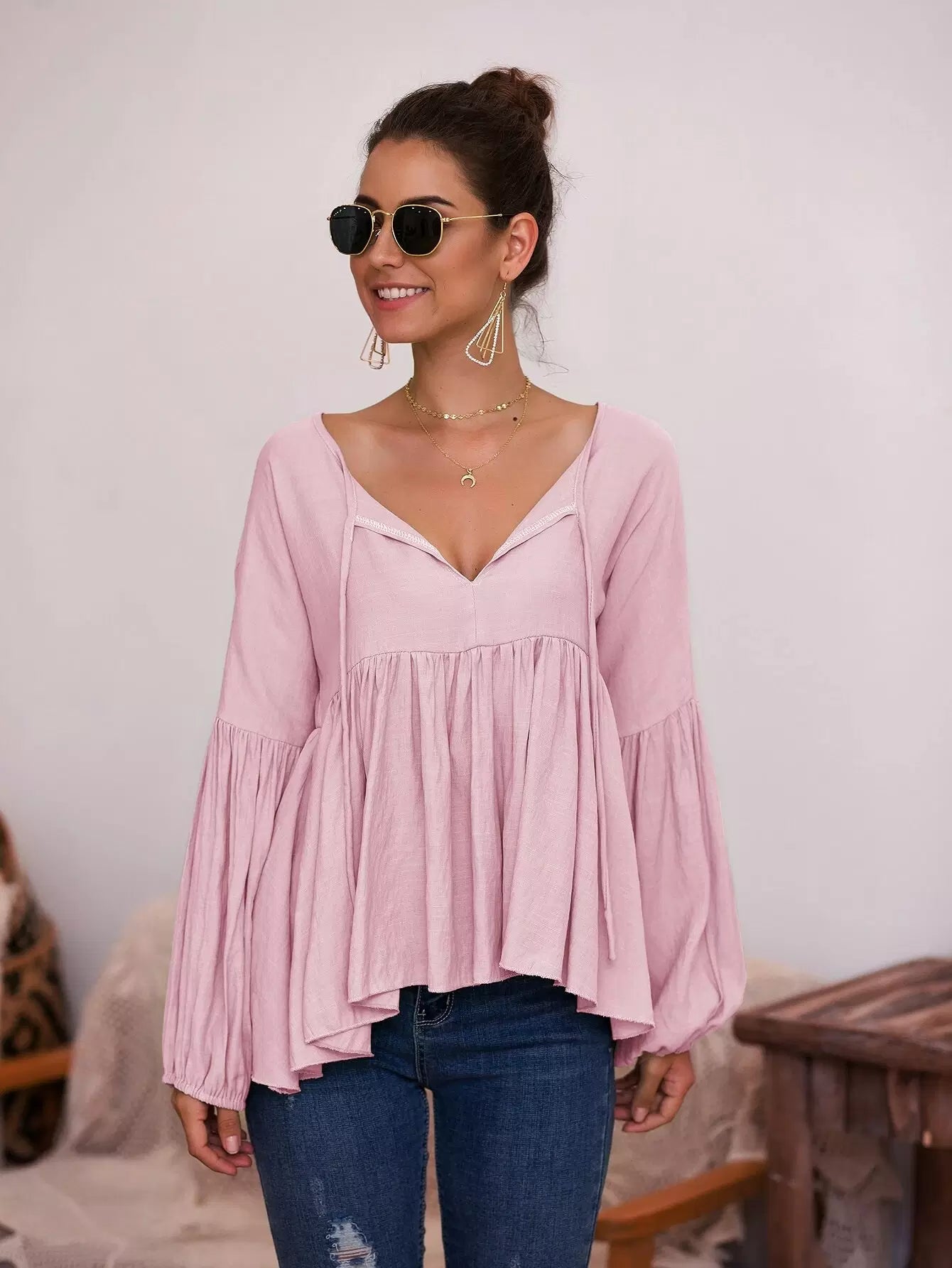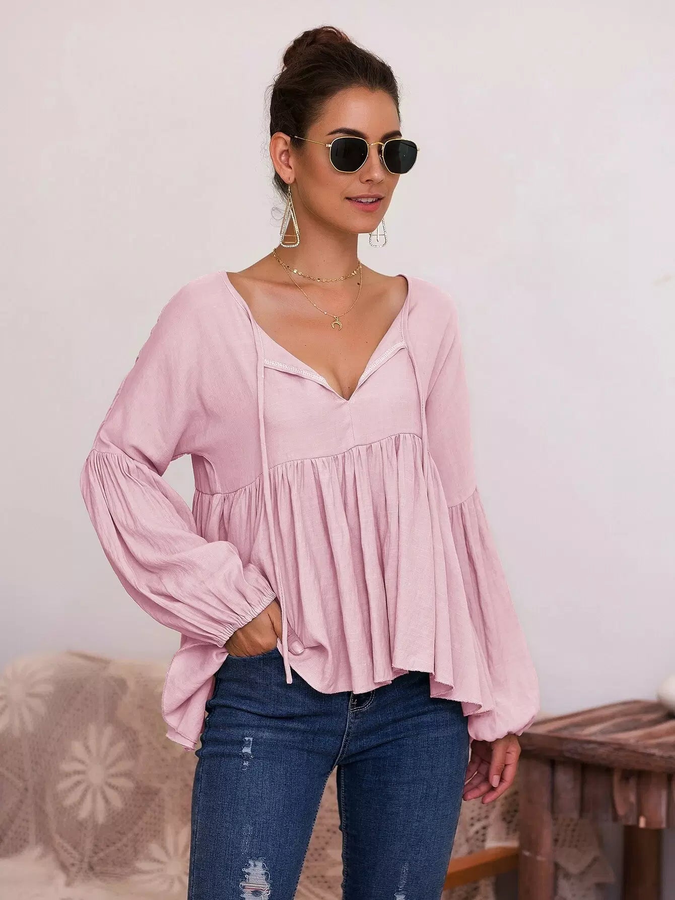 بلوزة بيبلوم سادة بربطة عنق بربطة عنق سادة