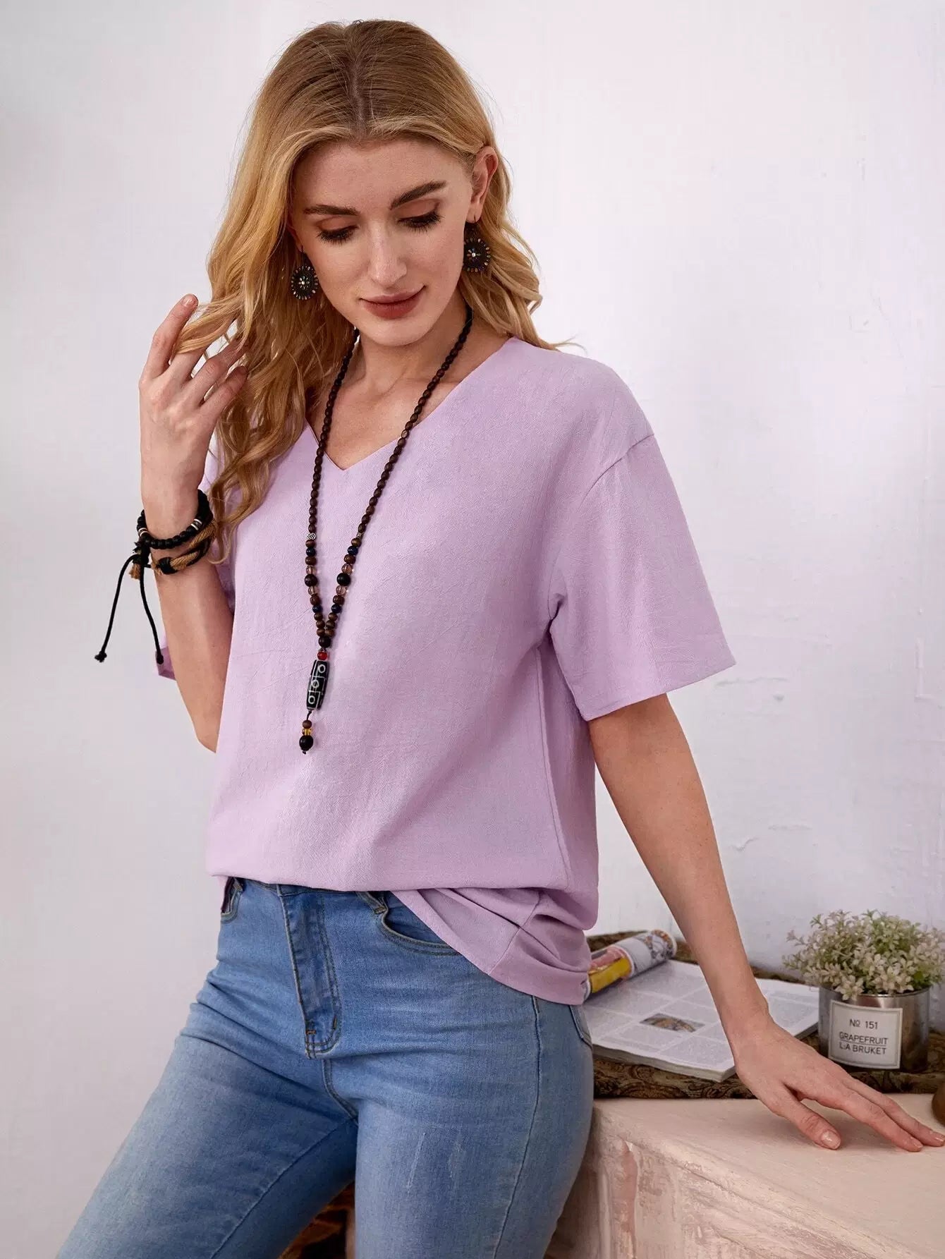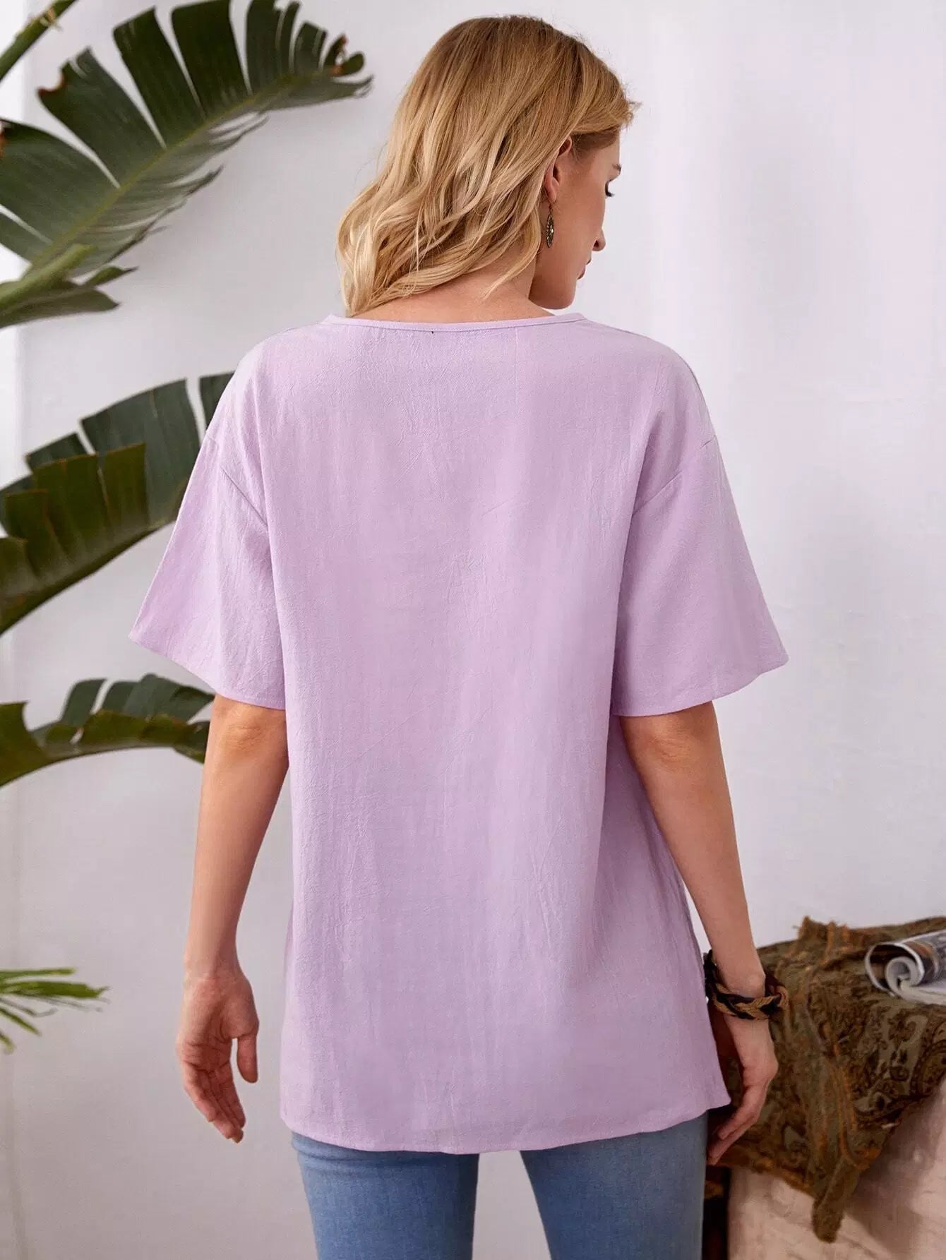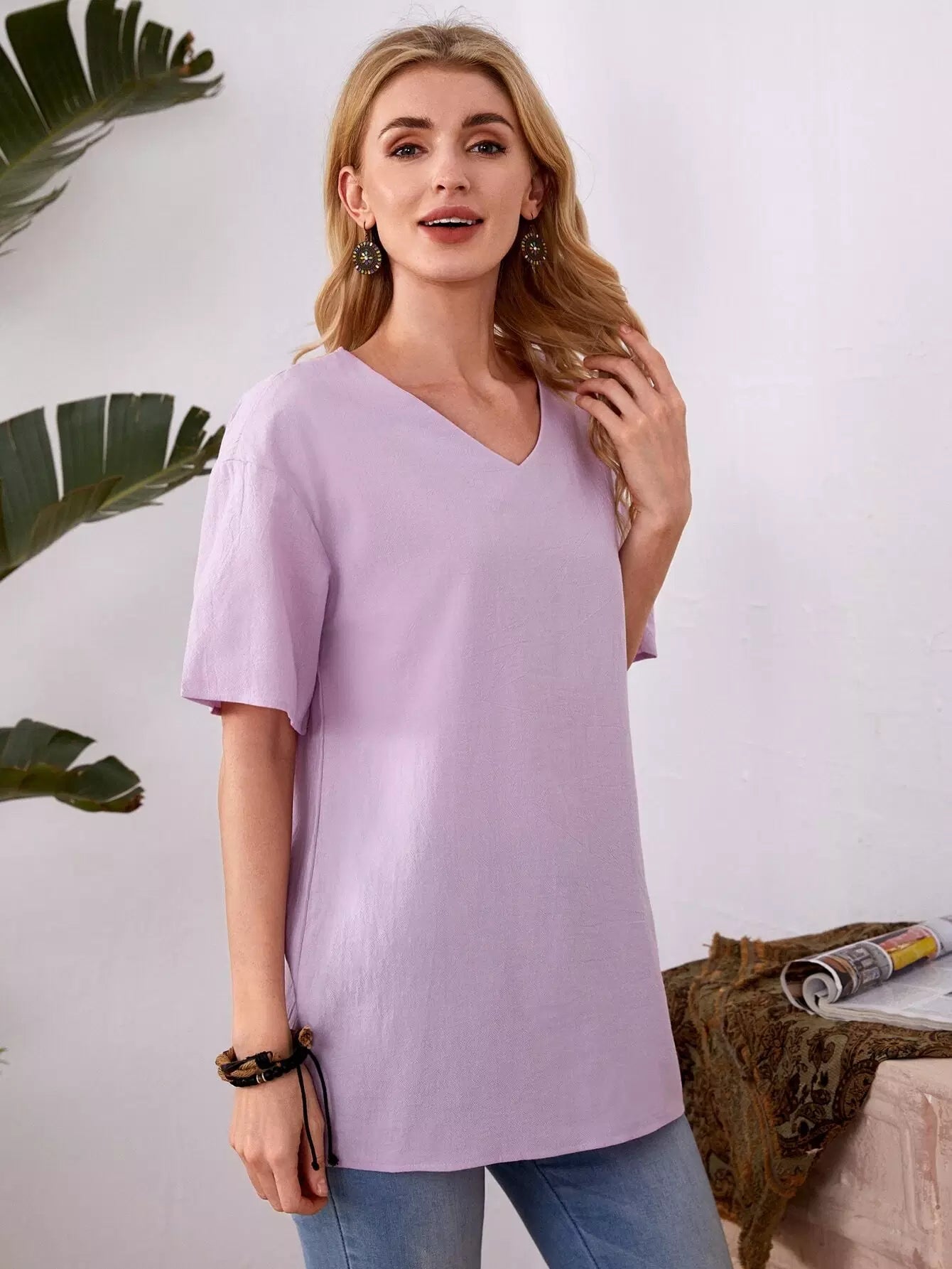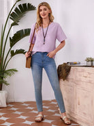 بلوزة سادة بفتحة رقبة على شكل حرف V