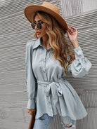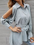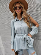 للنساء - قميص طويل بحزام وأكمام مقسمة