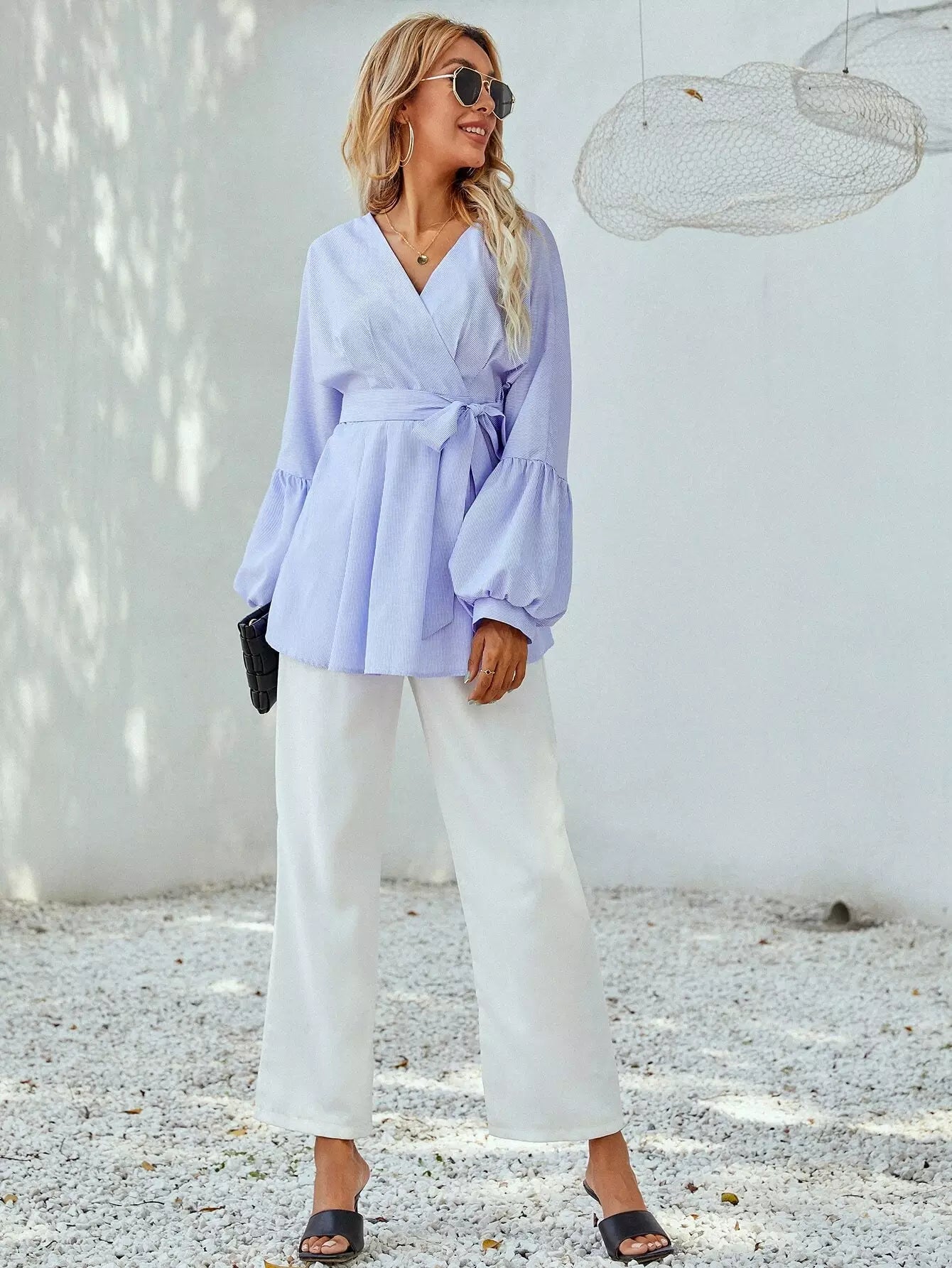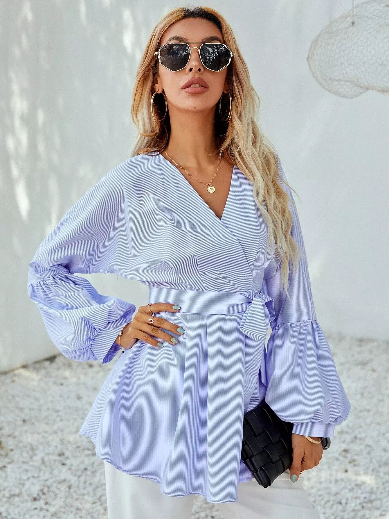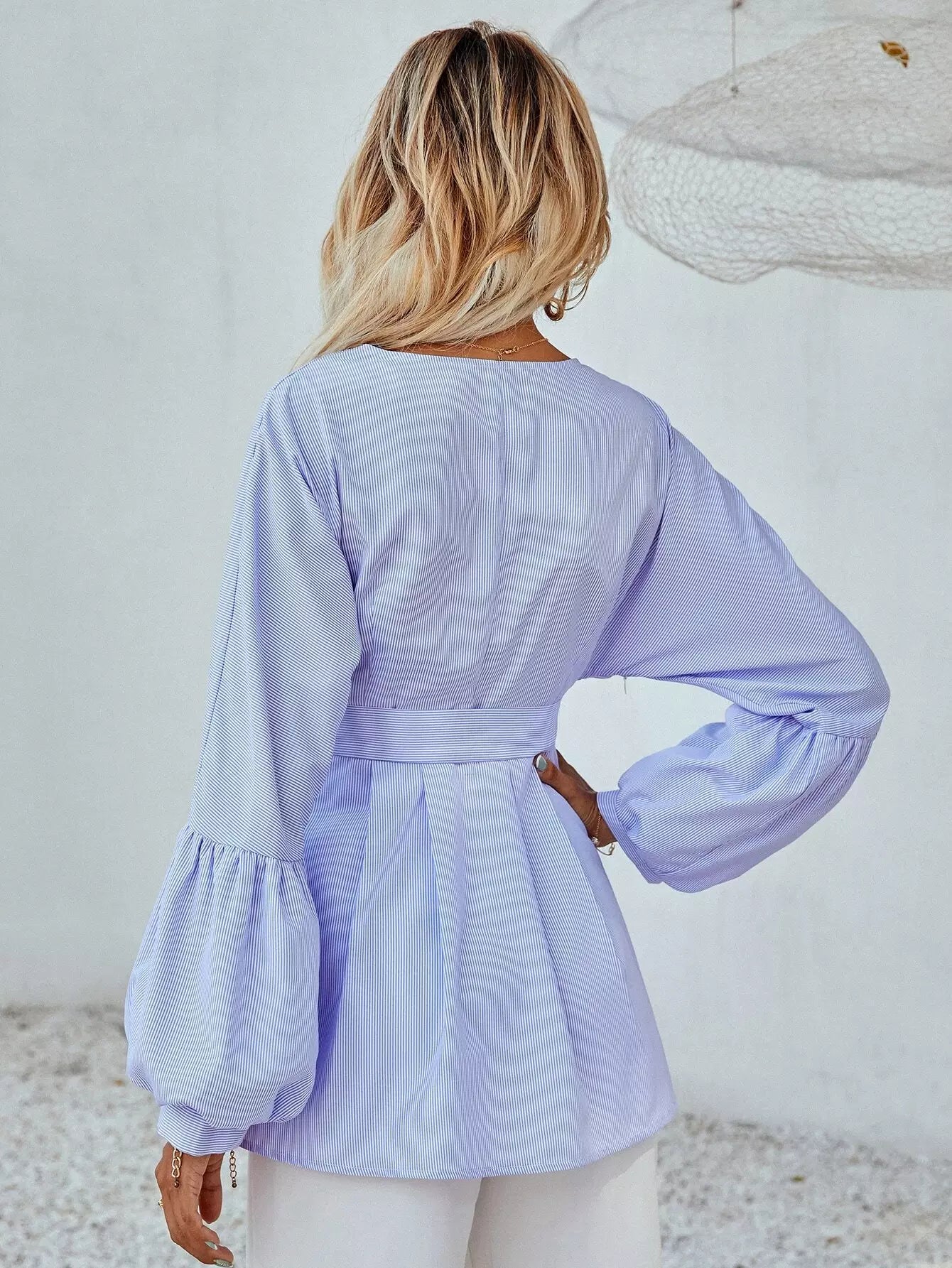 بلوزة مخططة بأكمام أسقف بدون حزام