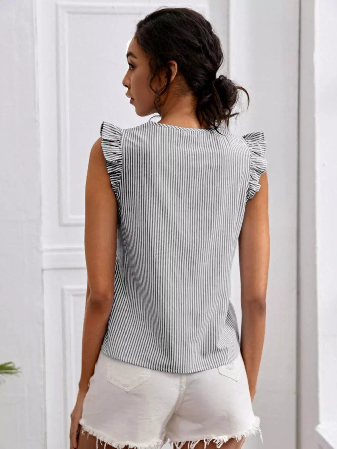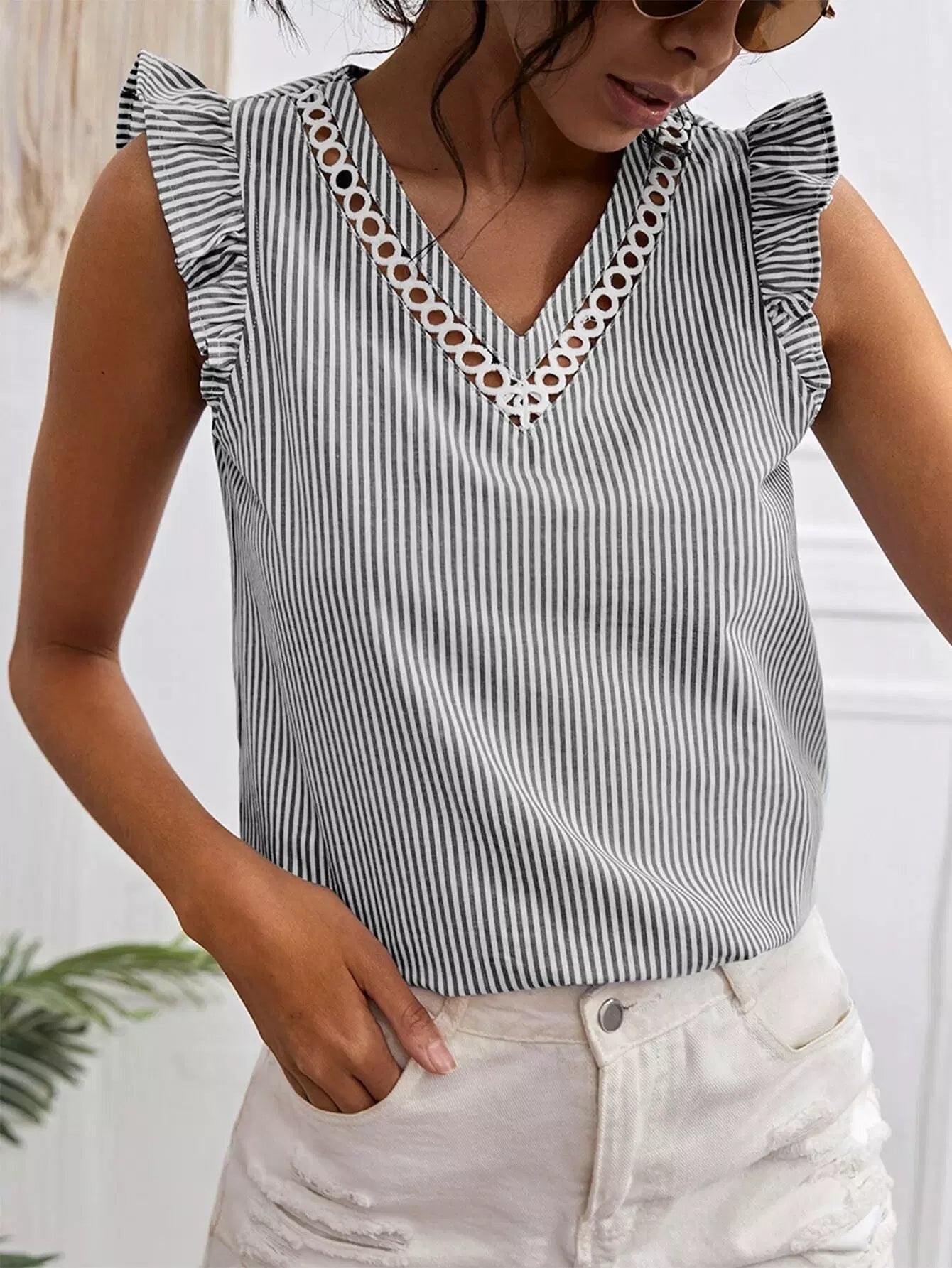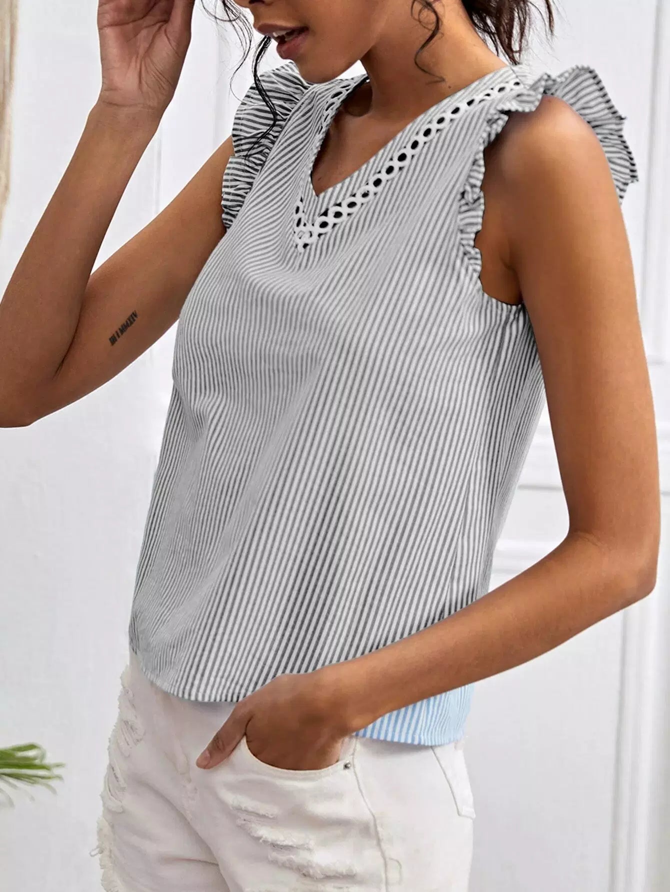 للنساء - بلوزة مخططة من الدانتيل المخرّم ومزينة بكشكشة