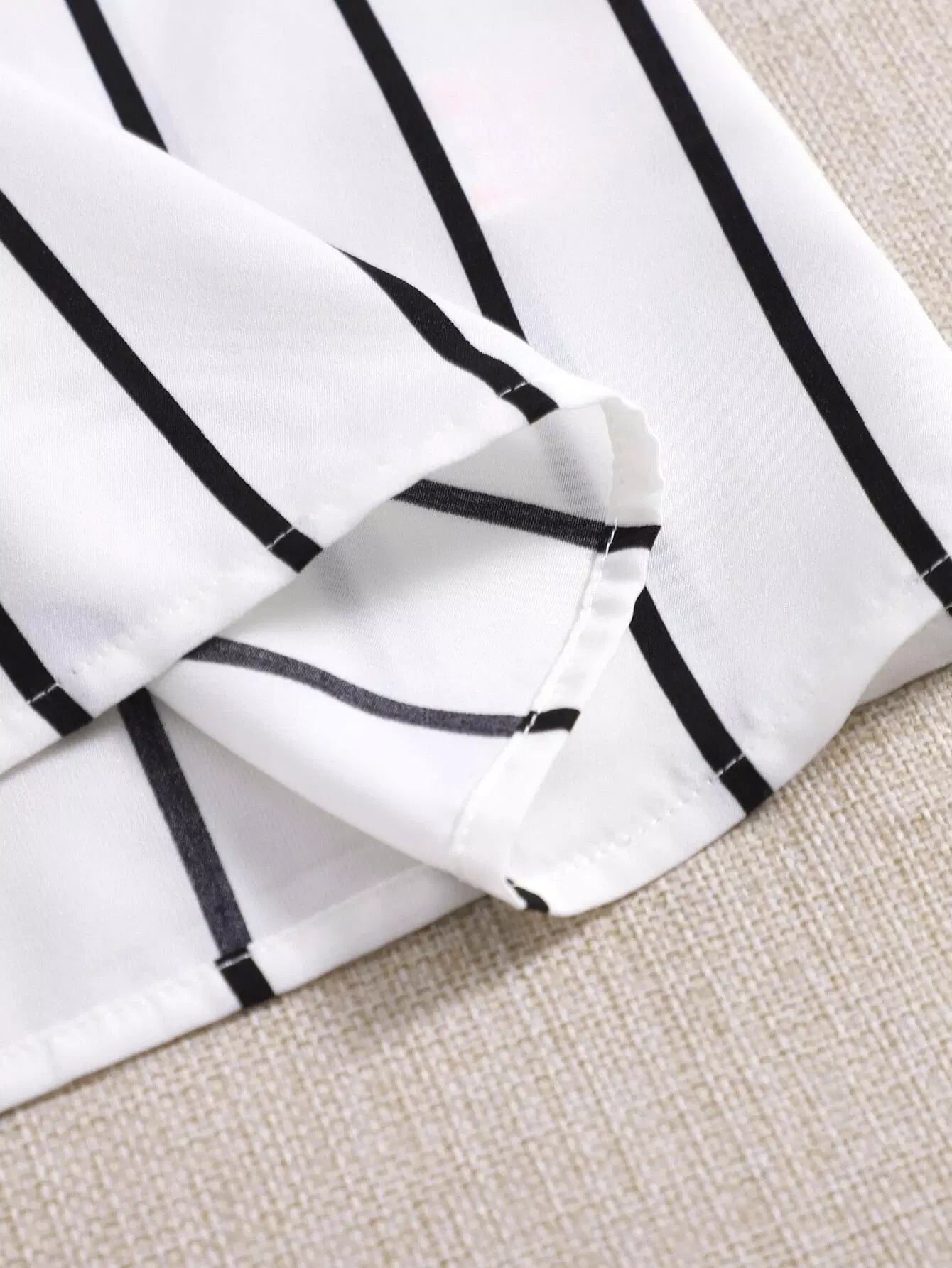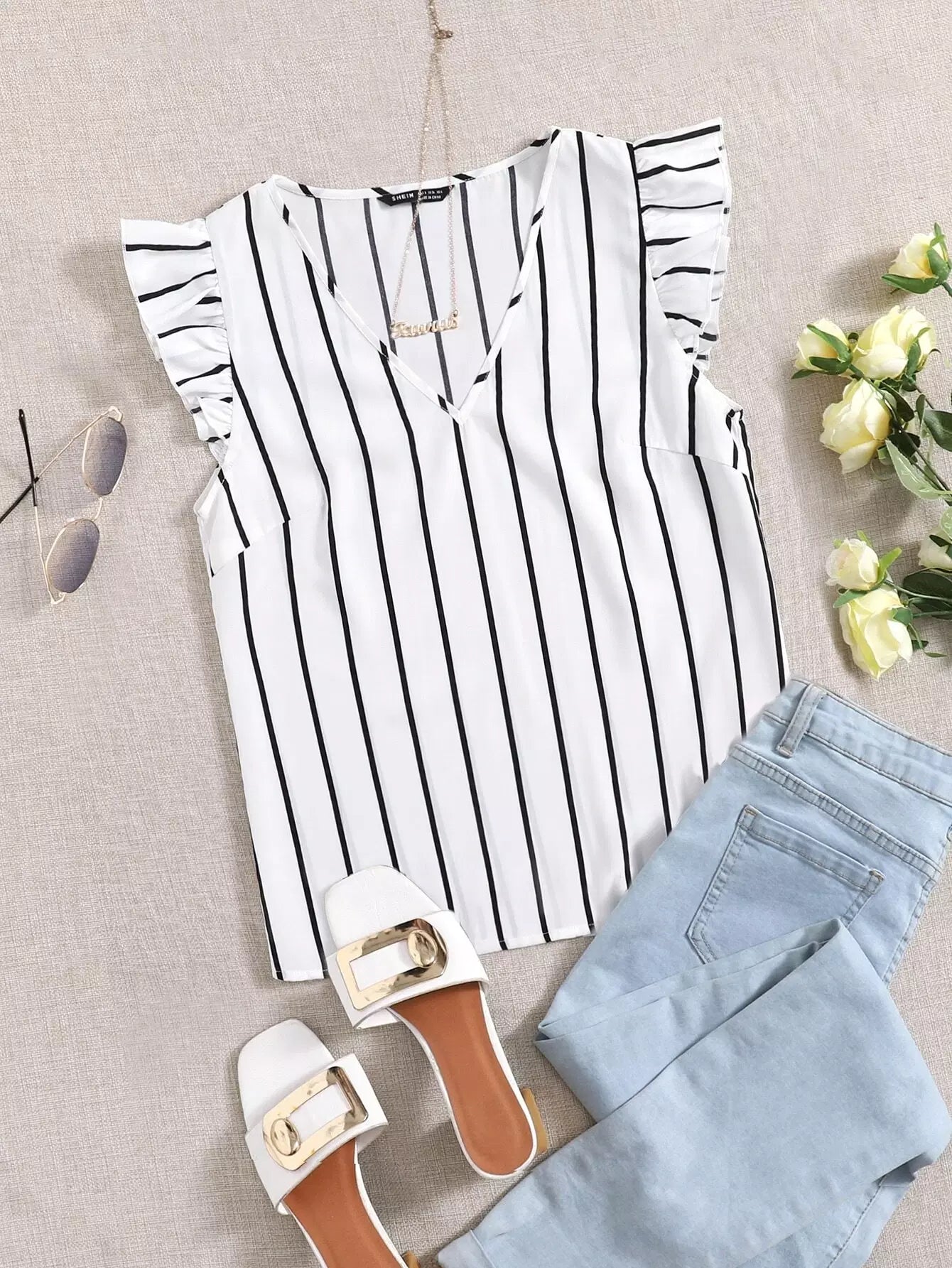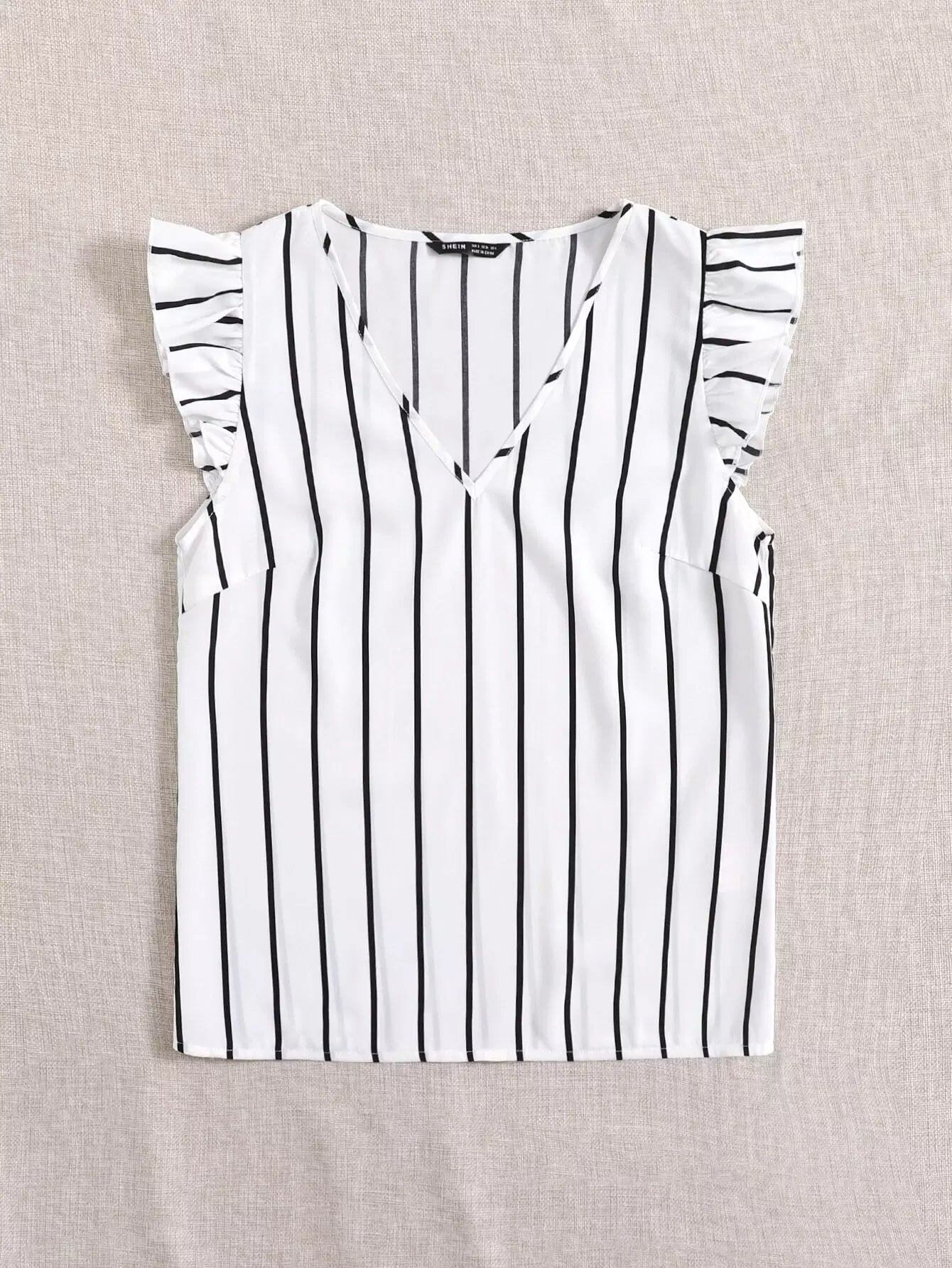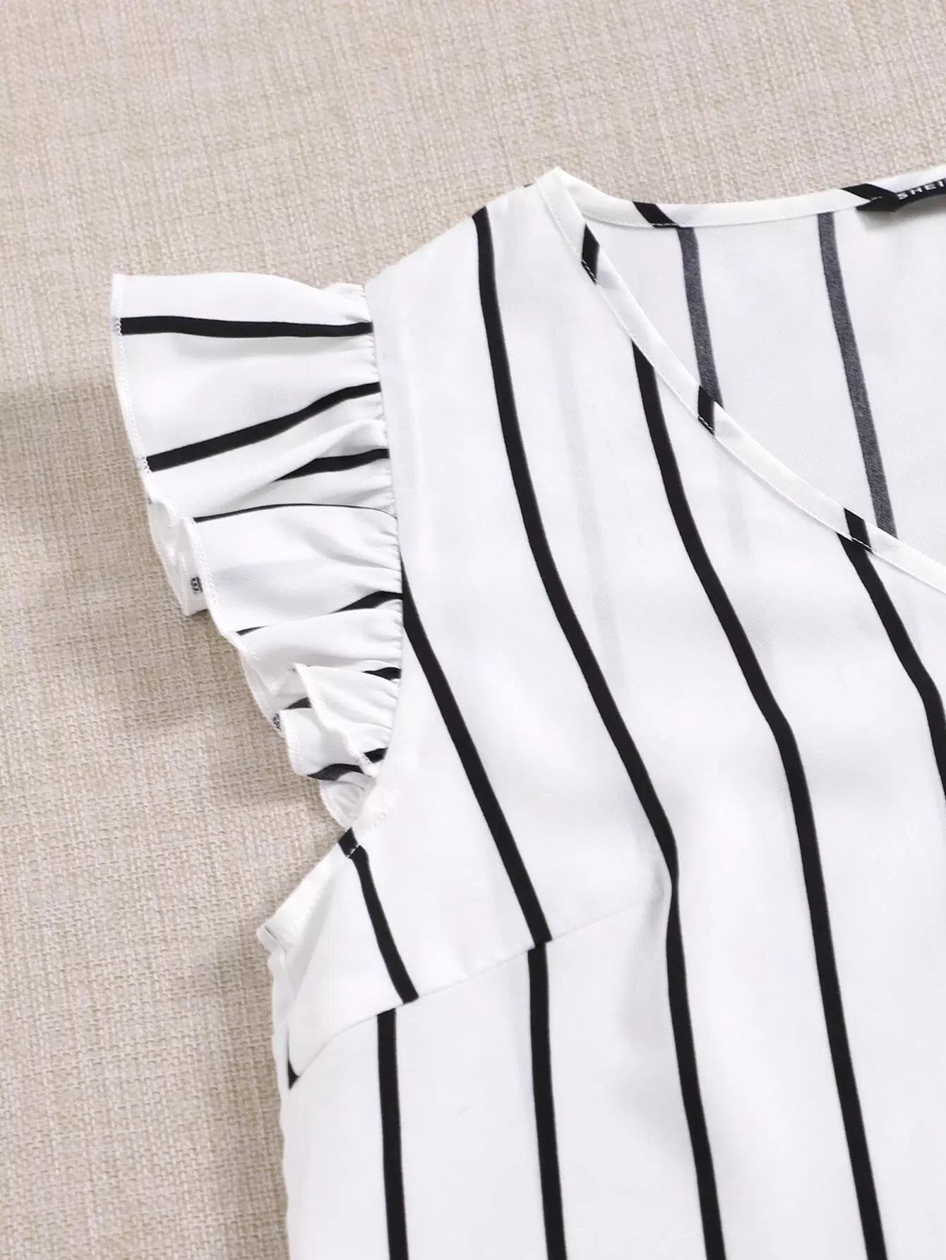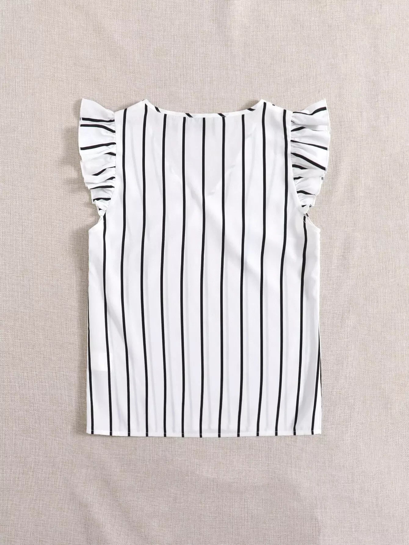 بلوزة مكشكشة مخططة بتفاصيل مكشكشة