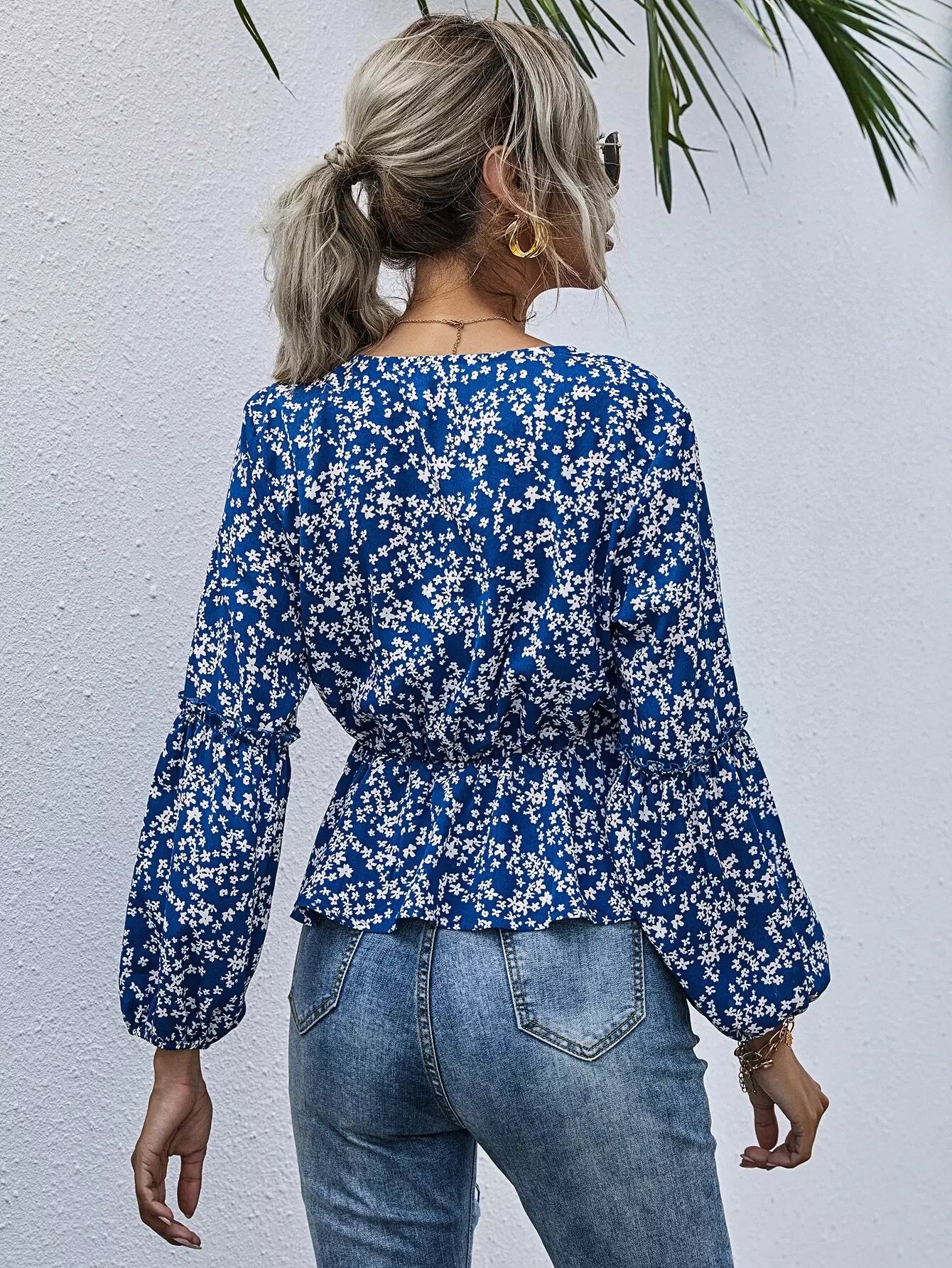 بلوزة ديتسي ديتسي بيبلوم مزينة بالورود من الأمام