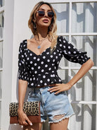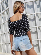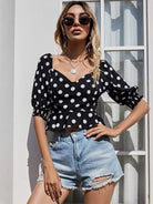بلوزة برقبة عريضة منقطة برقبة سويت هارت برقبة منقطة