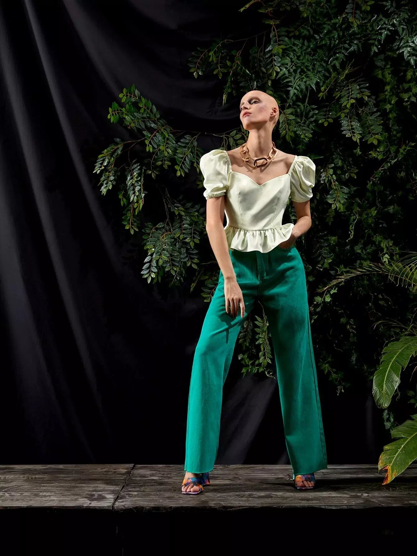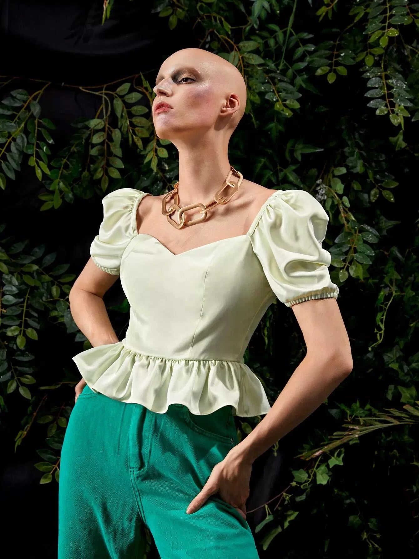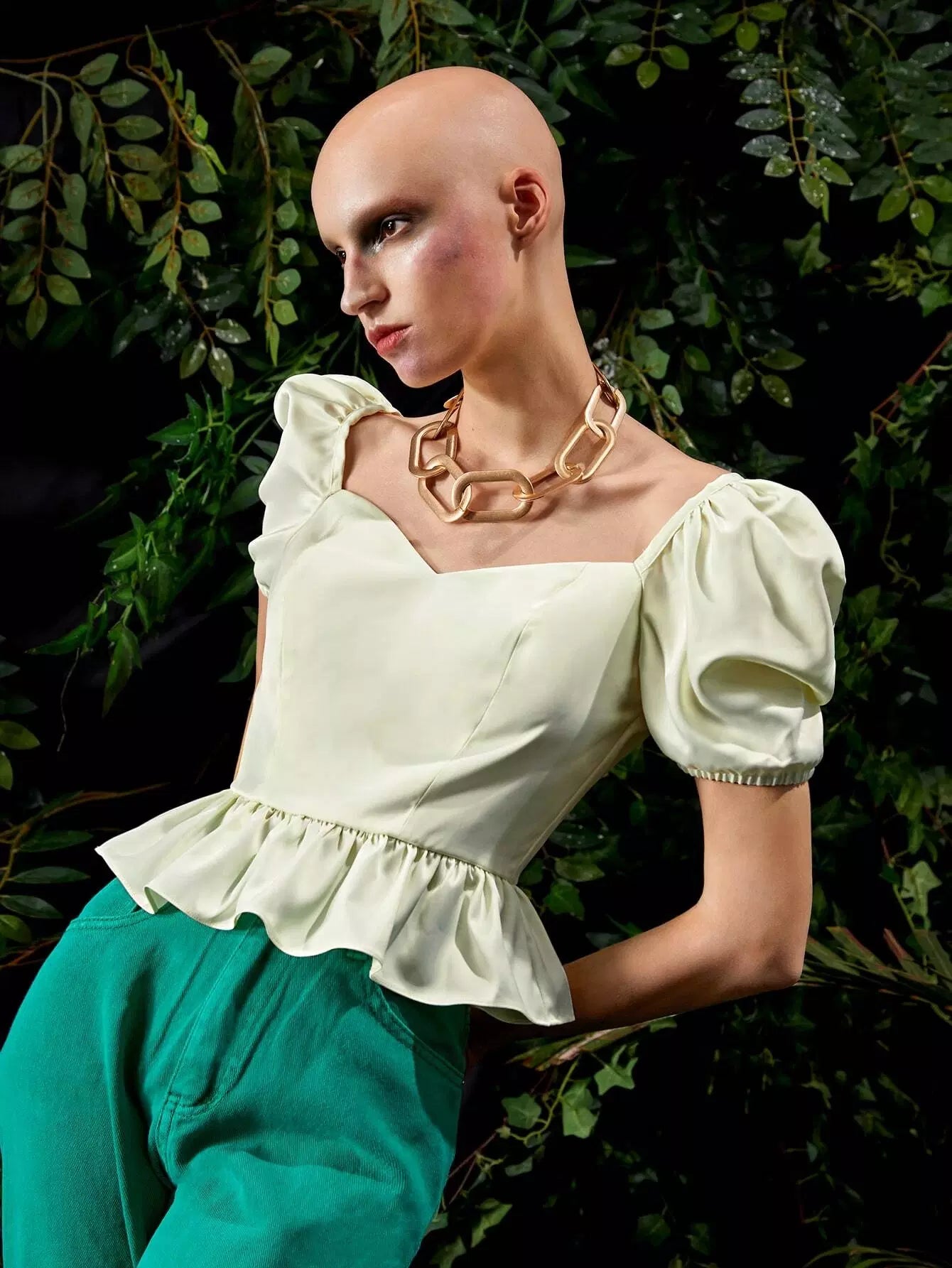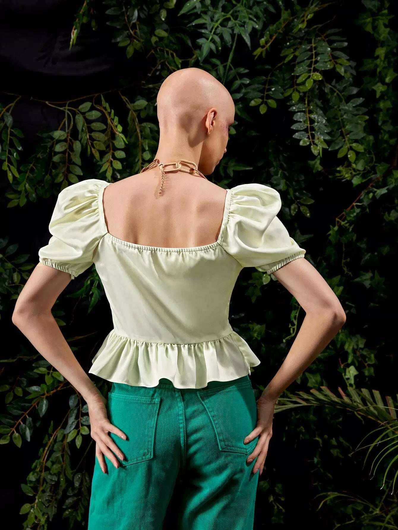 بلوزة بياقة منفوشة بأكمام منفوشة برقبة منفوشة بياقة منفوشة