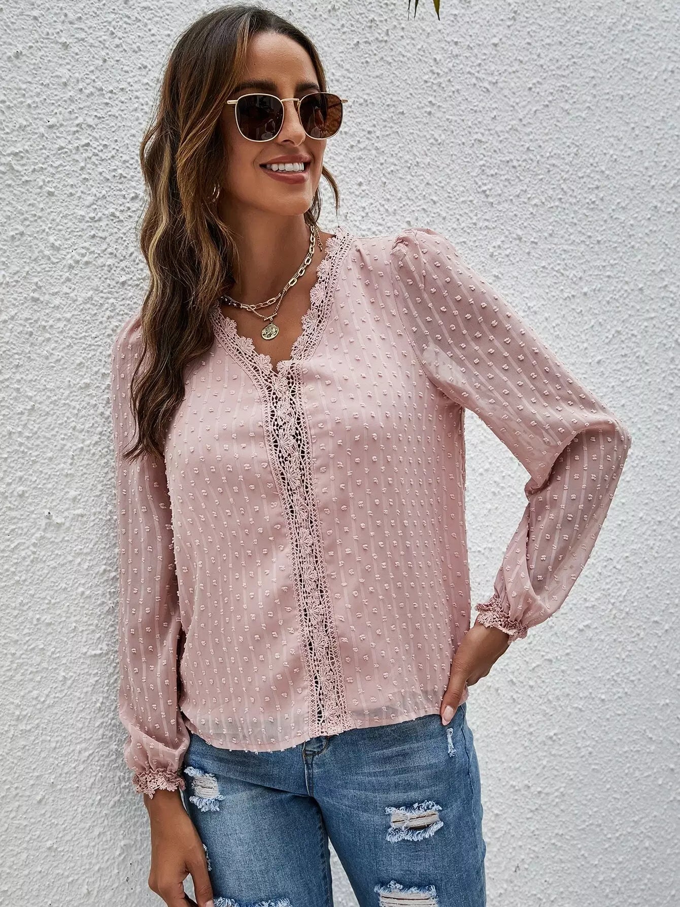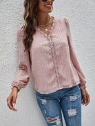 بلوزة من الدانتيل المتباين بنقاط سويسرية