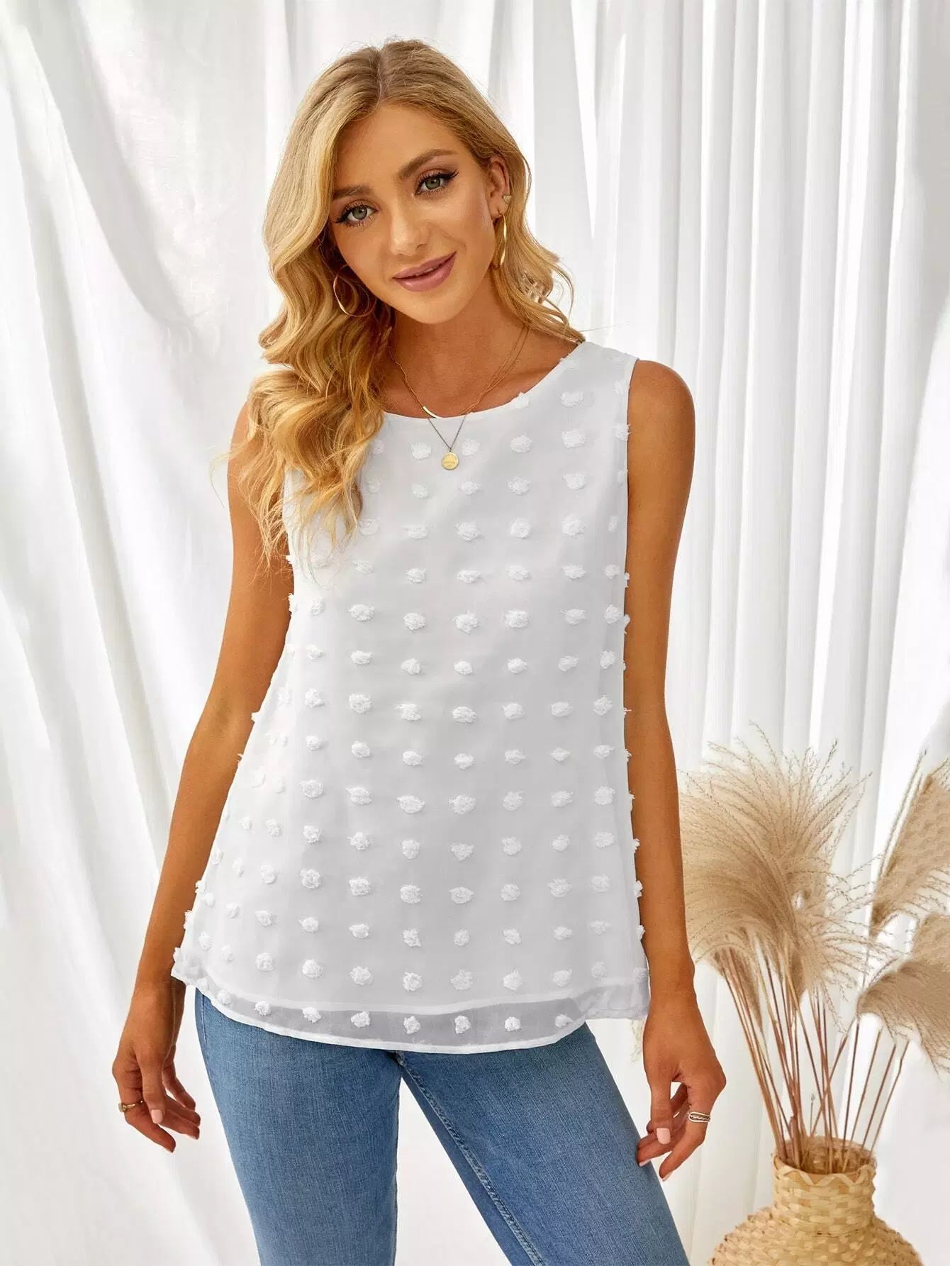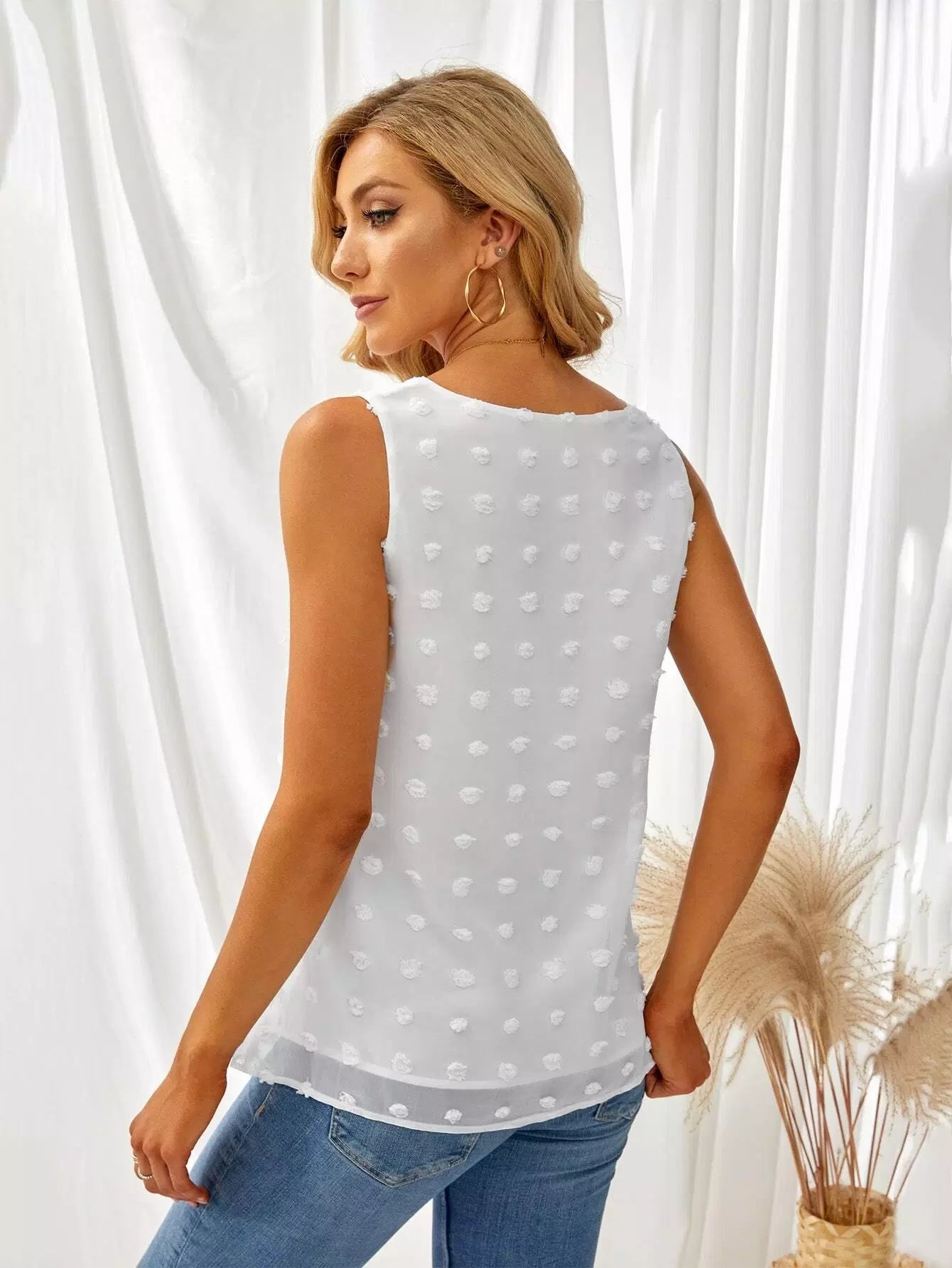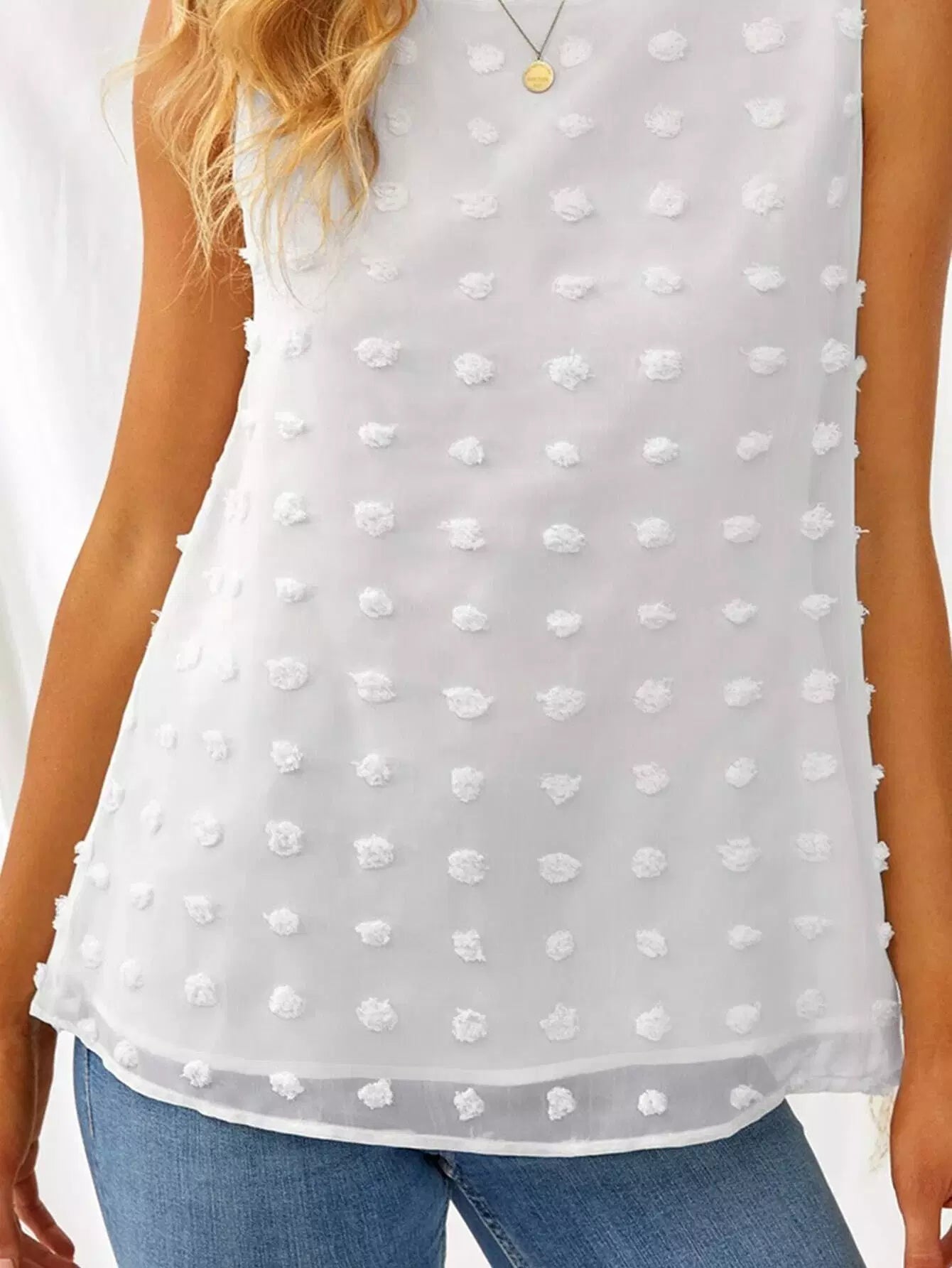 بلوزة سويسرية منقطة بلا أكمام بلا أكمام