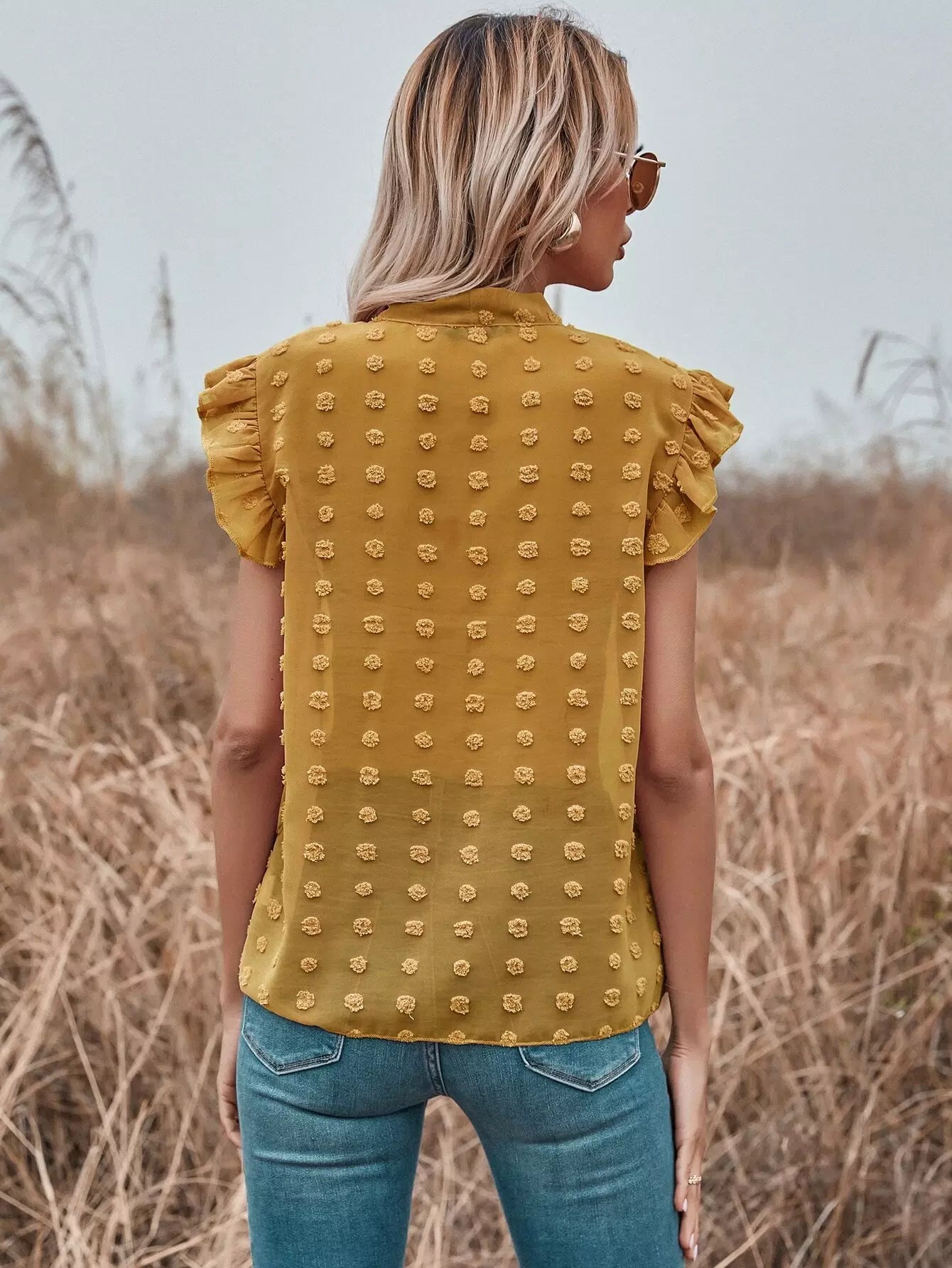 النساء - بلوزة شيفون شفافة ذات رقبة منقطة سويسرية