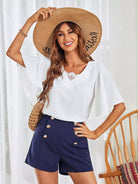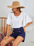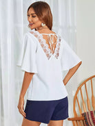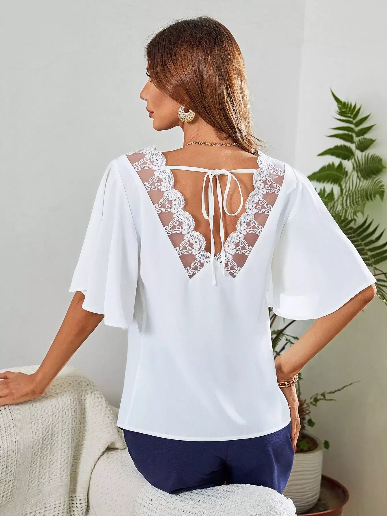 بلوزة من القماش الشبكي المطرز المتباين مع رباط خلفي وأكمام منفوشة