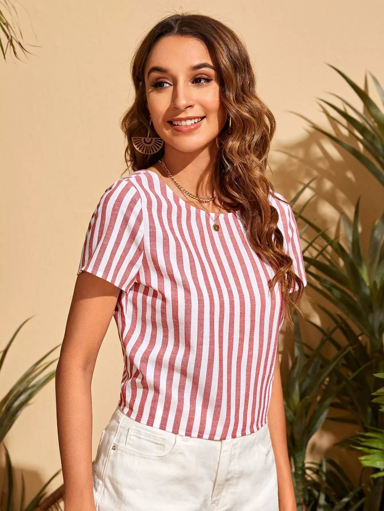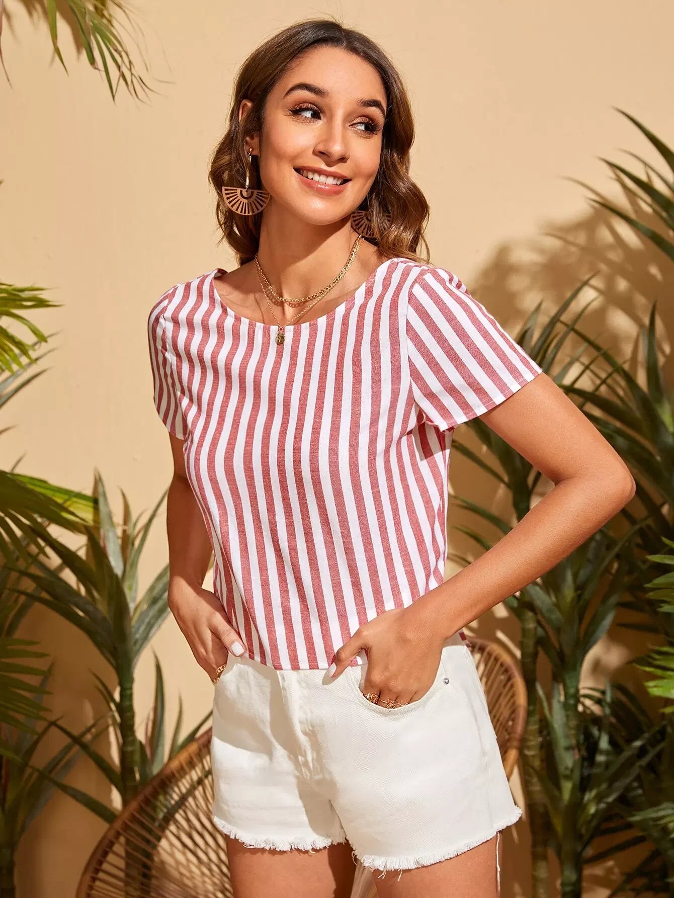بلوزة مخططة بلونين مخطط بربطة عنق بدون ربطة ظهر