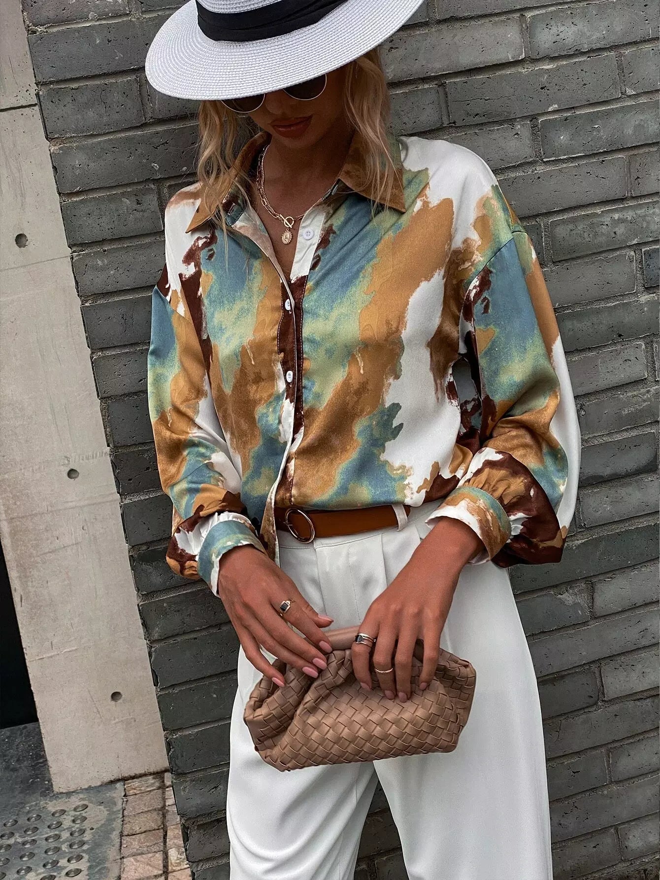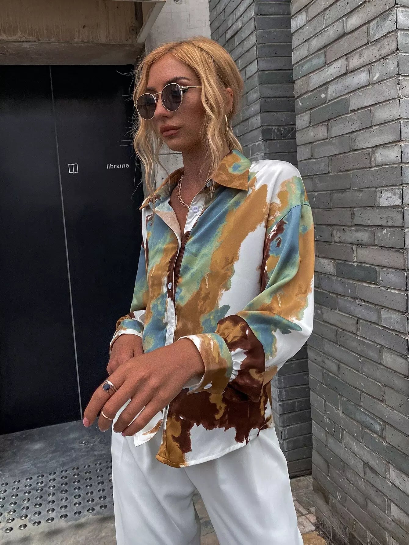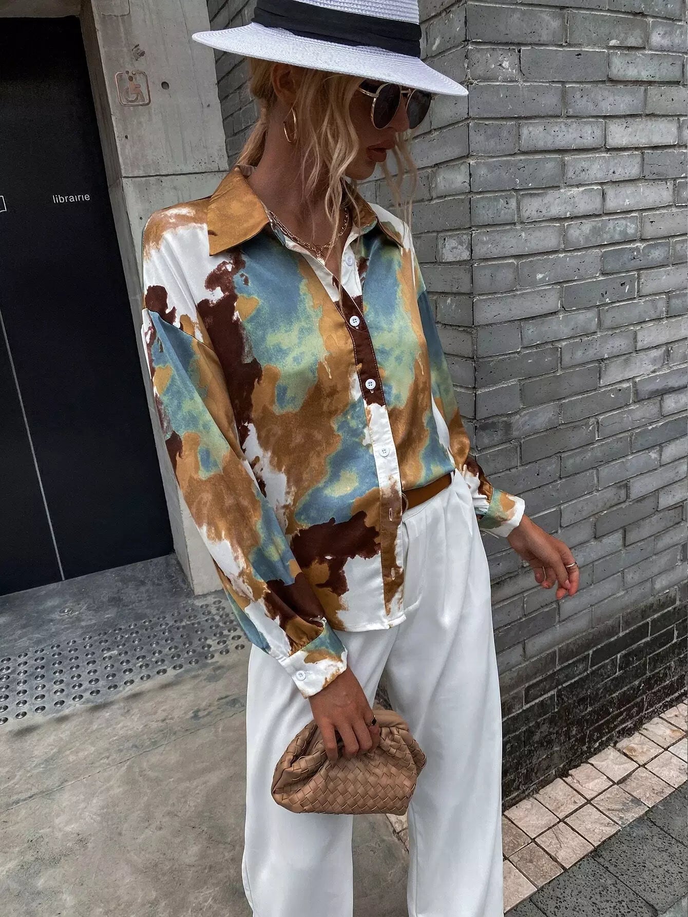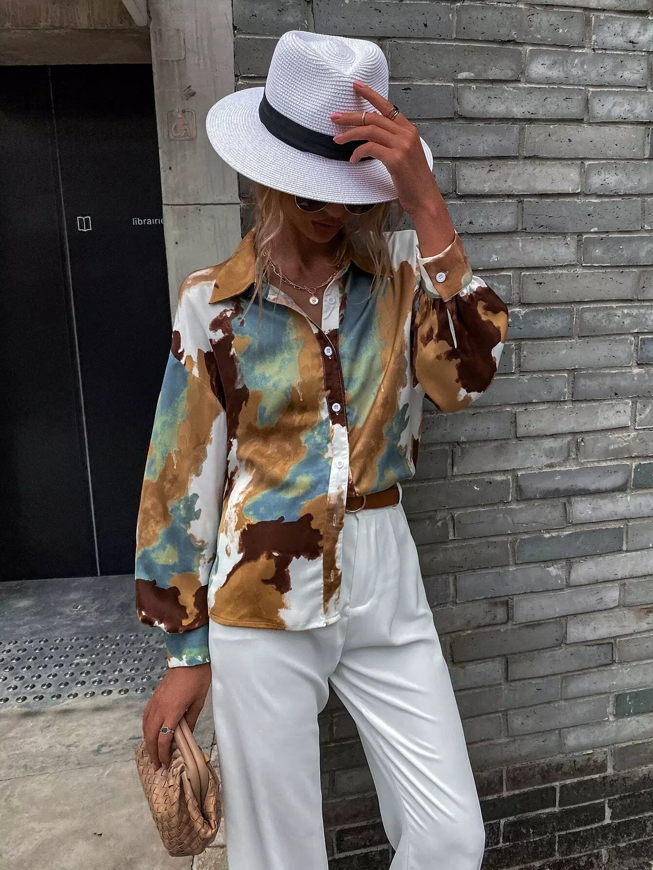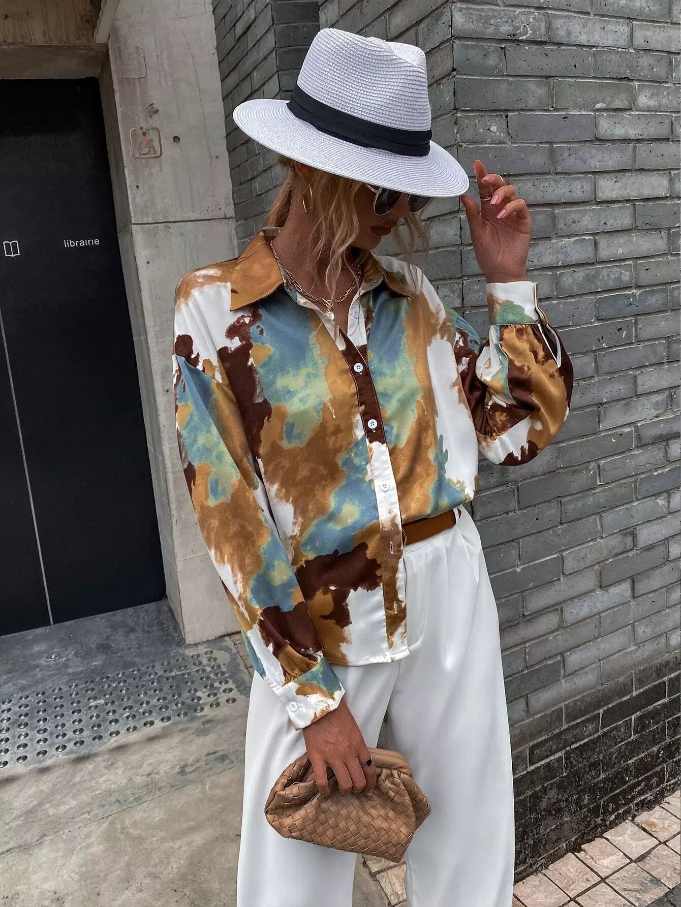 قميص منسدل الكتف مصبوغ بربطة عنق مصبوغ