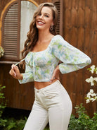 بلوزة زهرية مكشكشة عند الصدر ورباط أمامي