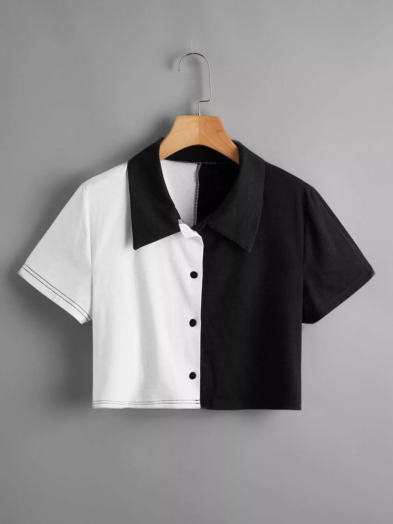 بلوزة أمامية بلونين بأزرار أمامية بلونين