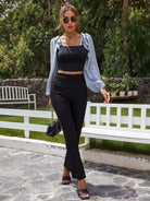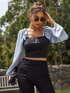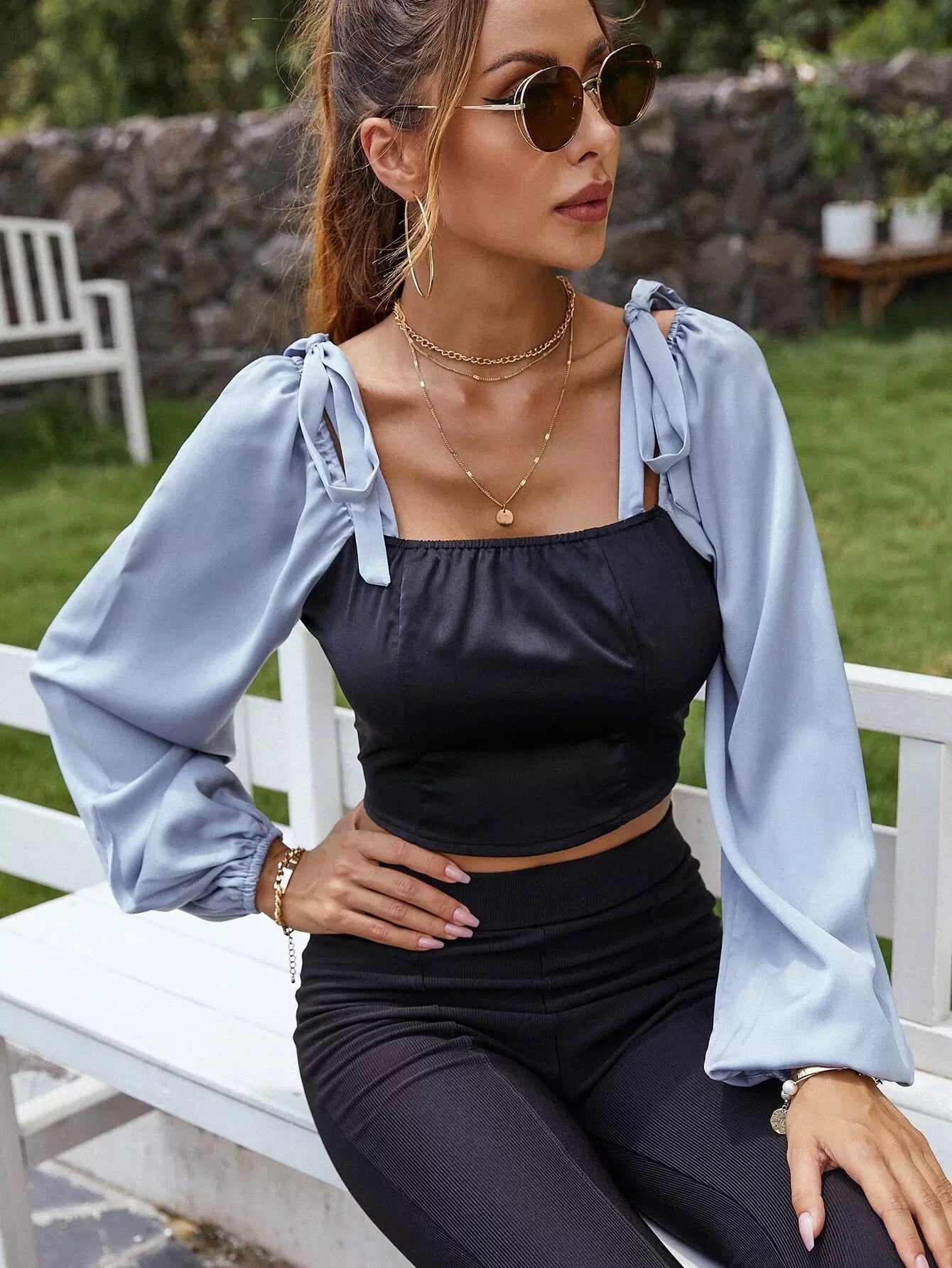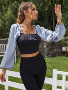 بلوزة ذات أكمام فوانيس بأكمام ربطة كتف بلونين