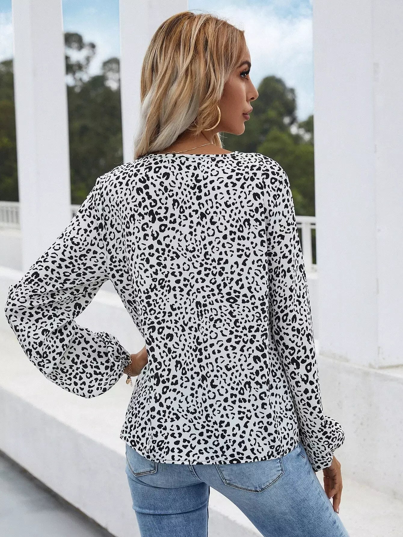 بلوزة مطبوعة بالكامل بفتحة رقبة على شكل حرف V