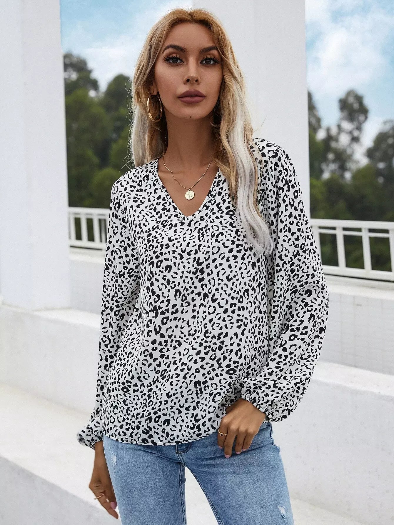 النساء - بلوزة مطبوعة برقبة على شكل حرف V
