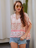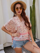 بلوزة زهور بأكمام على شكل V بياقة على شكل حرف V