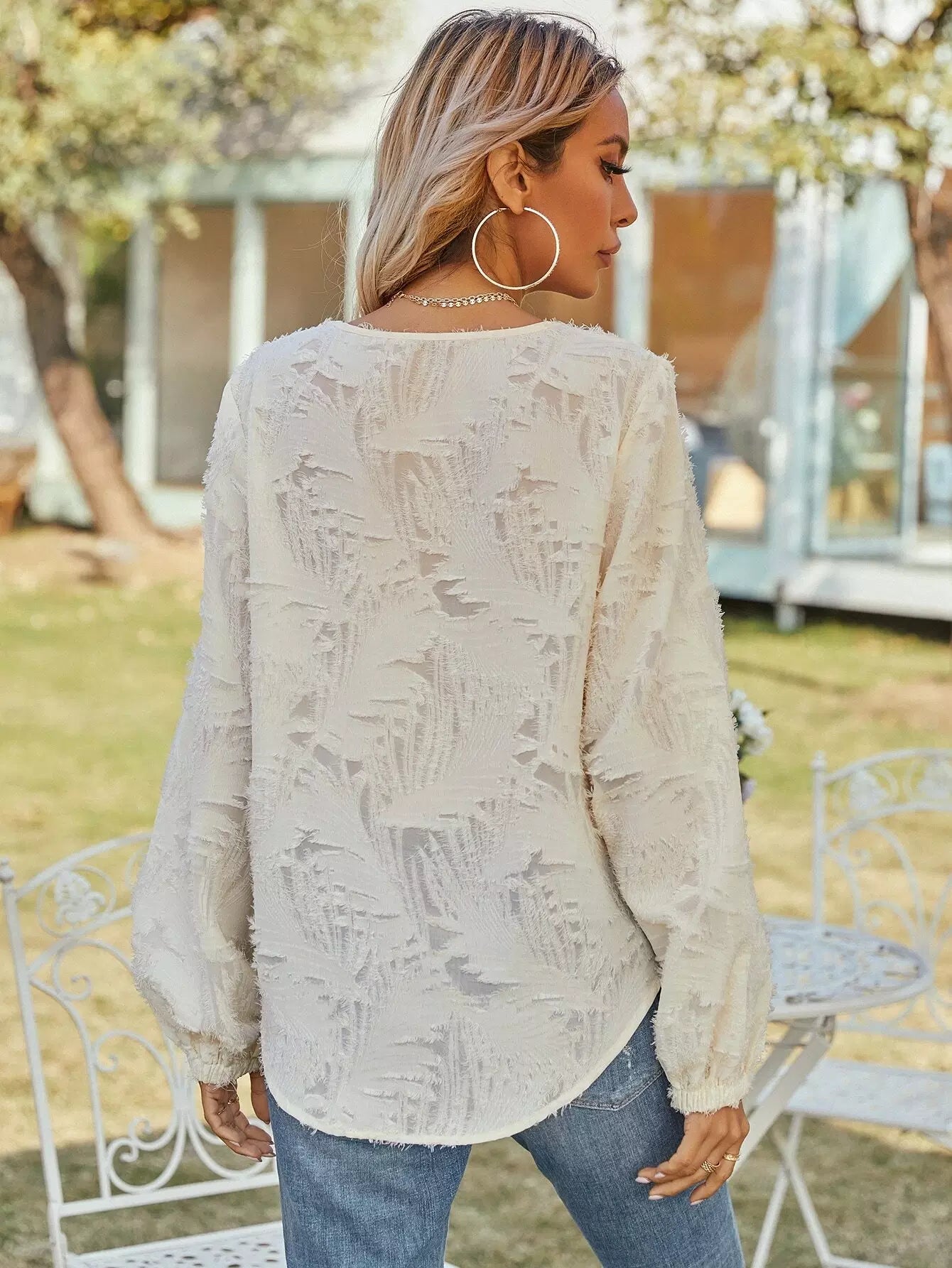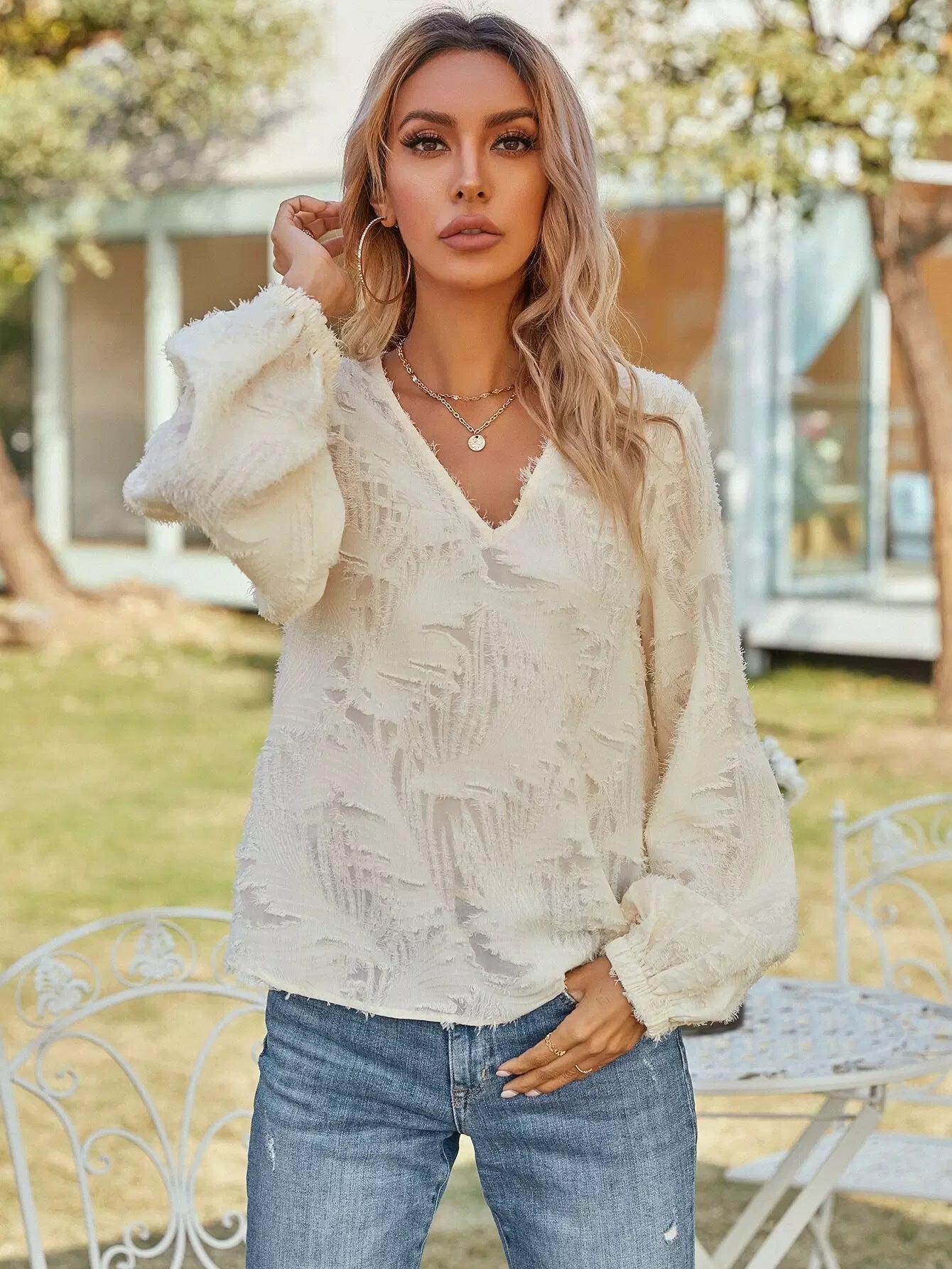 النساء - بلوزة بحاشية منحنية ورقبة على شكل حرف V