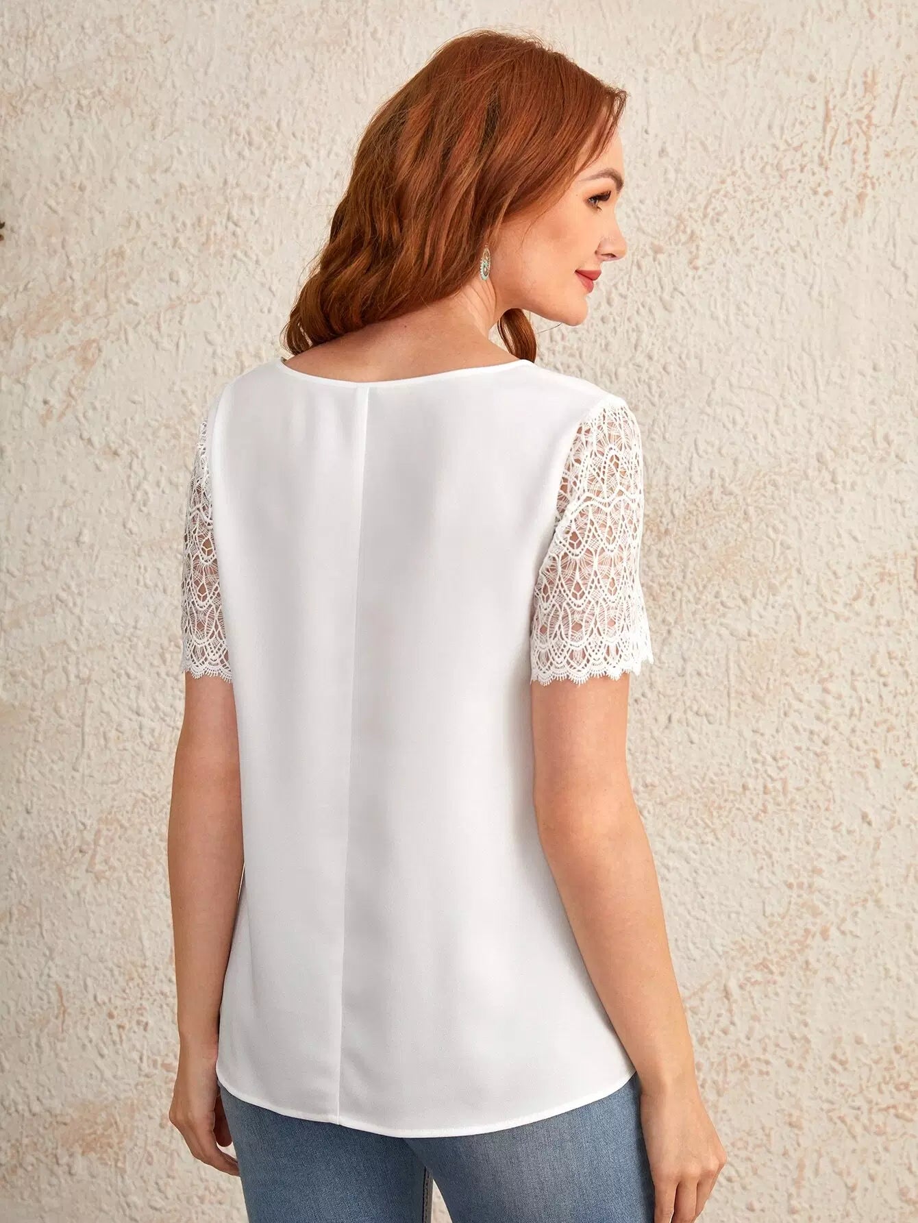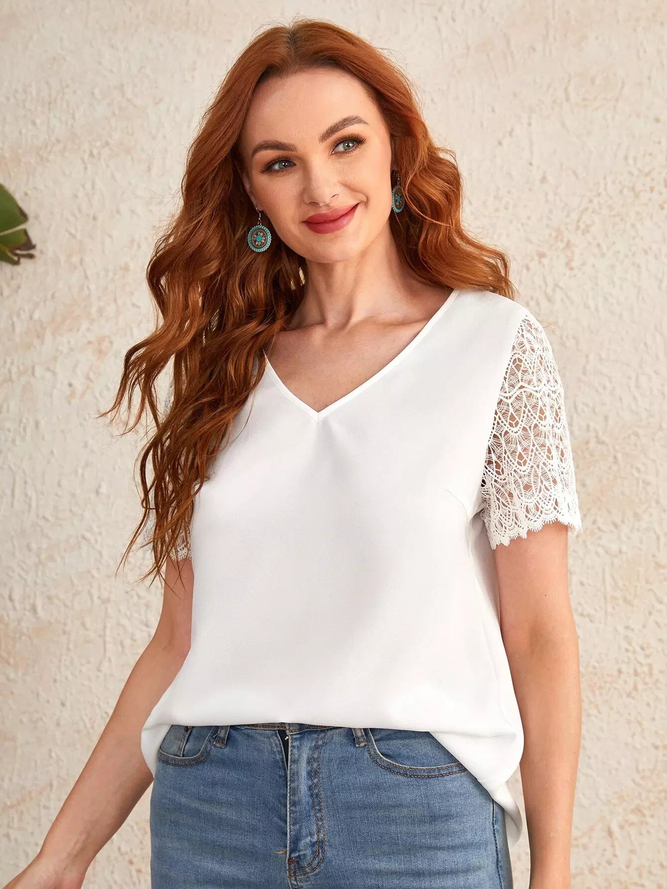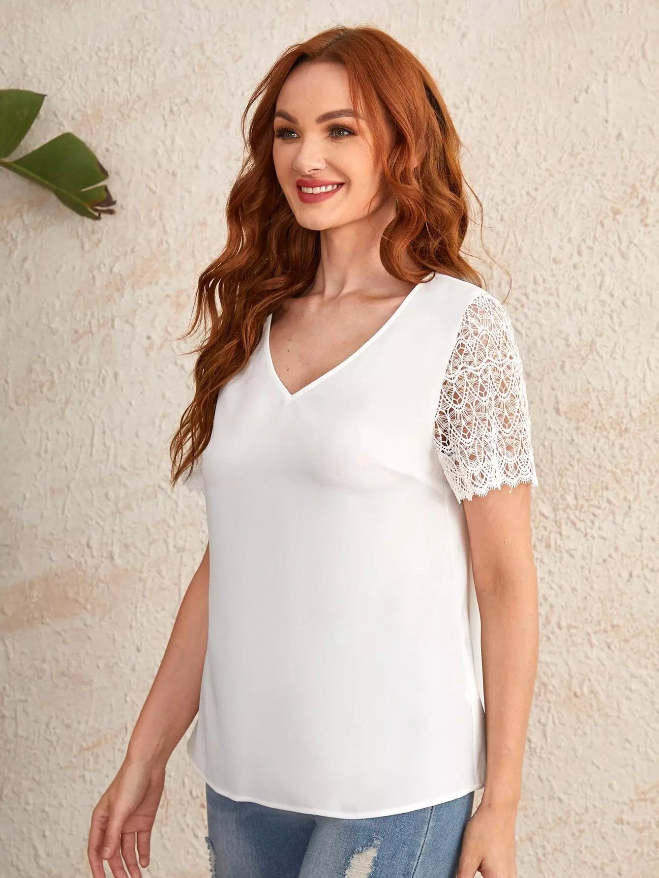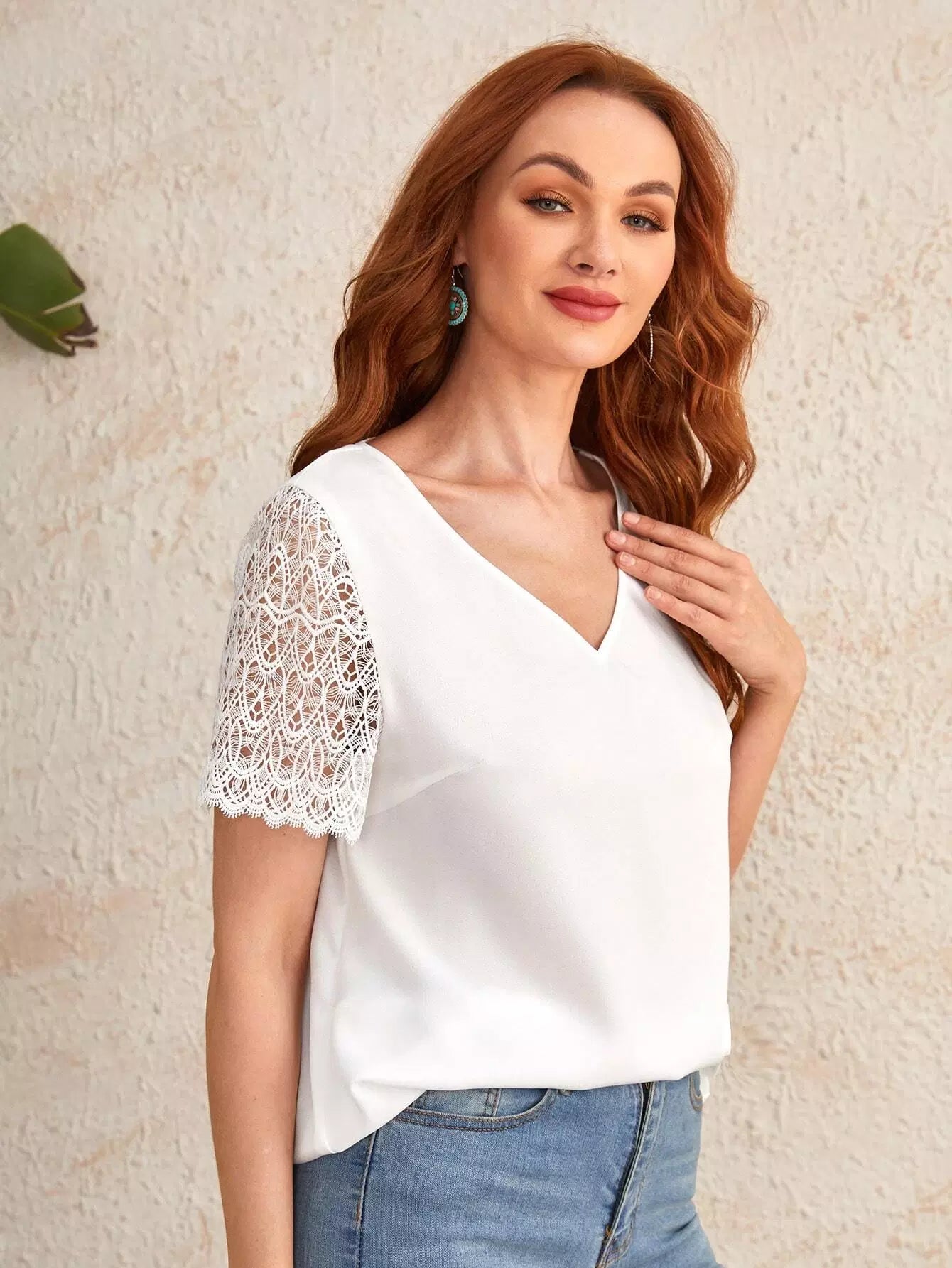 بلوزة بأكمام من الدانتيل وفتحة رقبة على شكل حرف V