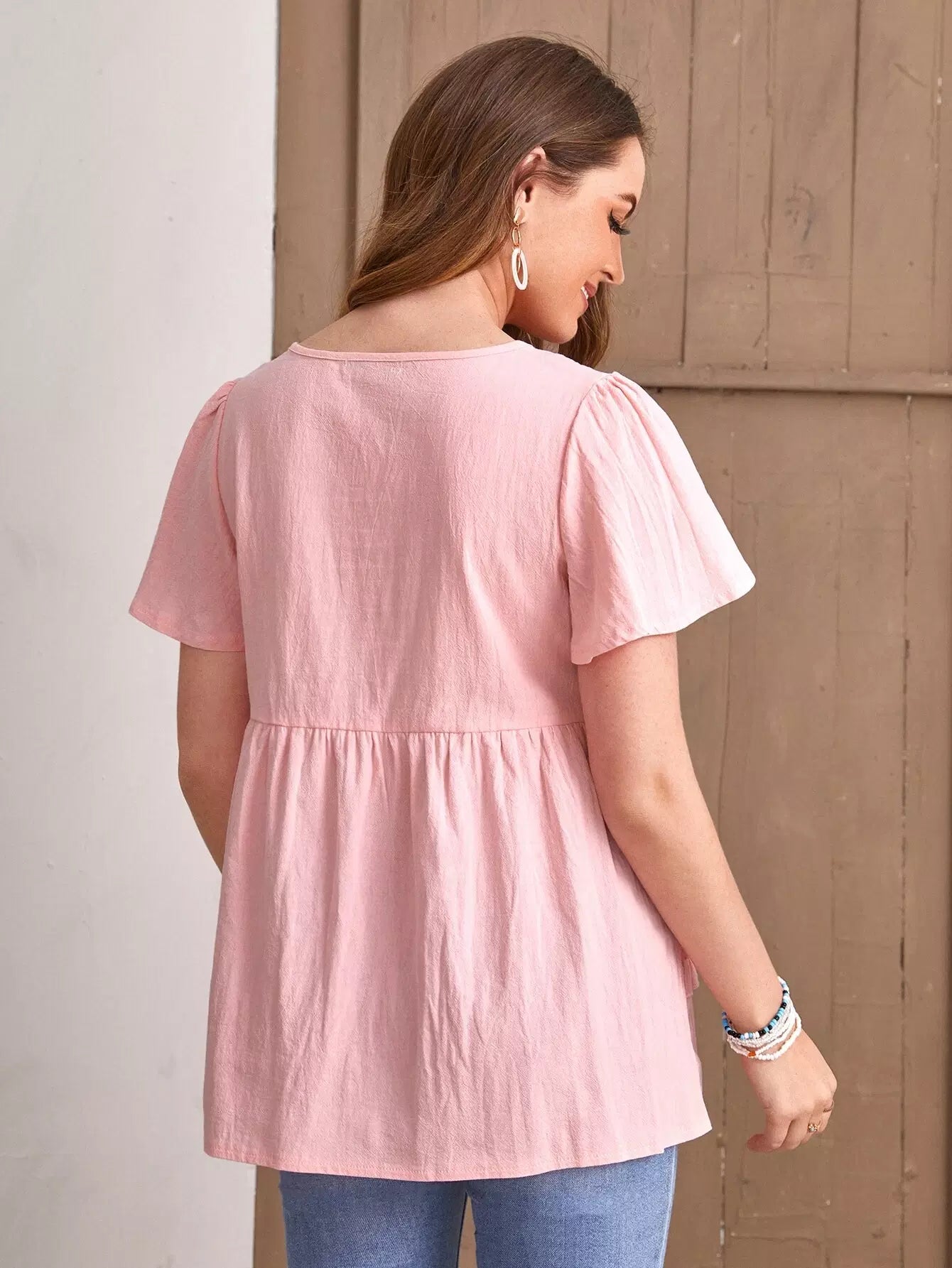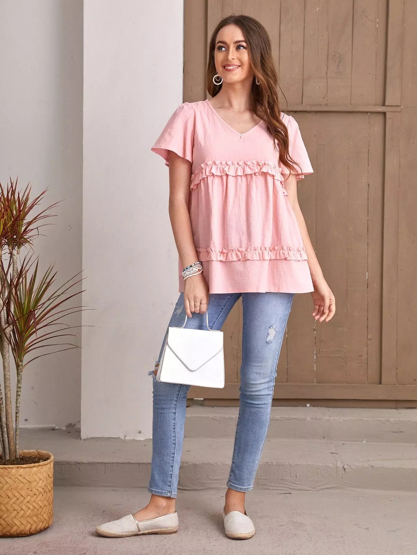 بلوزة بياقة على شكل V بياقة على شكل كشكش على شكل كشكش