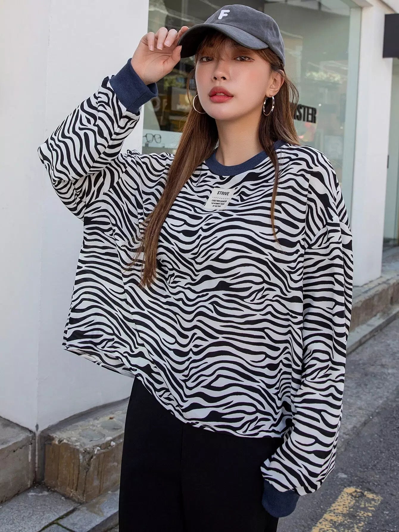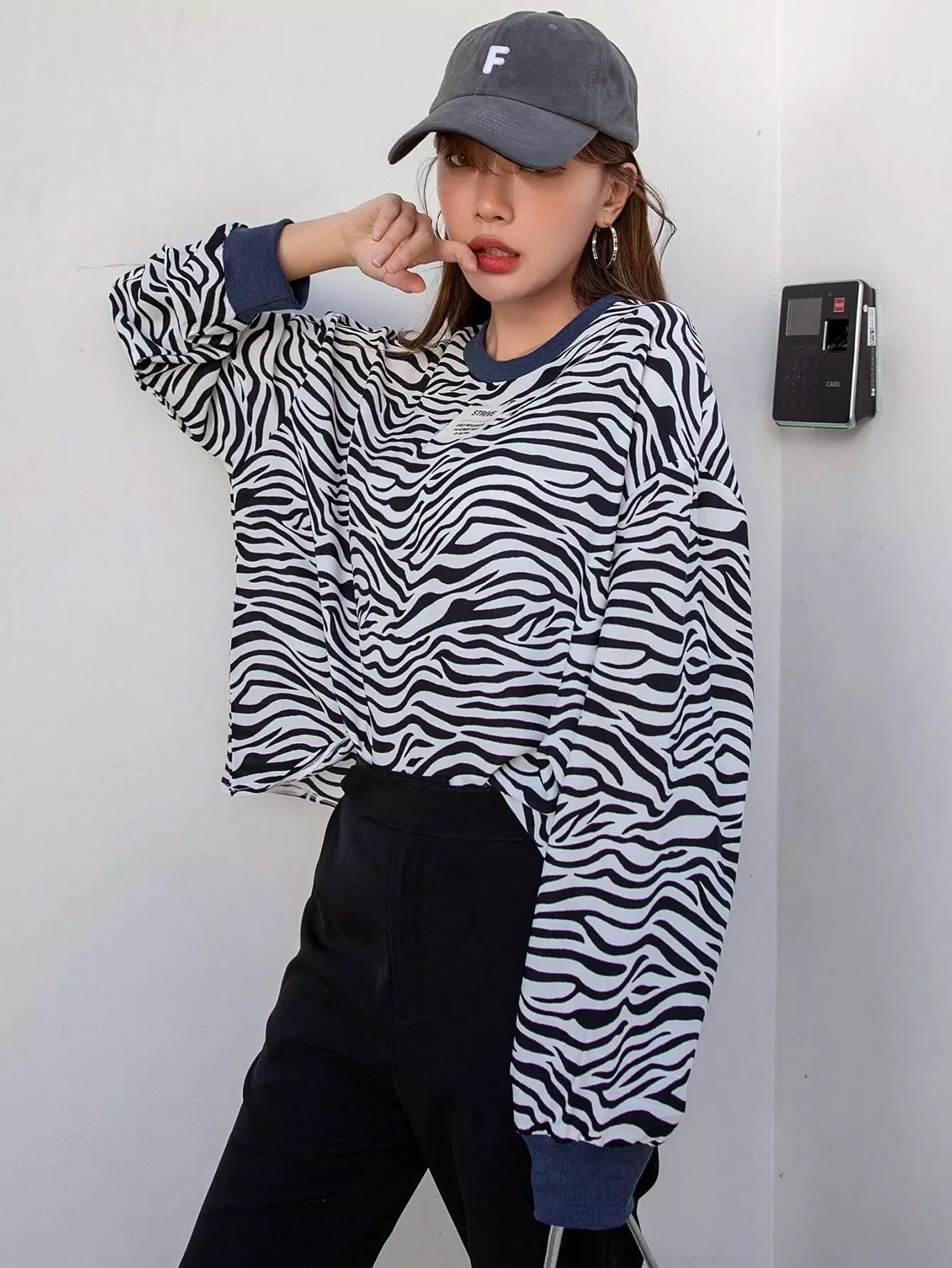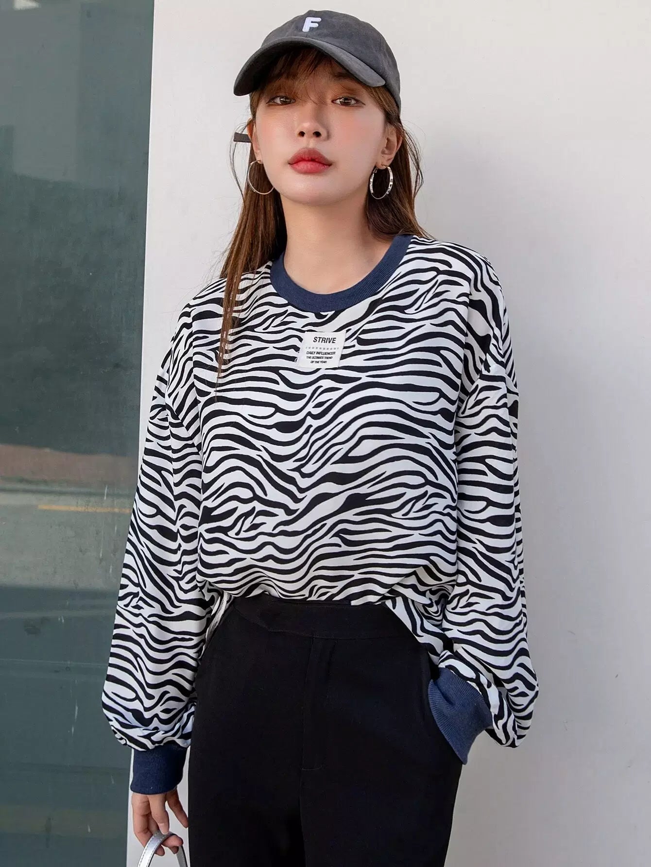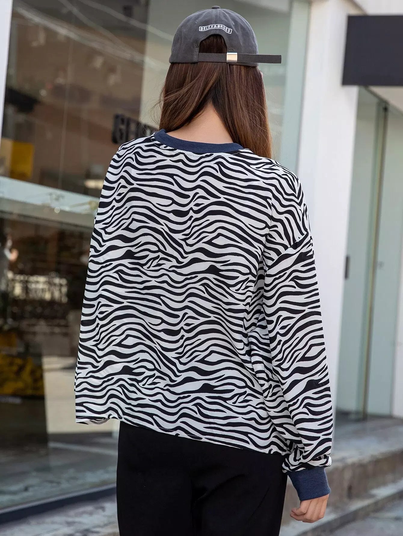 بلوزة مخططة بكتف منسدلة منسدلة الأكتاف مزينة برقعة مخططة بحمار وحشي