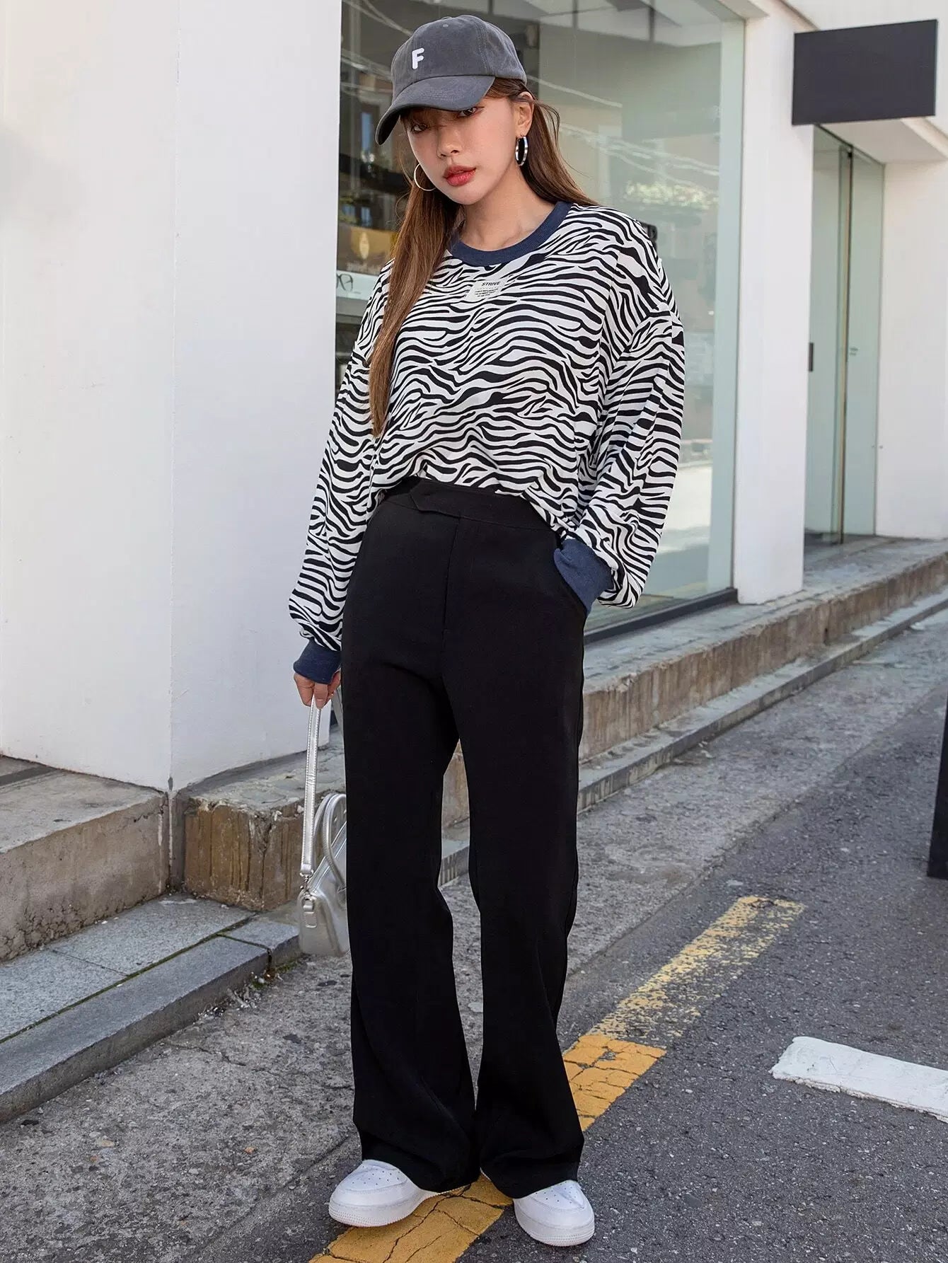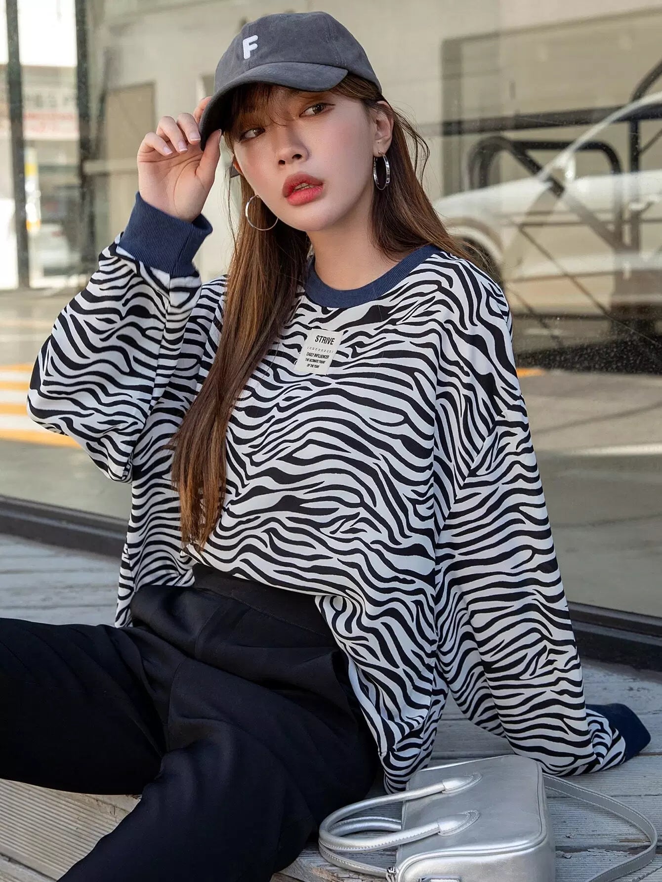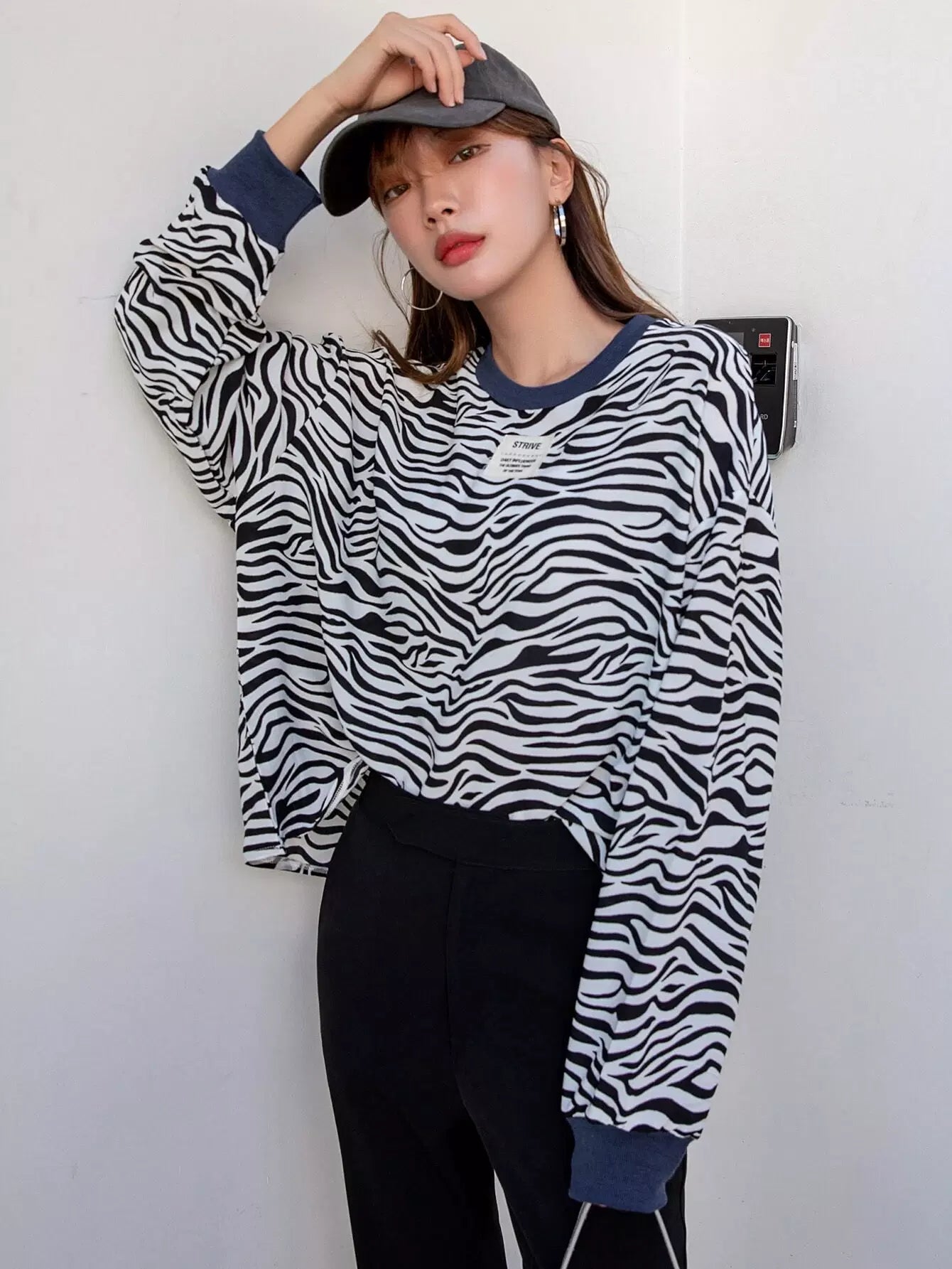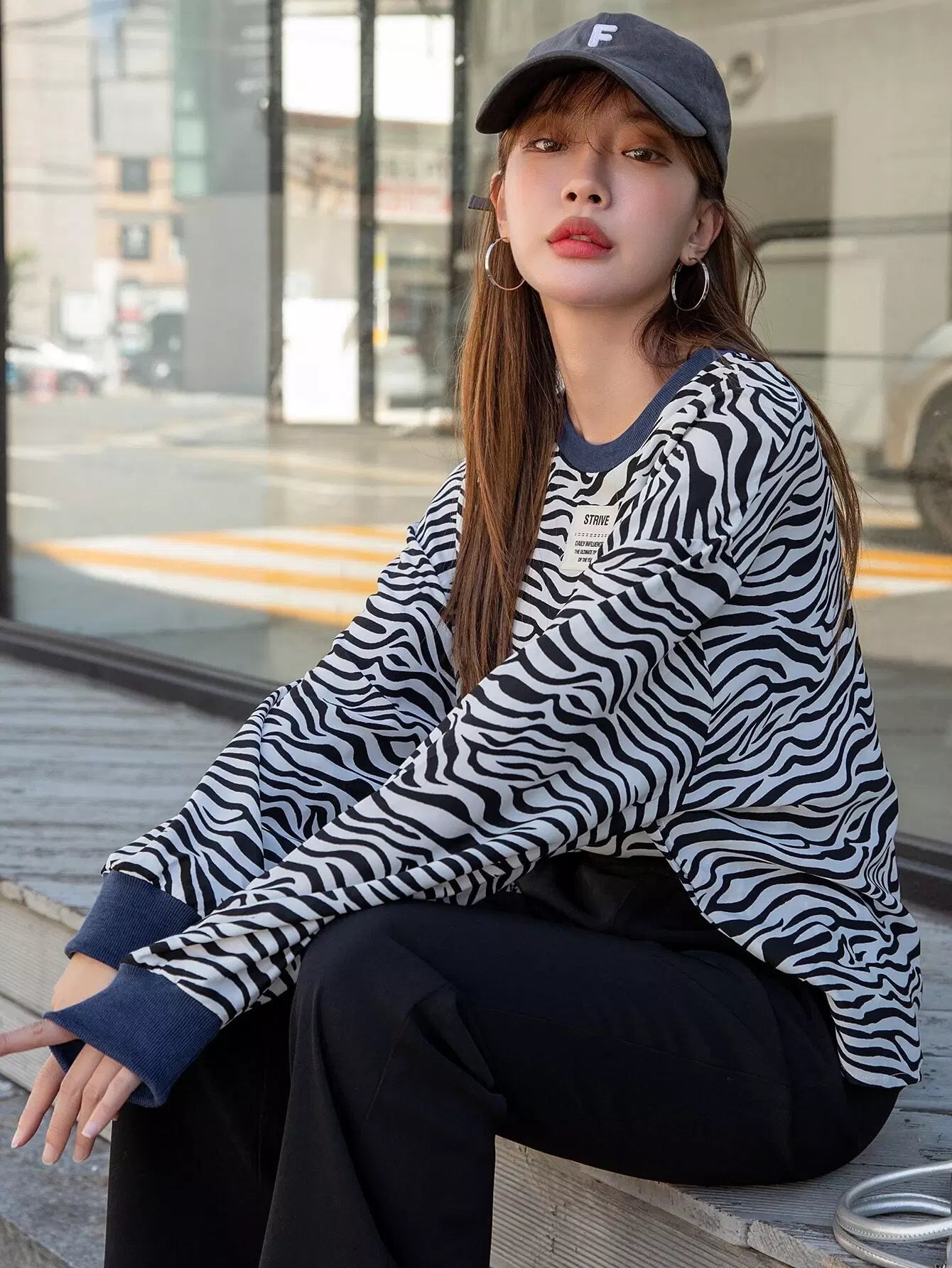 بلوزة مخططة بكتف منسدلة منسدلة الأكتاف مزينة برقعة مخططة بحمار وحشي