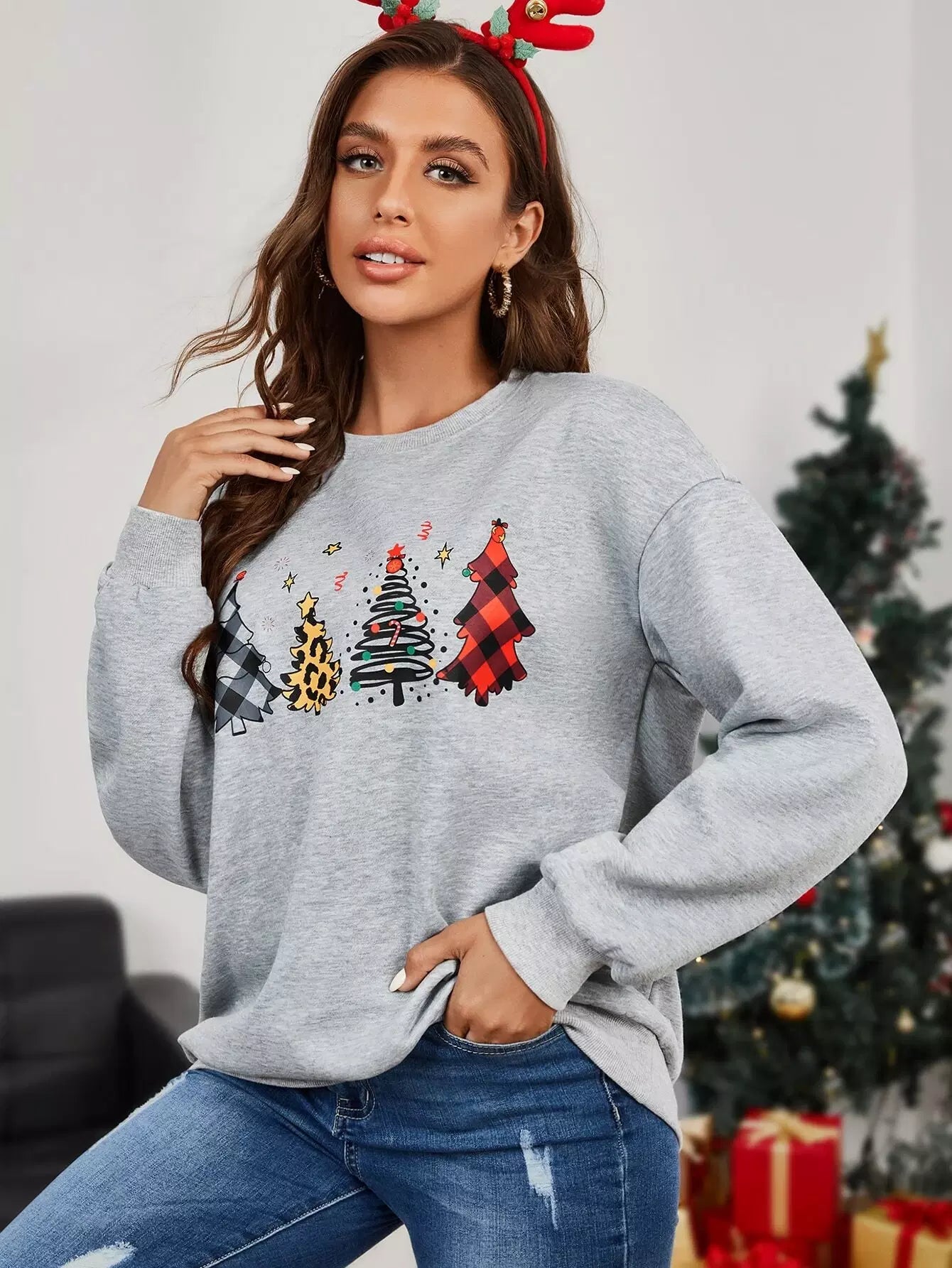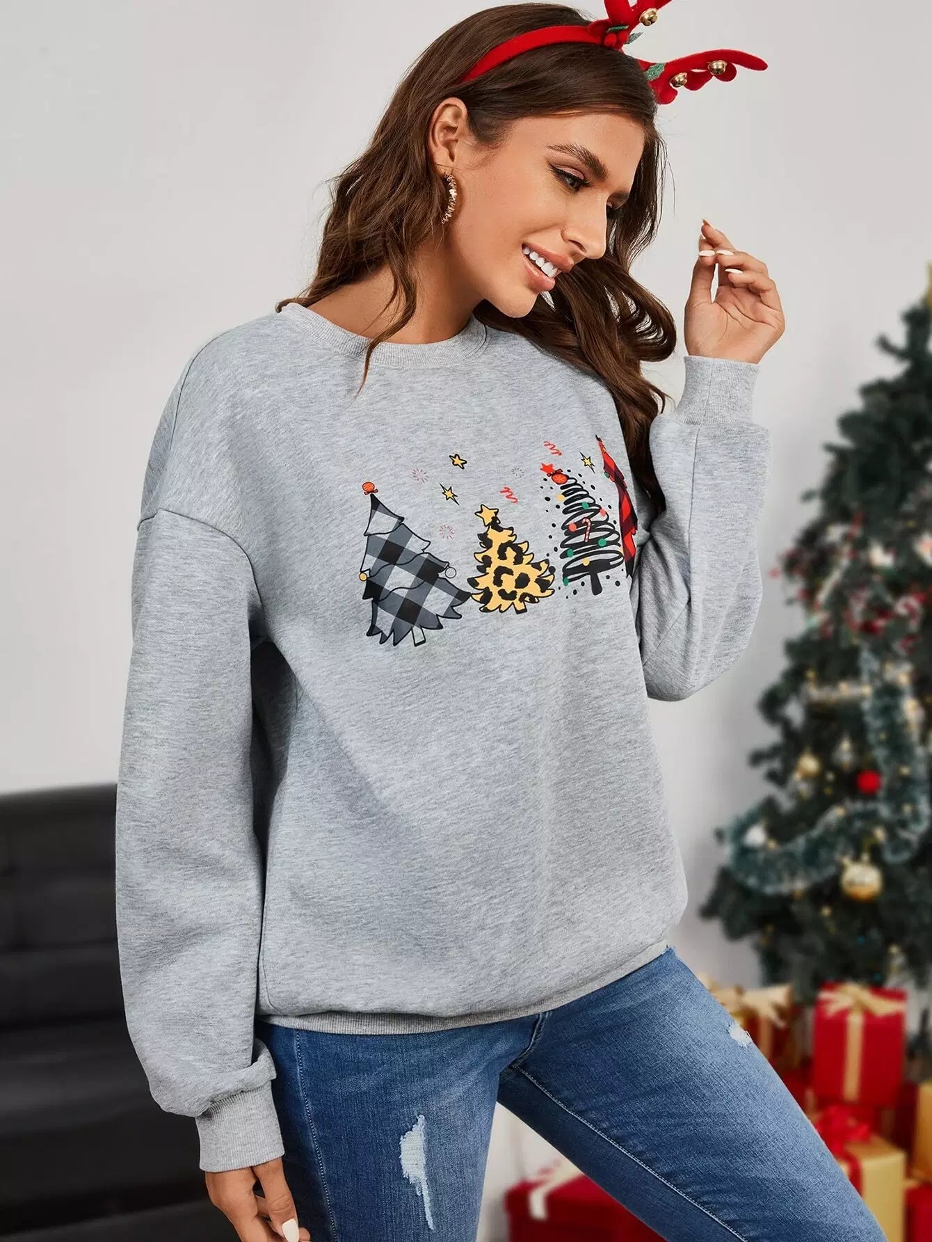 1 قطعة بلوزة مطبوعة بطبعة عيد الميلاد بكتف منسدل