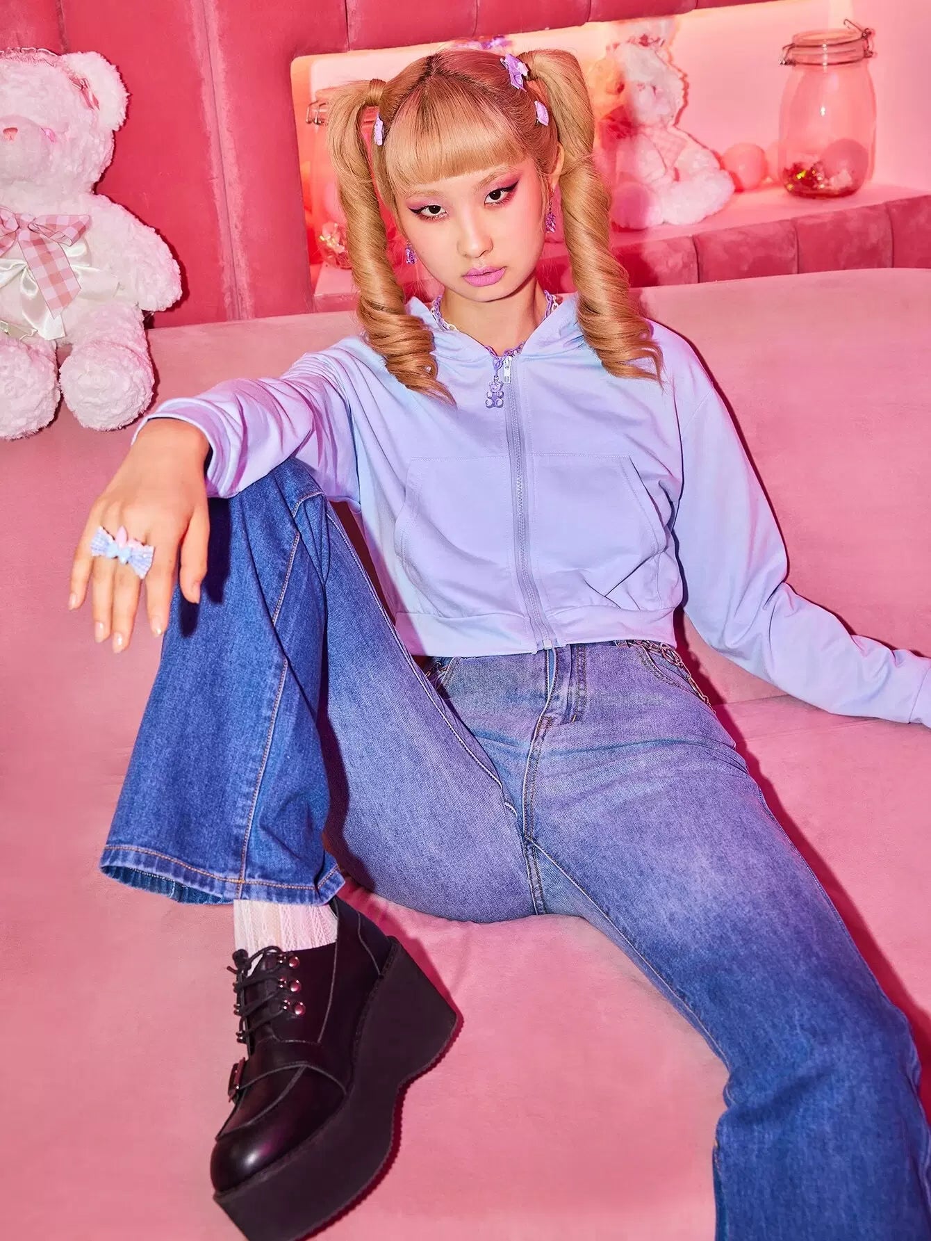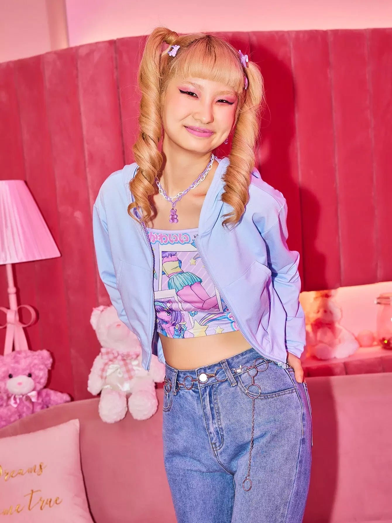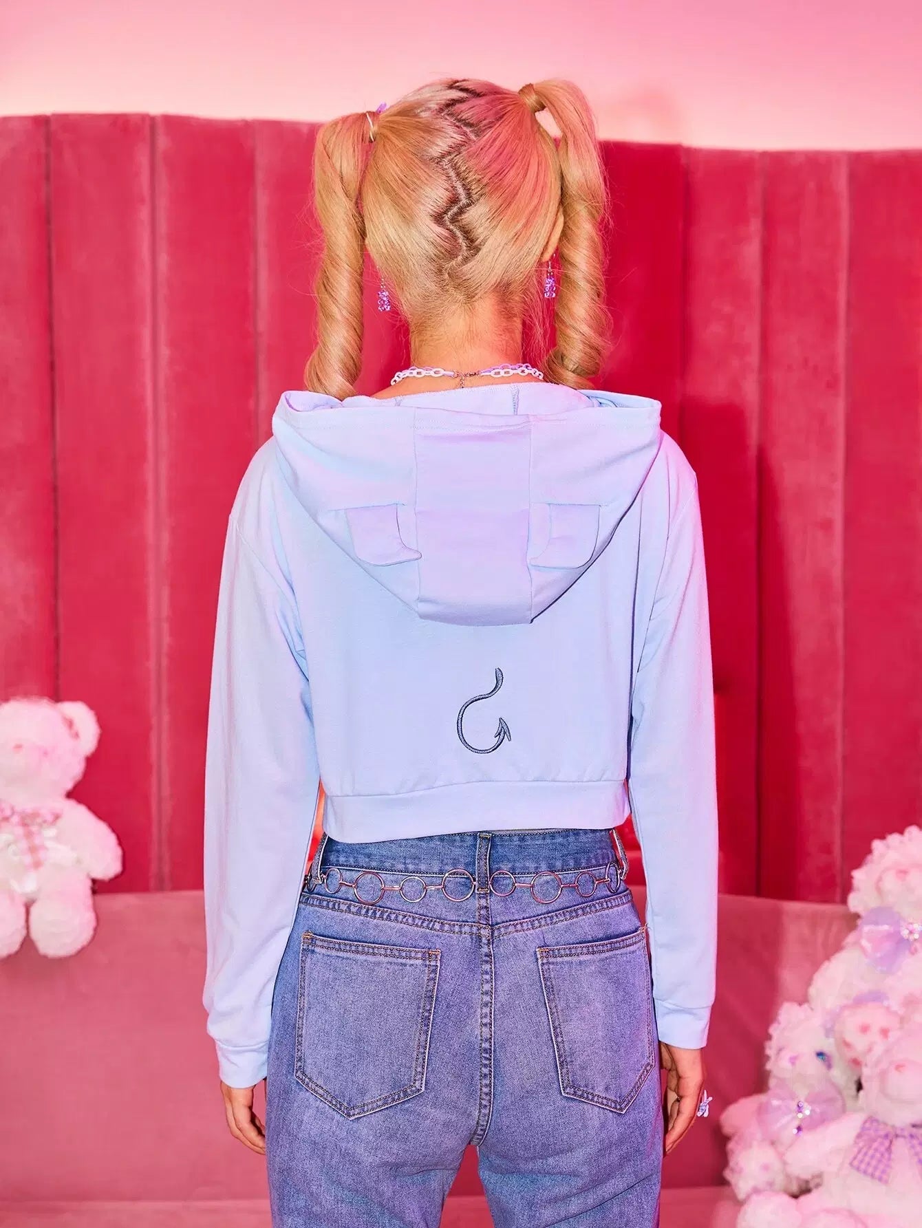 هودي قصير بسحاب بأذنين ثلاثي الأبعاد