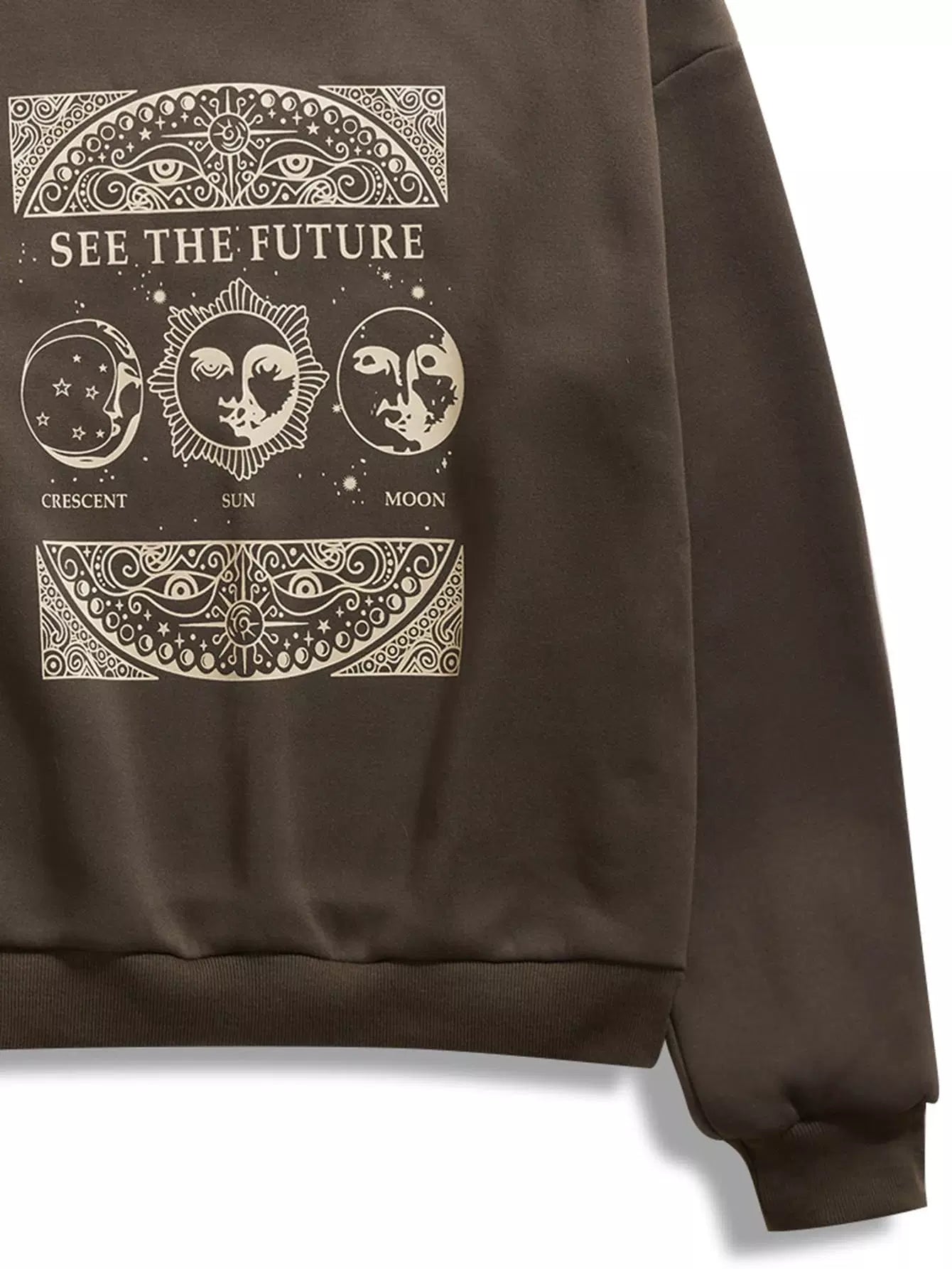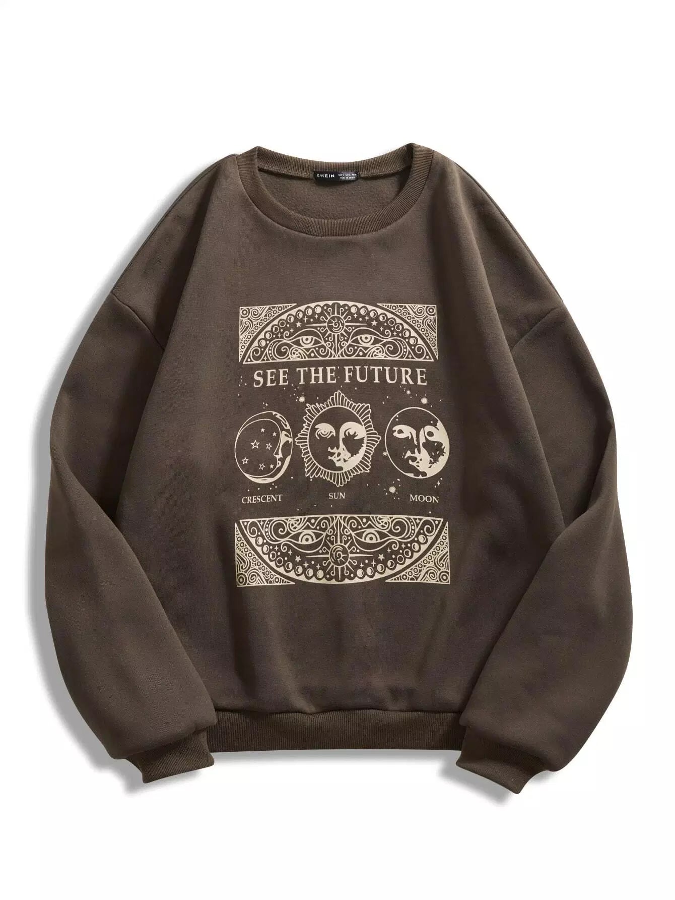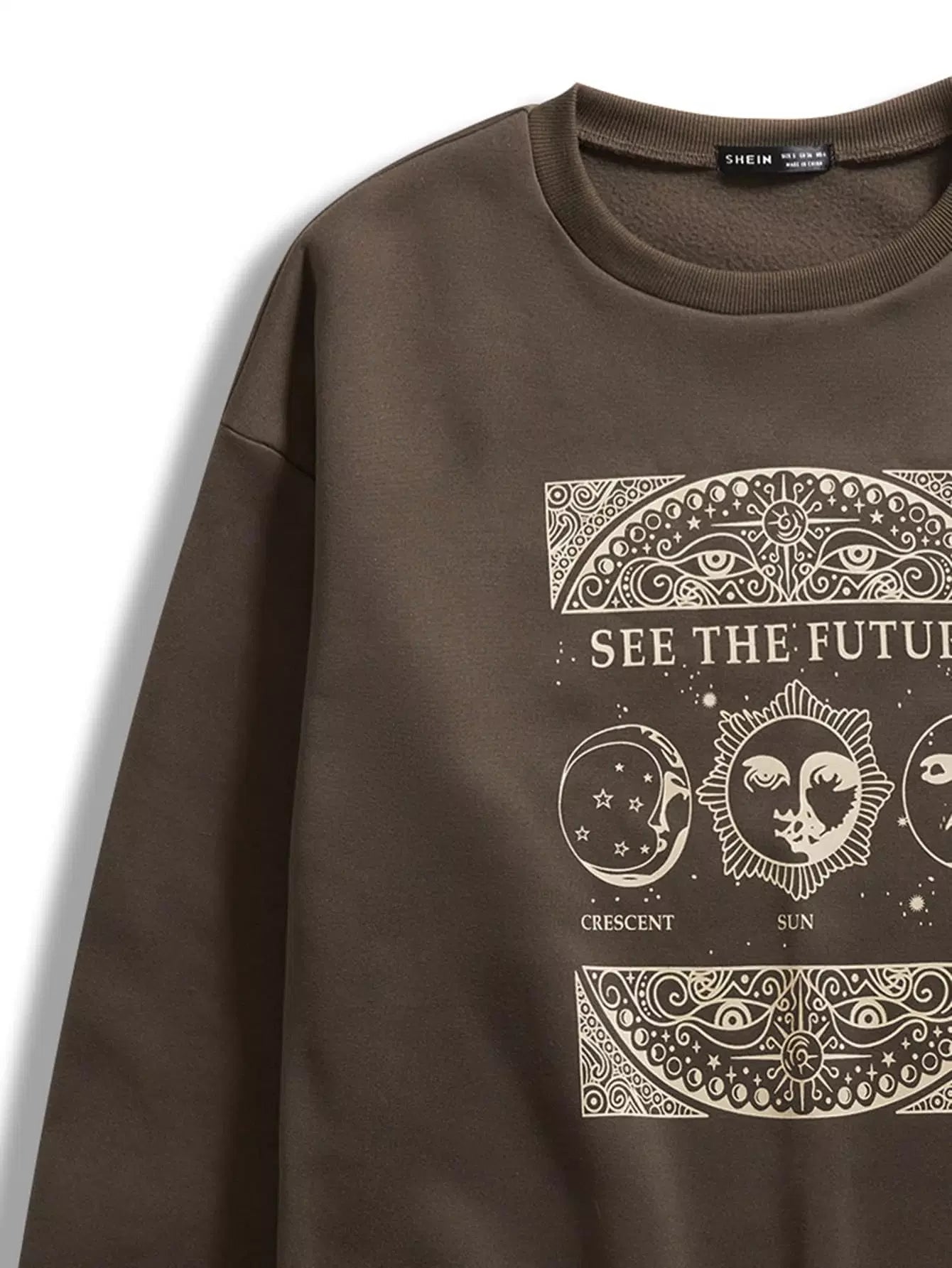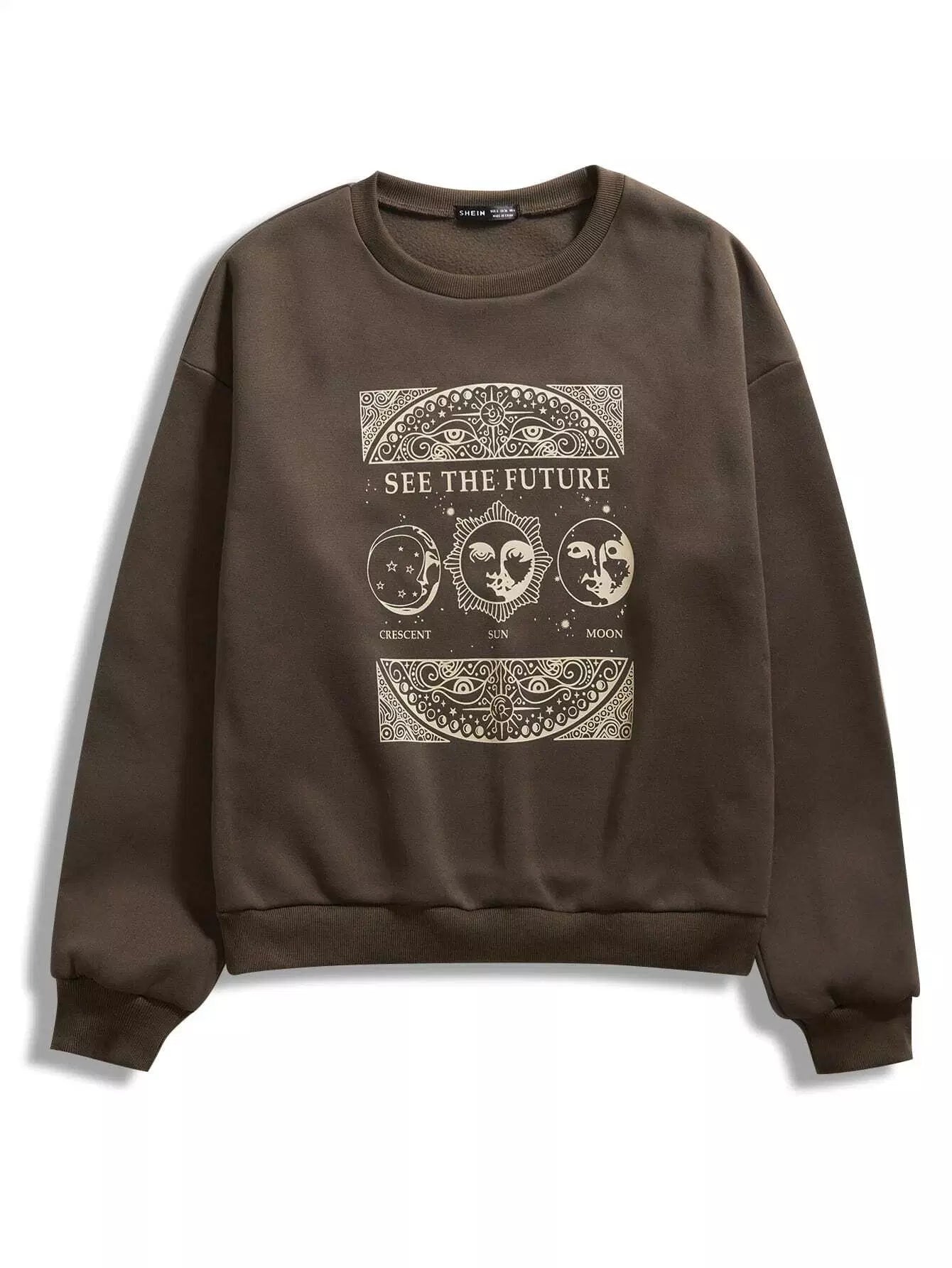 للنساء - سويت شيرت بطبعة تجريدية للشمس والقمر