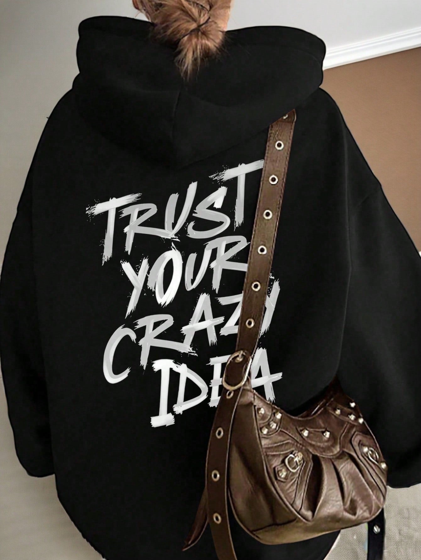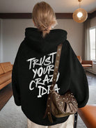 هودي نسائي مطبوع عليه شعار أبجدي، بتصميم فضفاض وعصري، مناسب لفصل الخريف.