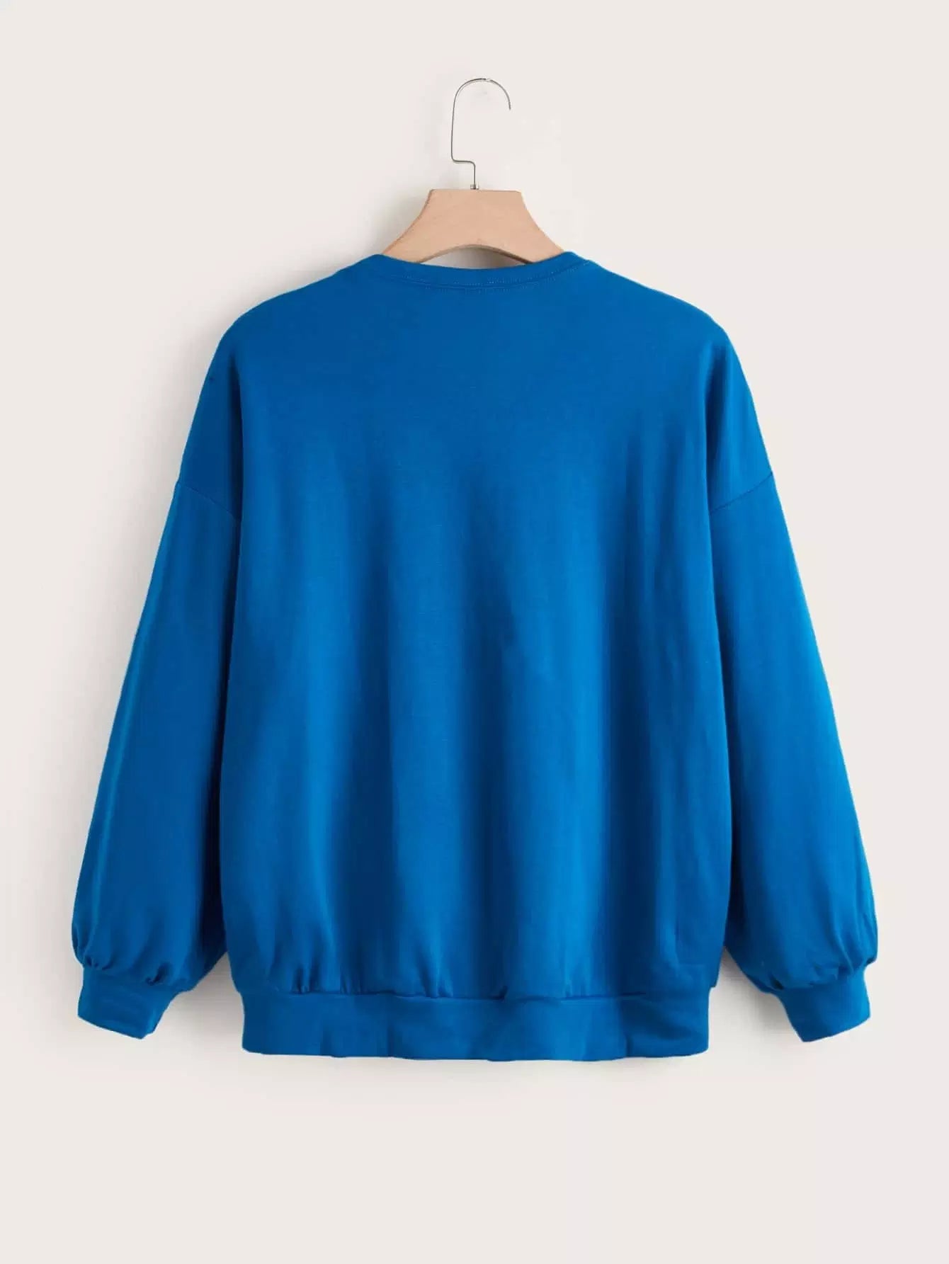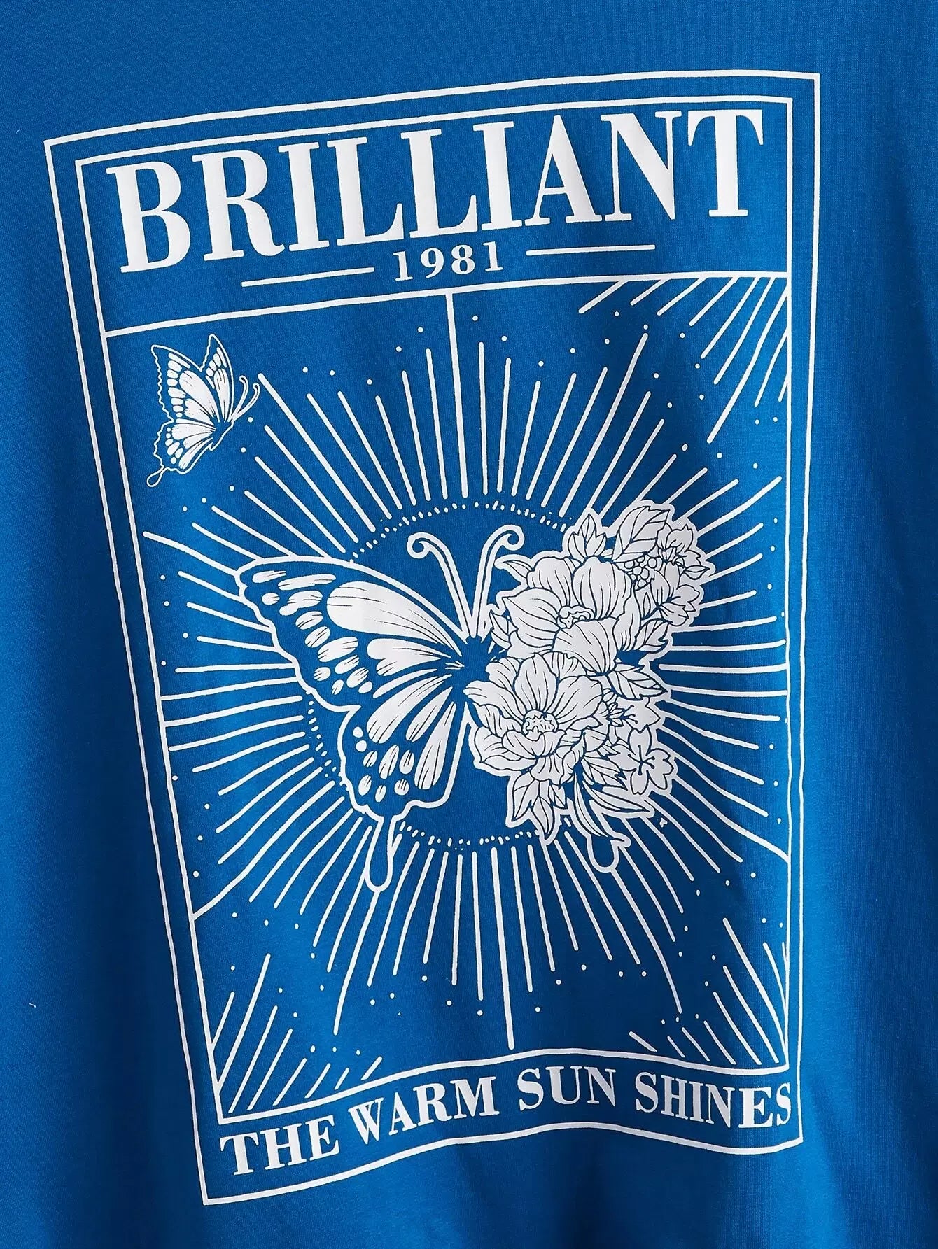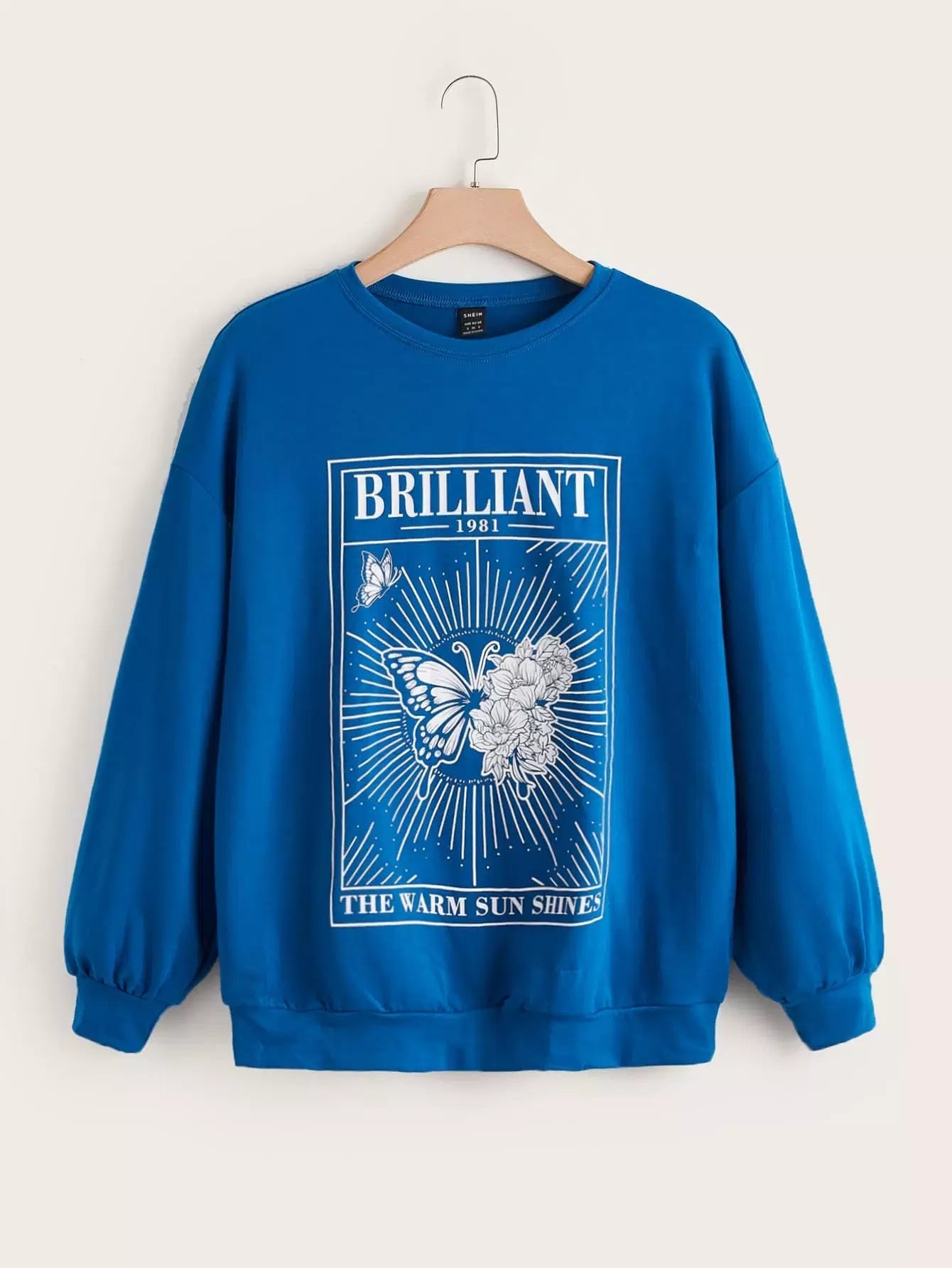 سويت شيرت منسدل الكتف برسومات فراشة وشعار