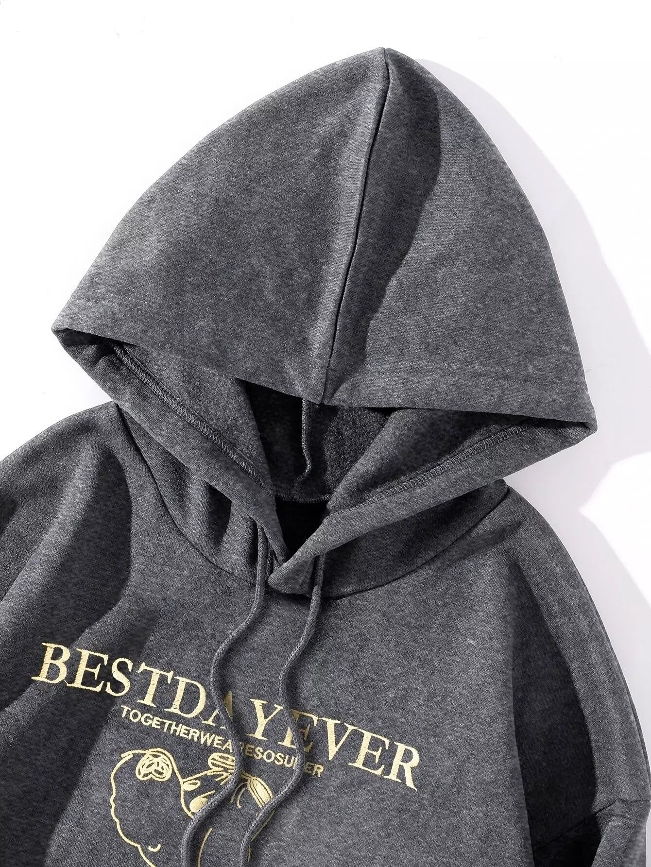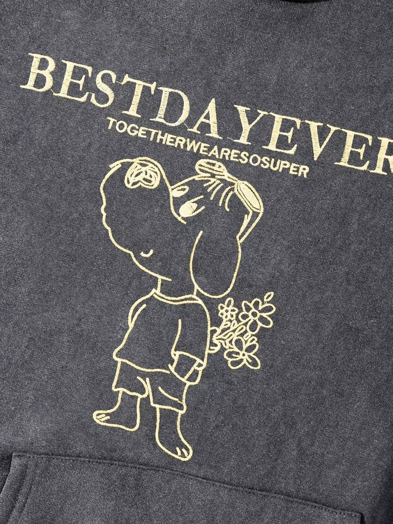 هودي برباط منسدل على الكتف مطرز برسوم كرتونية وشعارات