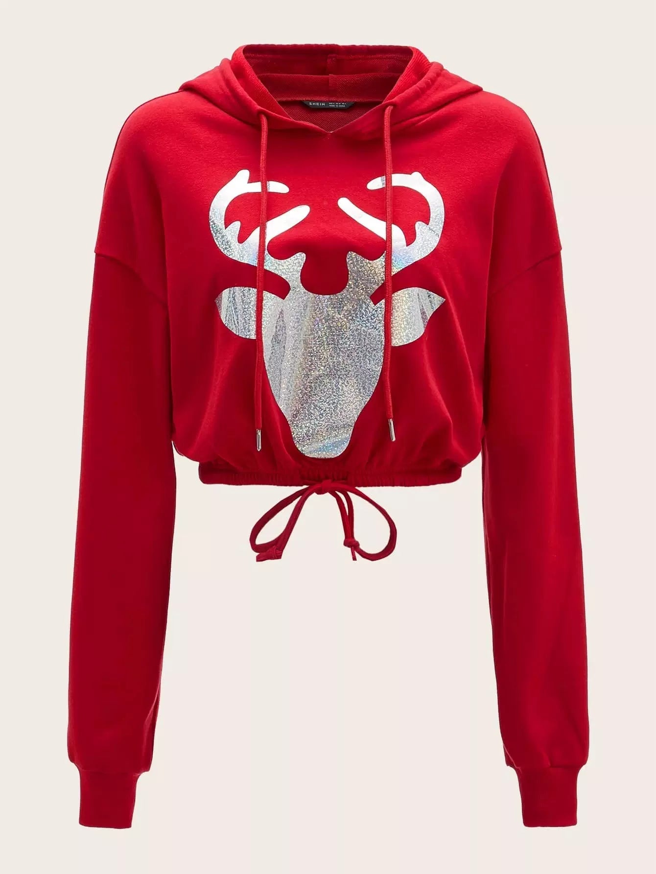 للنساء - هوديي برباط وكتف منسدل مطبوع عليه عيد الميلاد