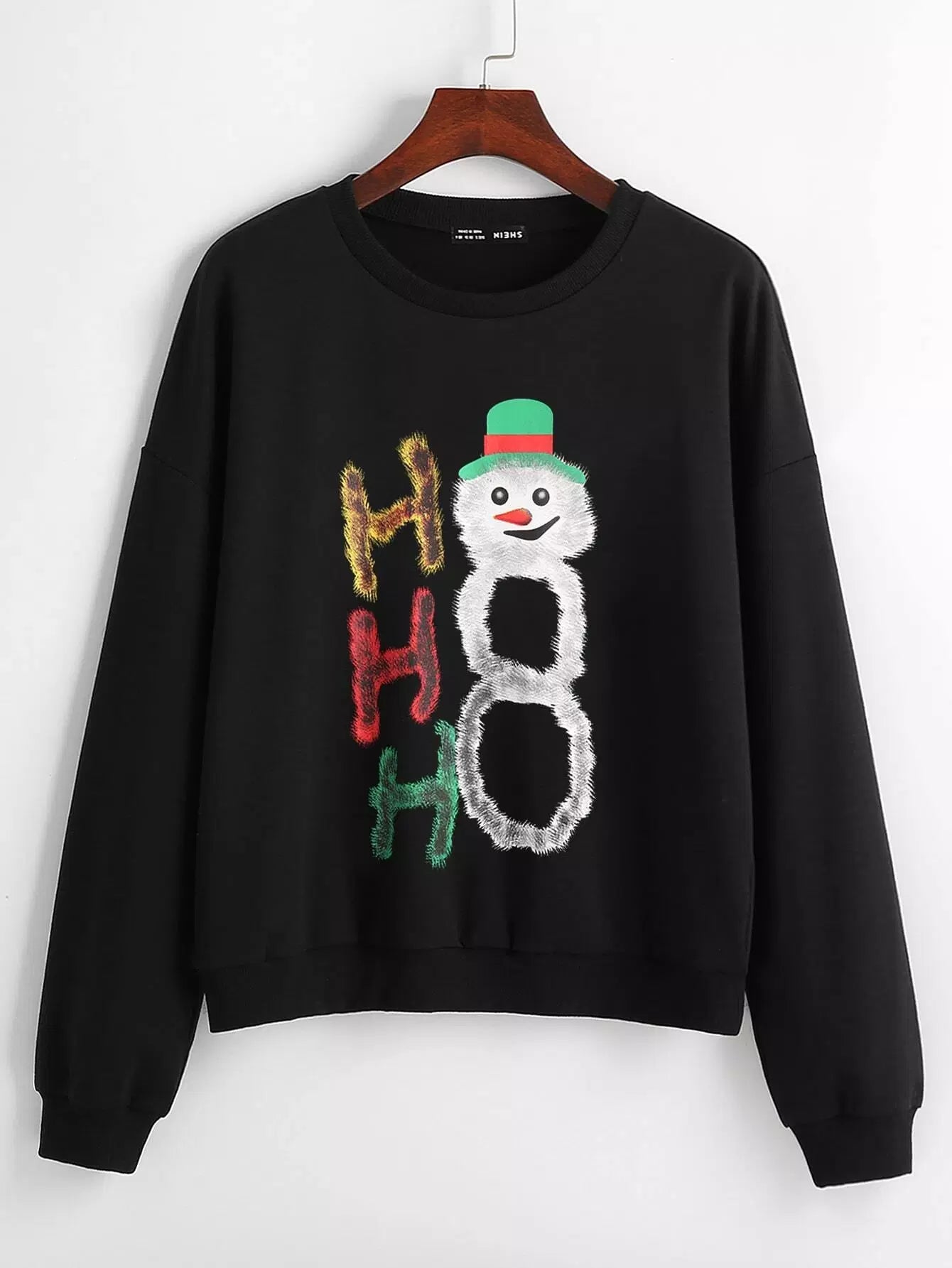 النساء - بلوفر برسومات رجل ثلج عيد الميلاد والحروف