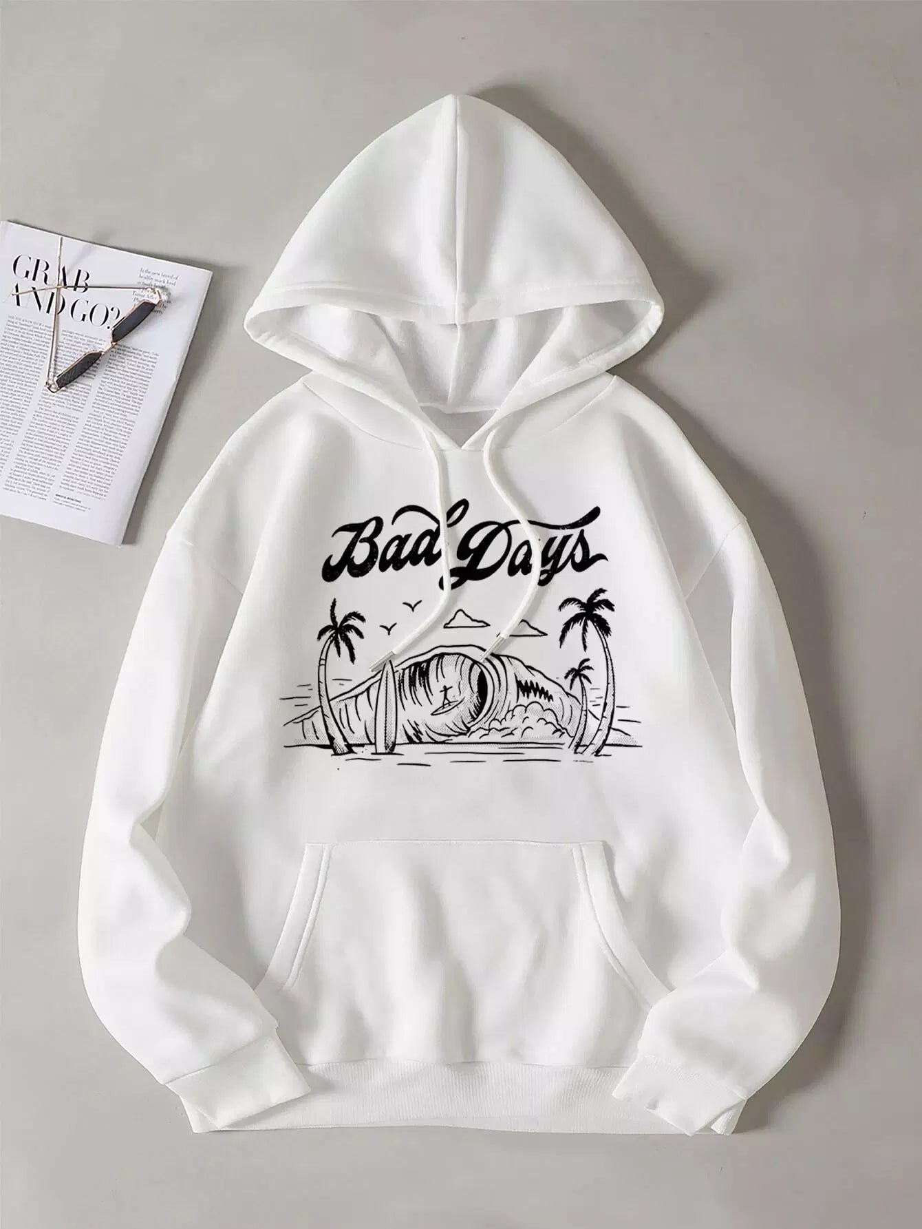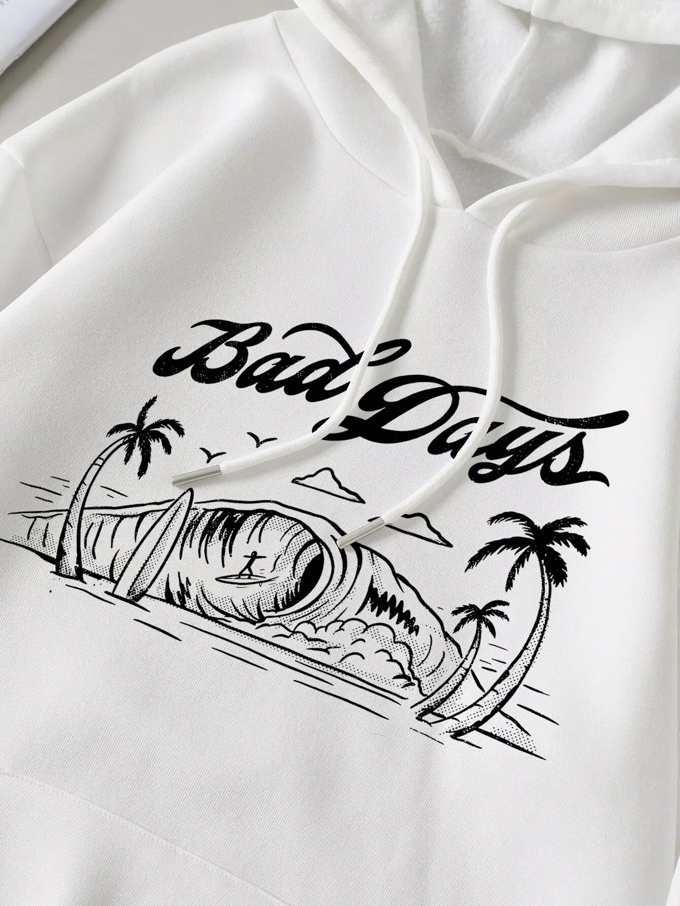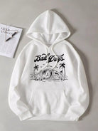 هودي بغطاء رأس مبطن حراريًا برباط ورسومات شجرة جوز الهند والحروف