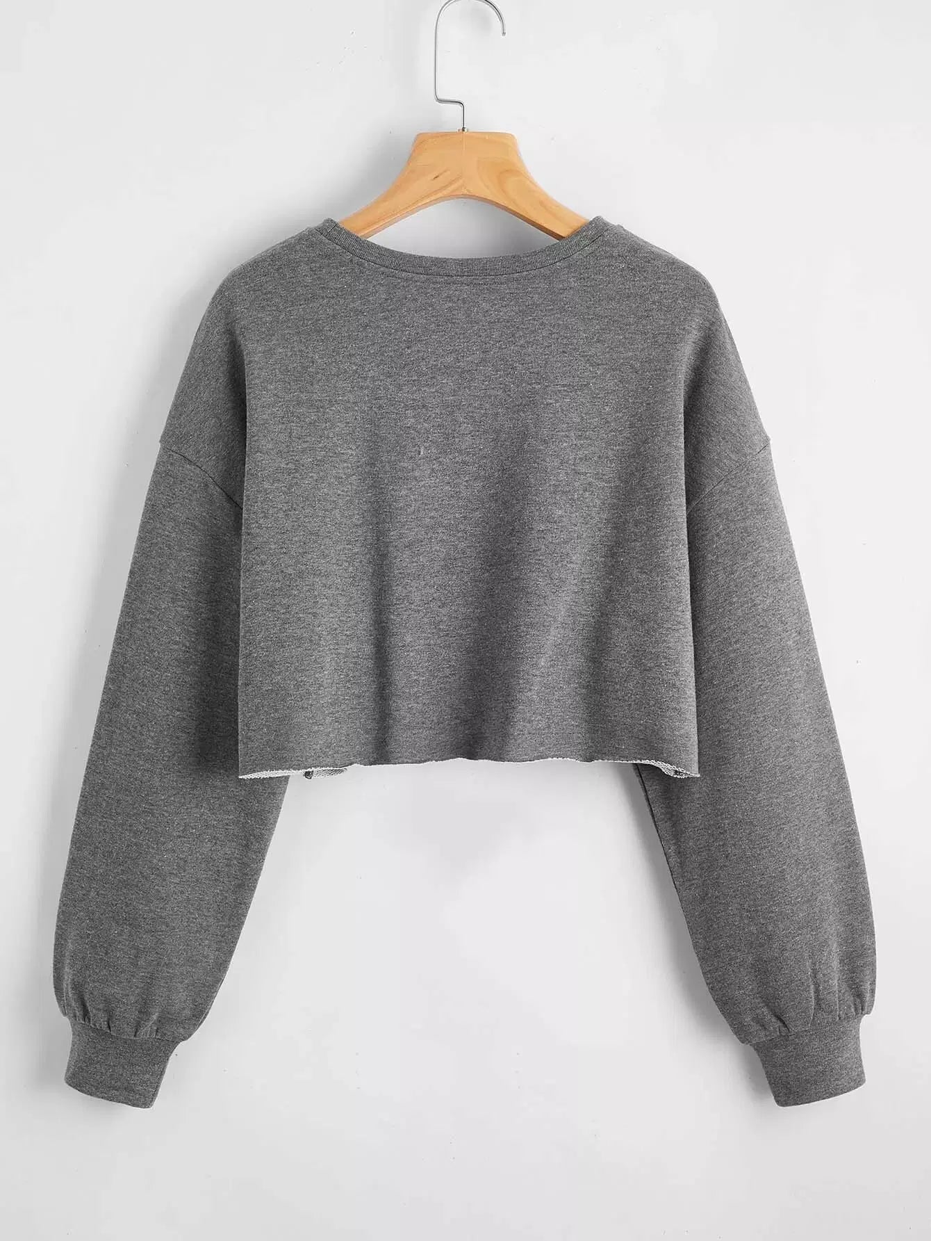 كنزة صوفية قطنية منسدلة الكتف منسدلة الحافة الخام