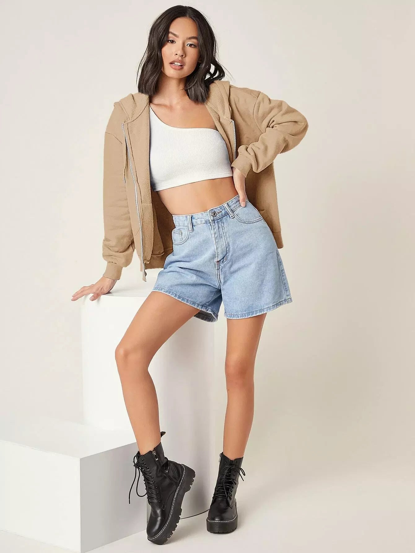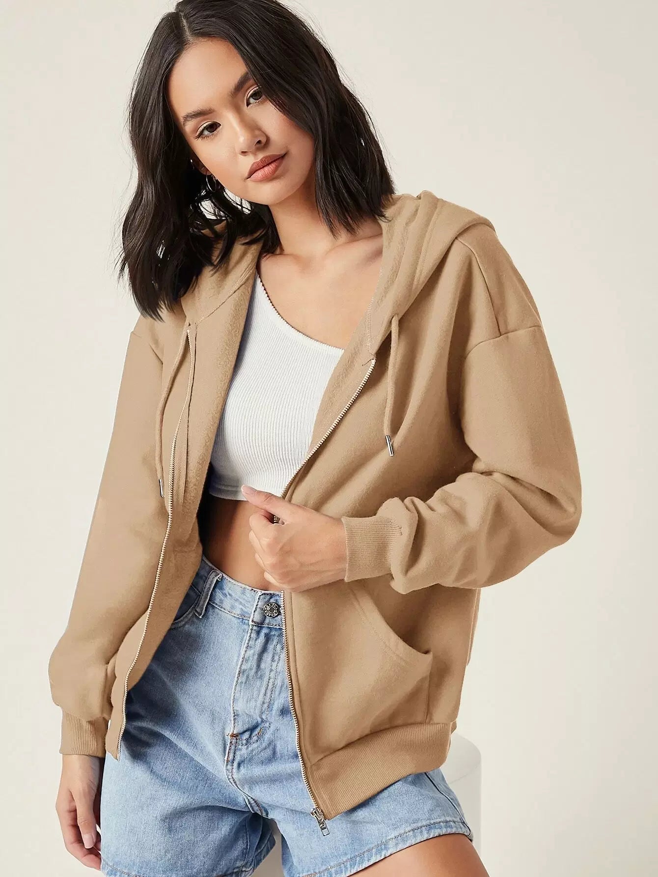 سويت شيرت قطني بغطاء رأس وسحّاب على الكتف