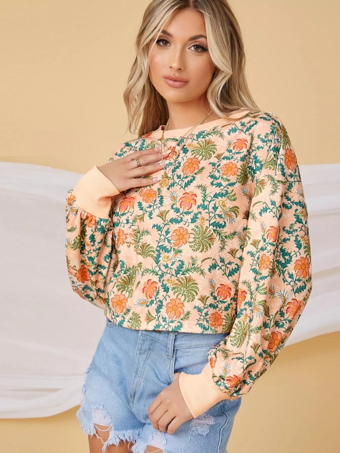 كنزة صوفية ديتسي بنقشة زهور فرينش تيري