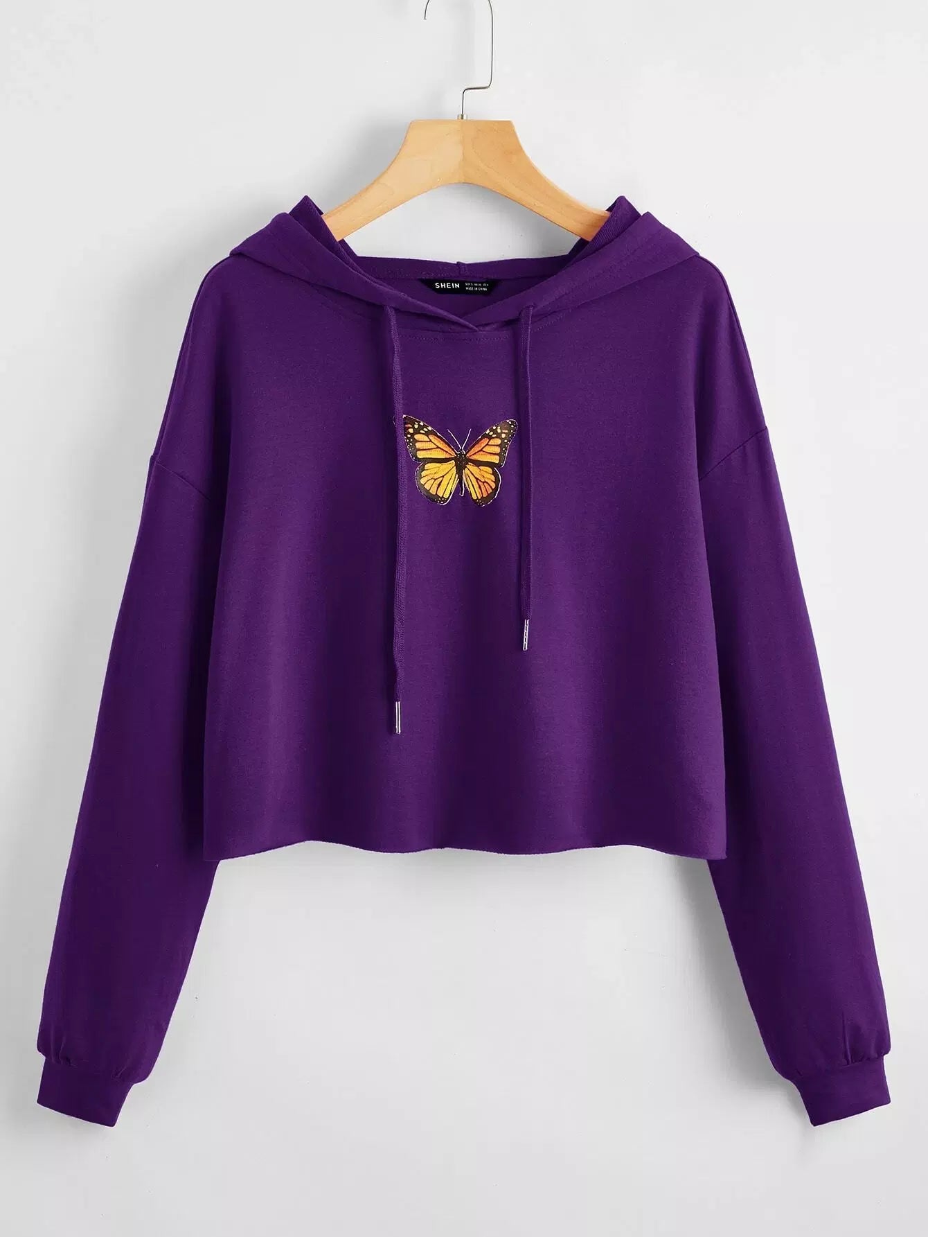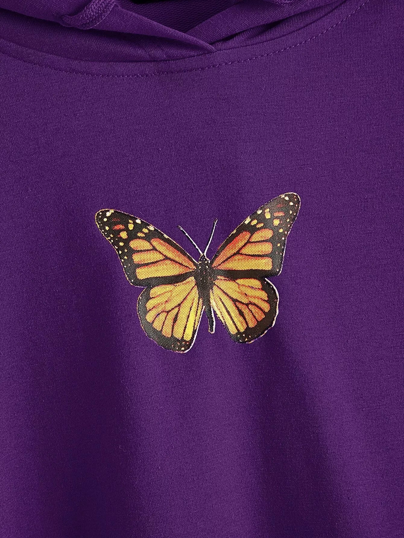 هودي بطبعة فراشات وتفاصيل رباط على الكتف