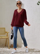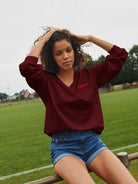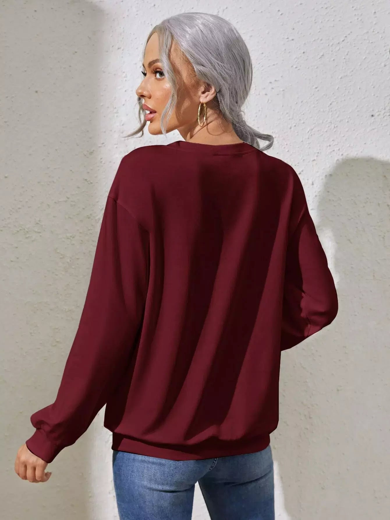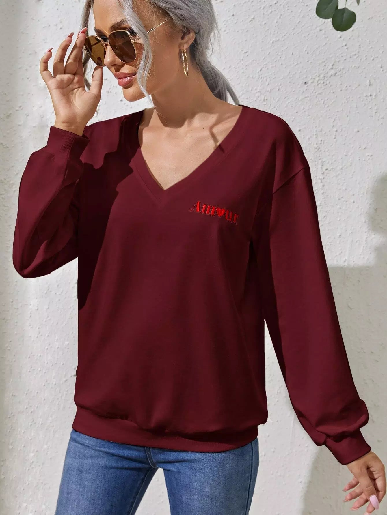 سويت شيرت منسدل الكتف مطرز بحروف منسدلة