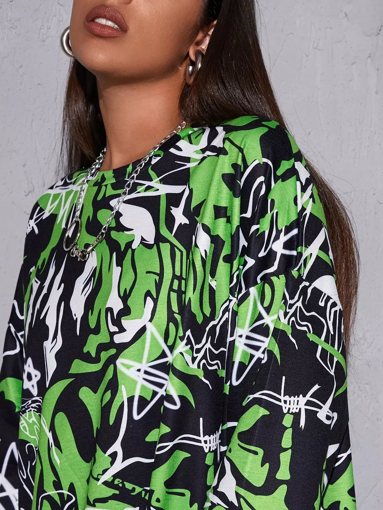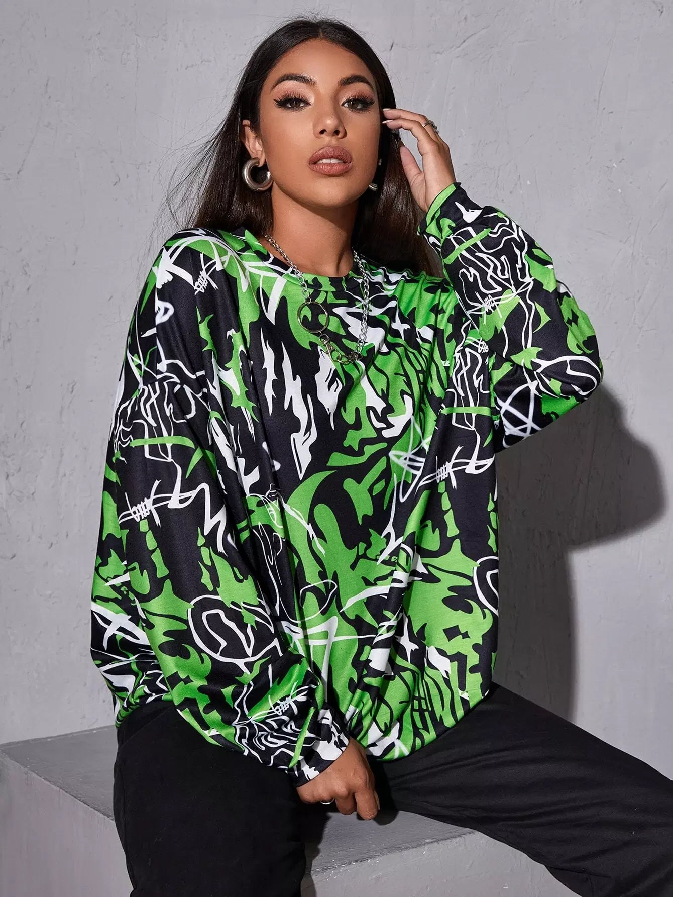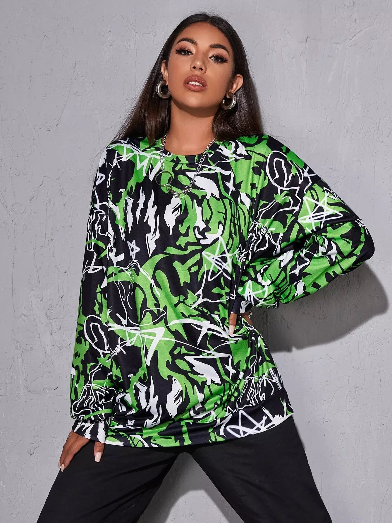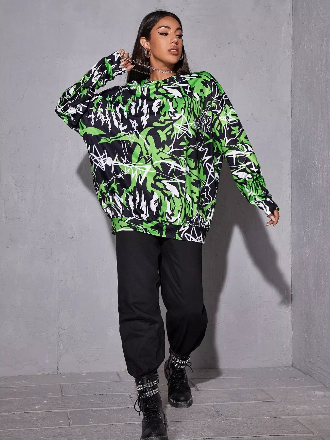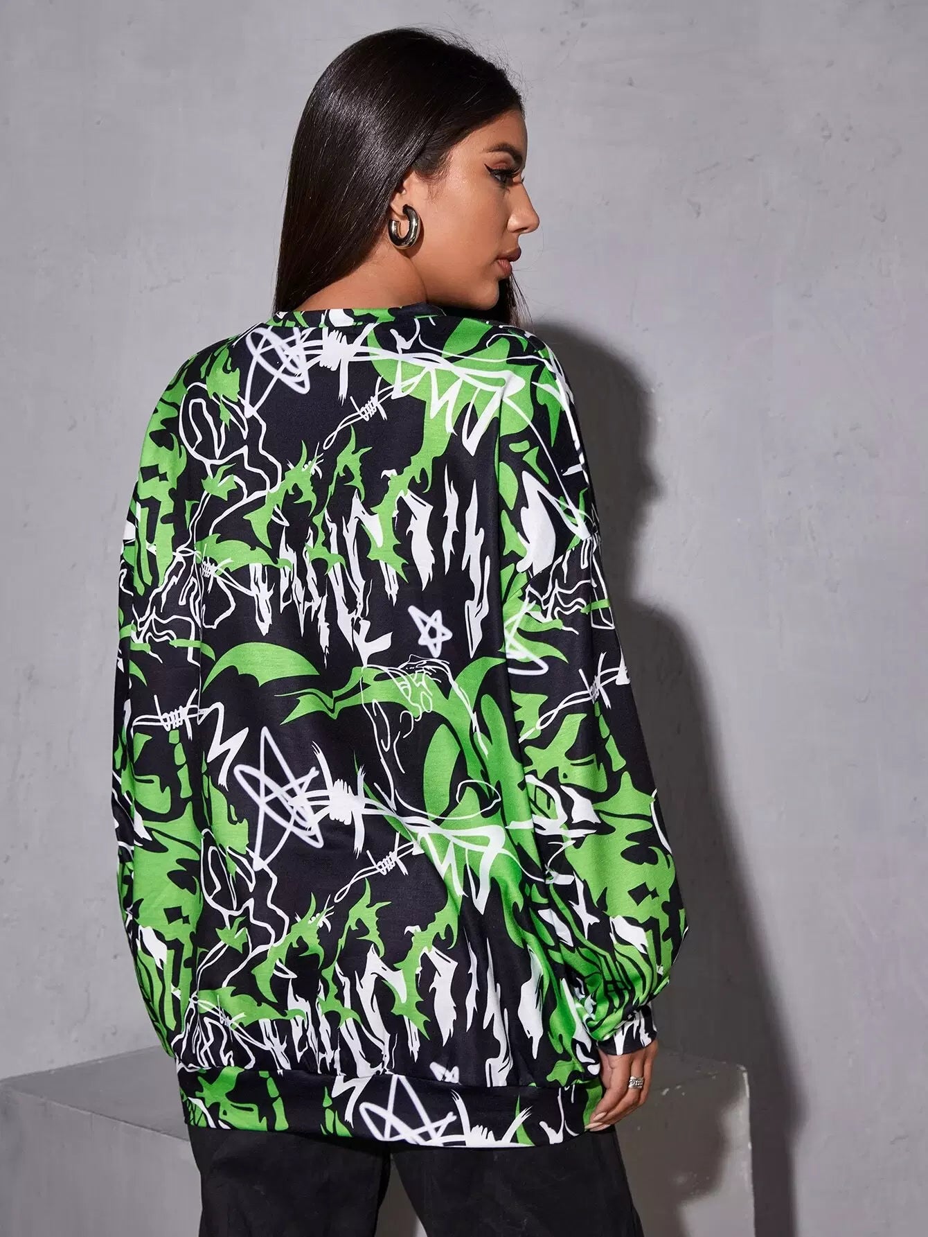 النساء - سويت شيرت بكتف منسدل مع رسومات جرافيتي
