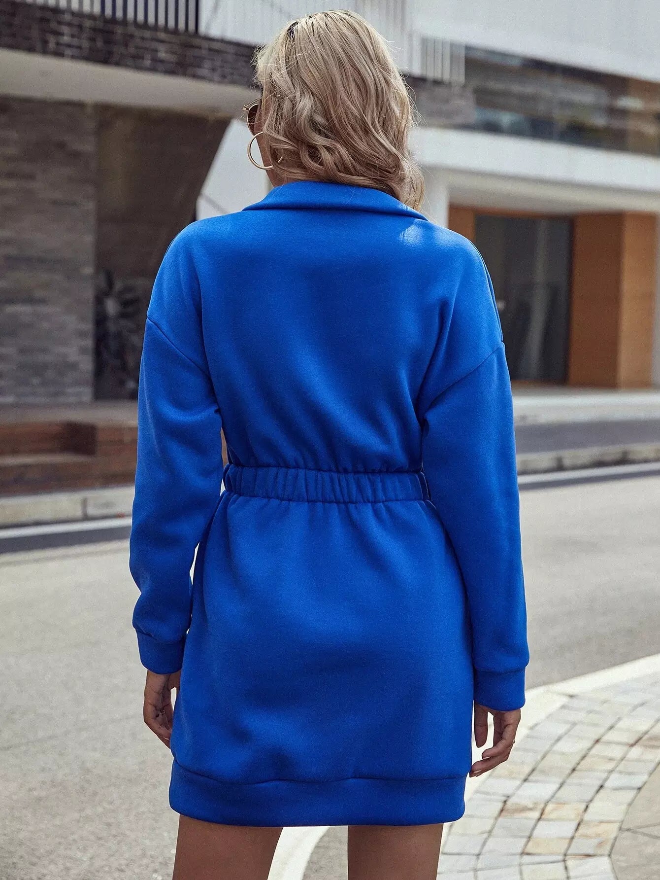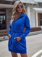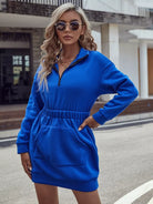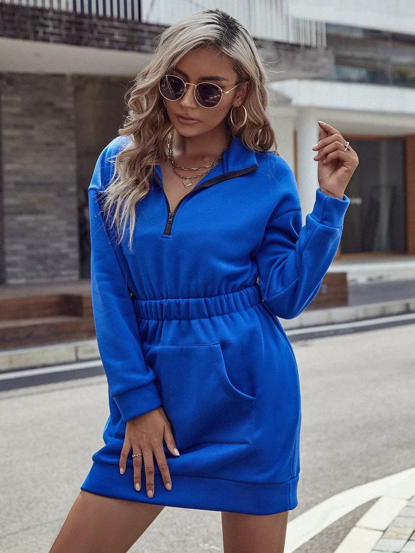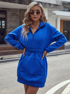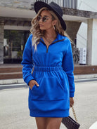 فستان سويت شيرت بسحاب ربعي وجيب كنغر على الكتف