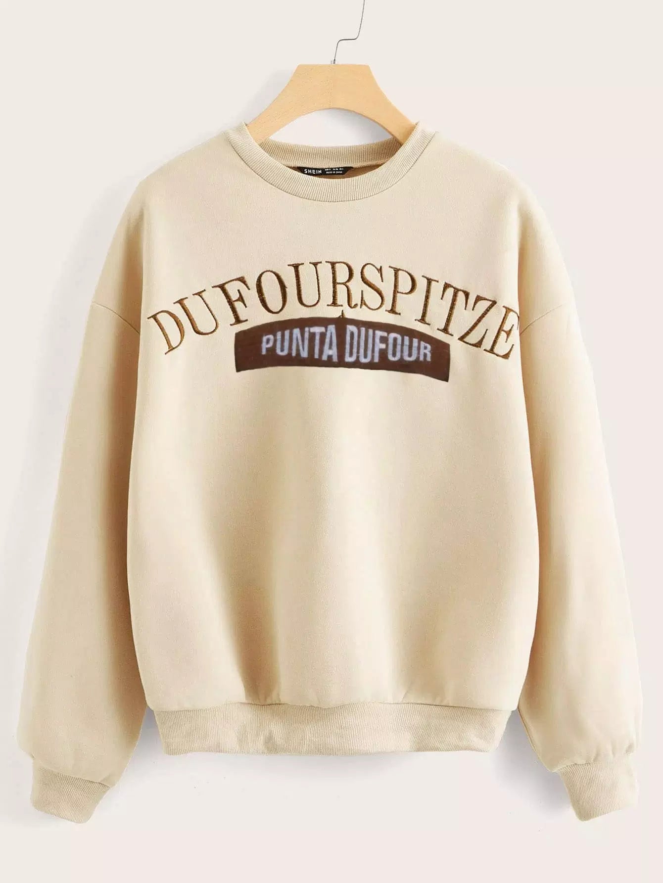 كنزة صوفية مطرزة بحروف منسدلة على الكتف
