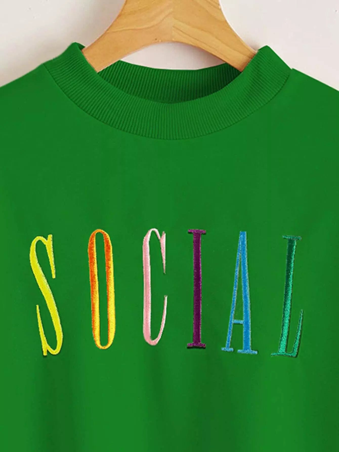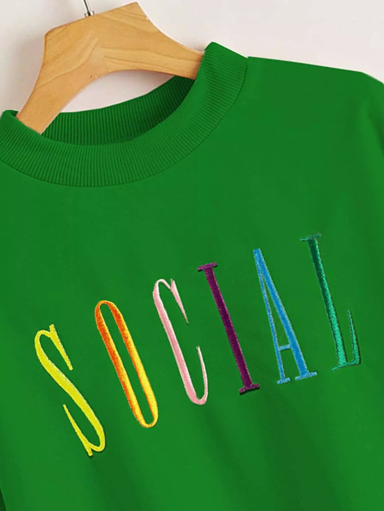 كنزة صوفية مطرزة بحروف منسدلة على الكتف