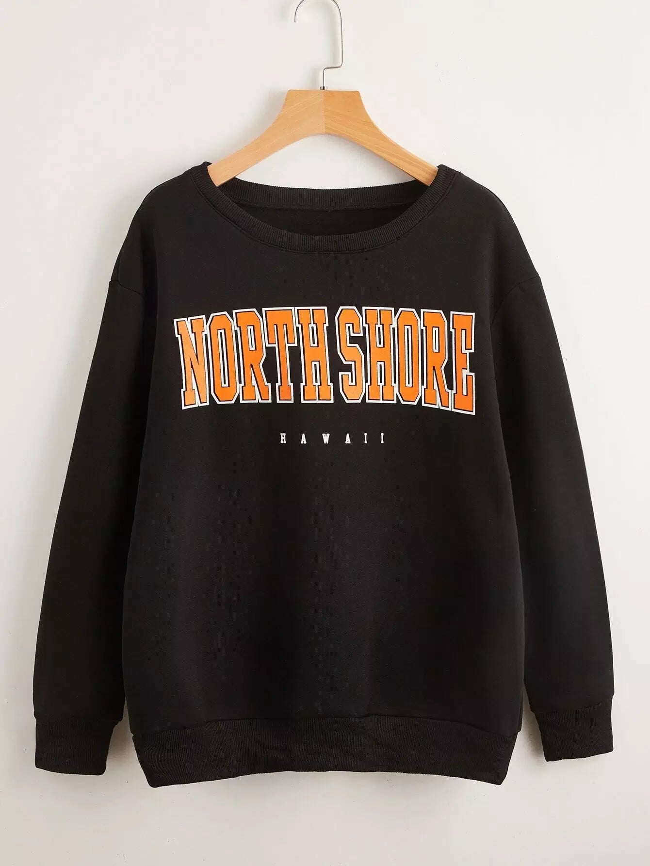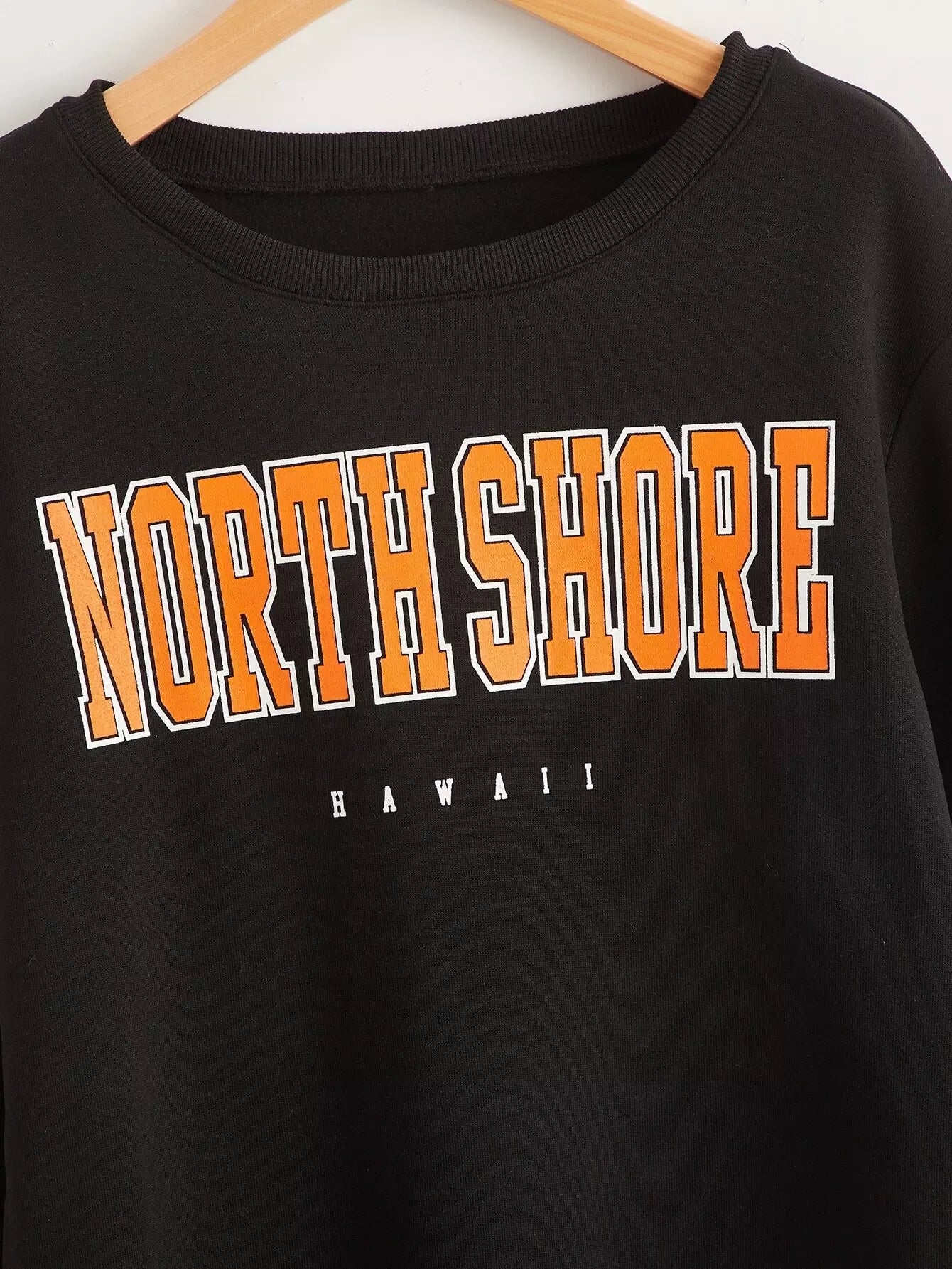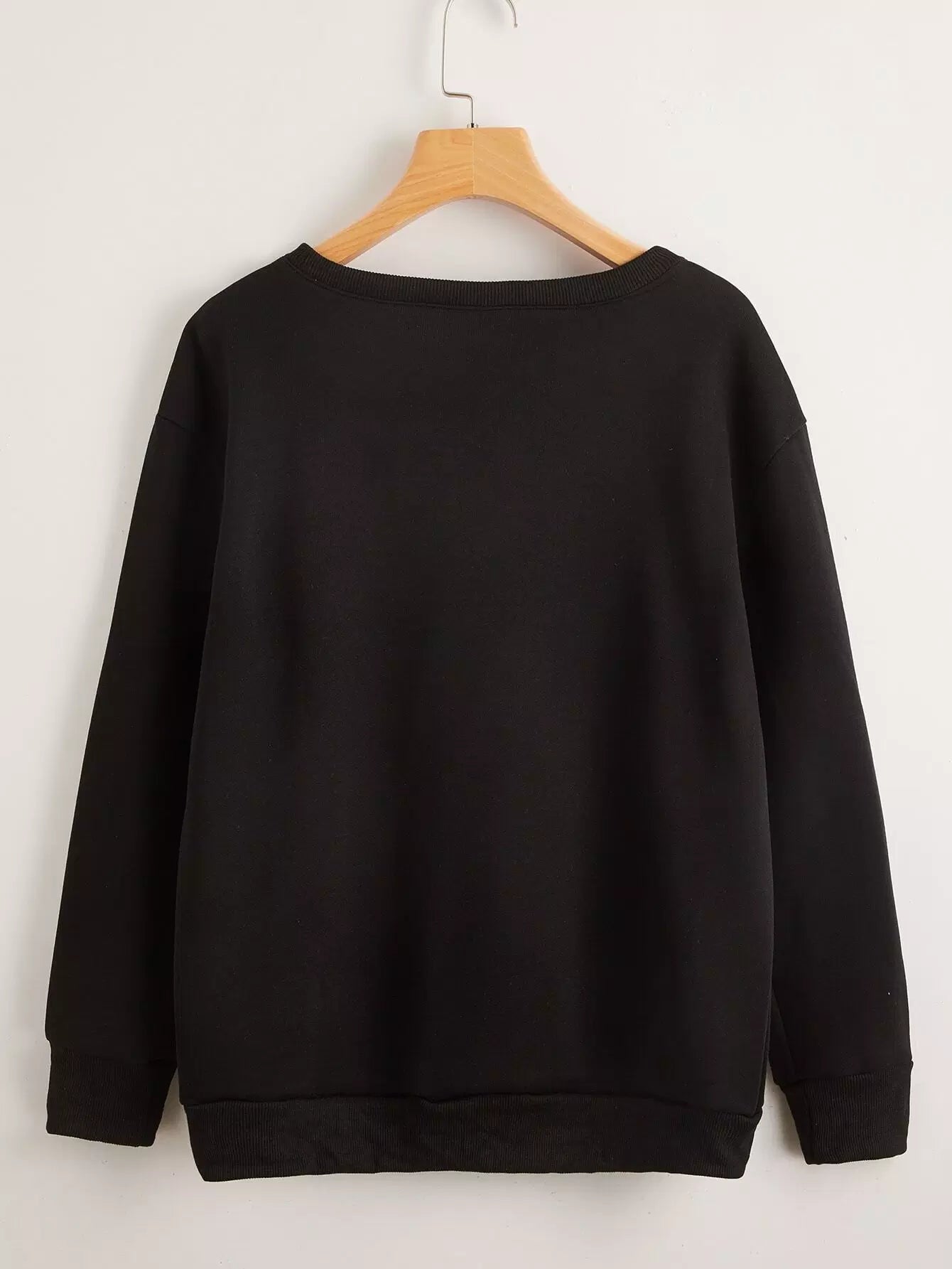 هودي بتصميم منسدل الكتف برسومات على شكل حرف