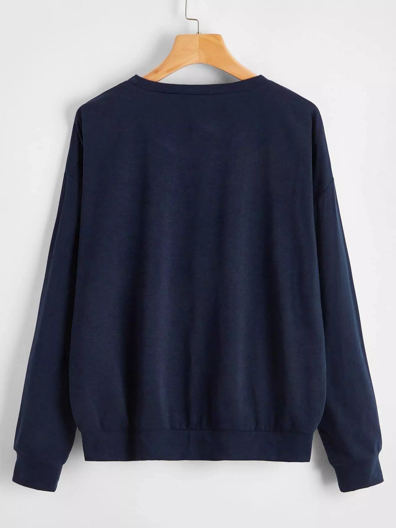 سويت شيرت برسومات وأحرف منسدلة على الكتف